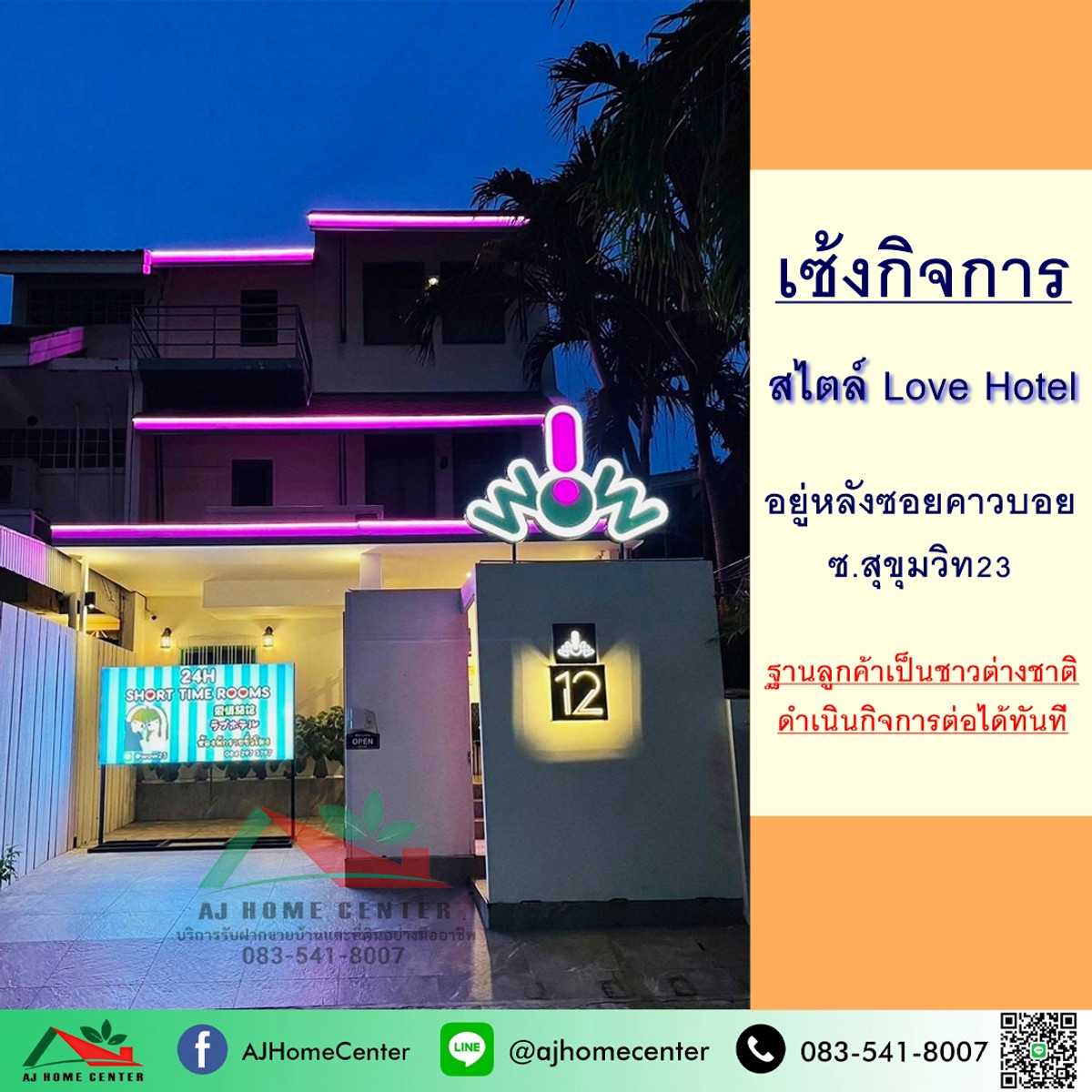 เซ้งกิจการโรงแรมรายชั่วโมง อยู่หลังซอยคาวบอย สุขุมวิท23 ดำเนินกิจการต่อได้เลย . ทาวน์โฮม3ชั้น ปัจจุบันทำเป็นโฮสเทลให้เช่าชั่วคราวเป็นรายชั่วโมง ราคาให้เช่ารายครั้ง เริ่มต้นตั้งแต่ 590 - 1,290 บาท 8ห้องนอน 8ห้องน้ำ 1ห้องครัว - มีแอร์ , ตู้เสื้อผ้า , เตียงนอน , โต๊ะเครื่องแป้ง . ที่ตั้งทรัพย์สิน : ซ.สุขุมวิท23 ถ.สุขุมวิท แขวงคลองเตยเหนือ เขตวัฒนา กรุงเทพฯ พิกัด : https://maps.app.goo.gl/dbDit2VK8wq2mEQEA . ราคาเซ้ง 5.5 ล้านบาท . จุดเด่น - เซ้งทาวน์โฮม3ชั้นสไตล์ Love Hotel พร้อมดำเนินกิจการต่อได้เลย - ทำเลดีมาก ตั้งอยู่ใจกลางเมือง หลังซอยคาวบอย - เป็นห้องพักแบบ Shot Time Rooms สำหรับพักชั่วคราว มีทั้งหมด8ห้อง+ห้องน้ำในตัว - ผู้เข้าพักเป็นชาวต่างชาติเกือบ 100% - ใกล้รถไฟฟ้า MRT สถานีสุขุมวิท , BTS สถานีอโศก - เข้า-ออกได้ทั้ง ถนนสุขุมวิท23 และซอยคาวบอยทะลุอโศกมนตรี . สถานที่ใกล้เคียง > ซอยคาวบอย > Jasmine City > Terminal21 > Emporium . สนใจติดต่อ คุณอ้อย เบอร์โทรศัพท์ คลิกเพื่อดูเบอร์โทรติดต่อ / คลิกเพื่อดูเบอร์โทรติดต่อ / คลิกเพื่อดูเบอร์โทรติดต่อ