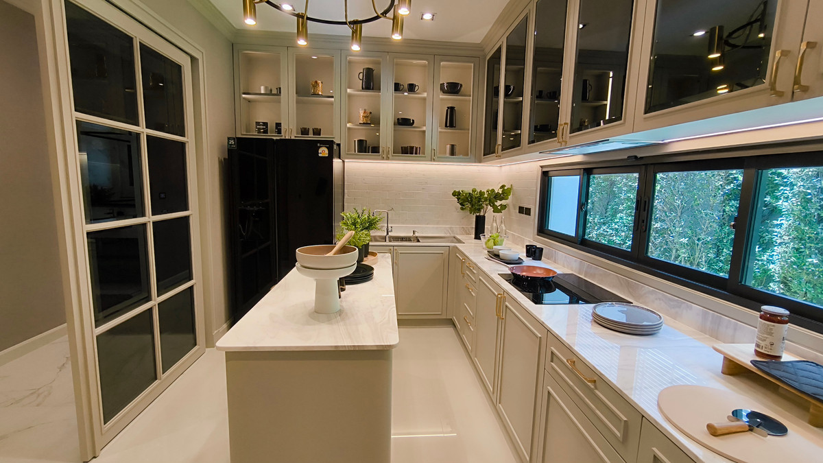 "ทุกความสำเร็จ...ควรมีพื้นที่ให้คุณได้หยุดพักและใช้ชีวิตอย่างภาคภูมิ" DORIC ที่ Bangkok Boulevard Signature Ramintra – Watcharapol คือบ้านที่สะท้อนความสง่างามเหนือกาลเวลา ผ่านดีไซน์เรียบหรูและฟังก์ชันครบถ้วน พื้นที่ใช้สอย 516 ตร.ม. บนที่ดิน 136.4 ตร.วา ประกอบด้วย 4 ห้องนอน 5 ห้องน้ำ 2 ห้องรับแขก ห้องพักผ่อนบน ห้องแม่บ้าน และที่จอดรถ 4 คัน การออกแบบเน้นความโปร่งโล่ง เปิดรับแสงธรรมชาติ และเชื่อมต่อทุกพื้นที่ให้เกิดความกลมกลืนระหว่างการอยู่อาศัยและความรู้สึกผ่อนคลายอย่างแท้จริง โครงการให้ความสำคัญกับทุกรายละเอียดของการใช้ชีวิต รายล้อมด้วยสิ่งอำนวยความสะดวกครบครัน ทั้งคลับเฮาส์สุดหรู สระว่ายน้ำ ฟิตเนส และสวนส่วนกลางขนาดใหญ่ พร้อมระบบรักษาความปลอดภัยตลอด 24 ชั่วโมง กล้อง CCTV และระบบ Smart Gate ที่ควบคุมการเข้าออกอย่างชาญฉลาดผ่าน RueJai Home OS ภายในบ้านติดตั้งระบบ Active Air Quality จาก SCG เพื่อคุณภาพอากาศที่ดีในทุกลมหายใจ พร้อม Solar Roof พลังงานสะอาดในส่วนกลางที่ช่วยสร้างสมดุลระหว่างความหรูหราและความยั่งยืน ตั้งอยู่บนถนนจตุโชติ ทำเลศักยภาพเพียง 3 กิโลเมตรจากทางด่วนฉลองรัช เดินทางสะดวกเชื่อมต่อถนนสุขาภิบาล 5 วัชรพล และรามอินทรา รายล้อมด้วยสิ่งอำนวยความสะดวกครบครัน ทั้ง Central Ramintra, The Promenade, Fashion Island รวมถึงโรงเรียนสารสาสน์วิเทศสายไหม โรงเรียนสาธิตพัฒนา และโรงพยาบาลสายไหม ที่พร้อมเติมเต็มทุกมิติของชีวิตในสังคมคุณภาพเพียง 39 ครอบครัวแห่งนี้ *ภาพที่ปรากฏไม่ใช่ภาพจากยูนิตจริง ใช้เพื่อเป็นตัวอย่างในการสร้างแรงบันดาลใจเท่านั้น*