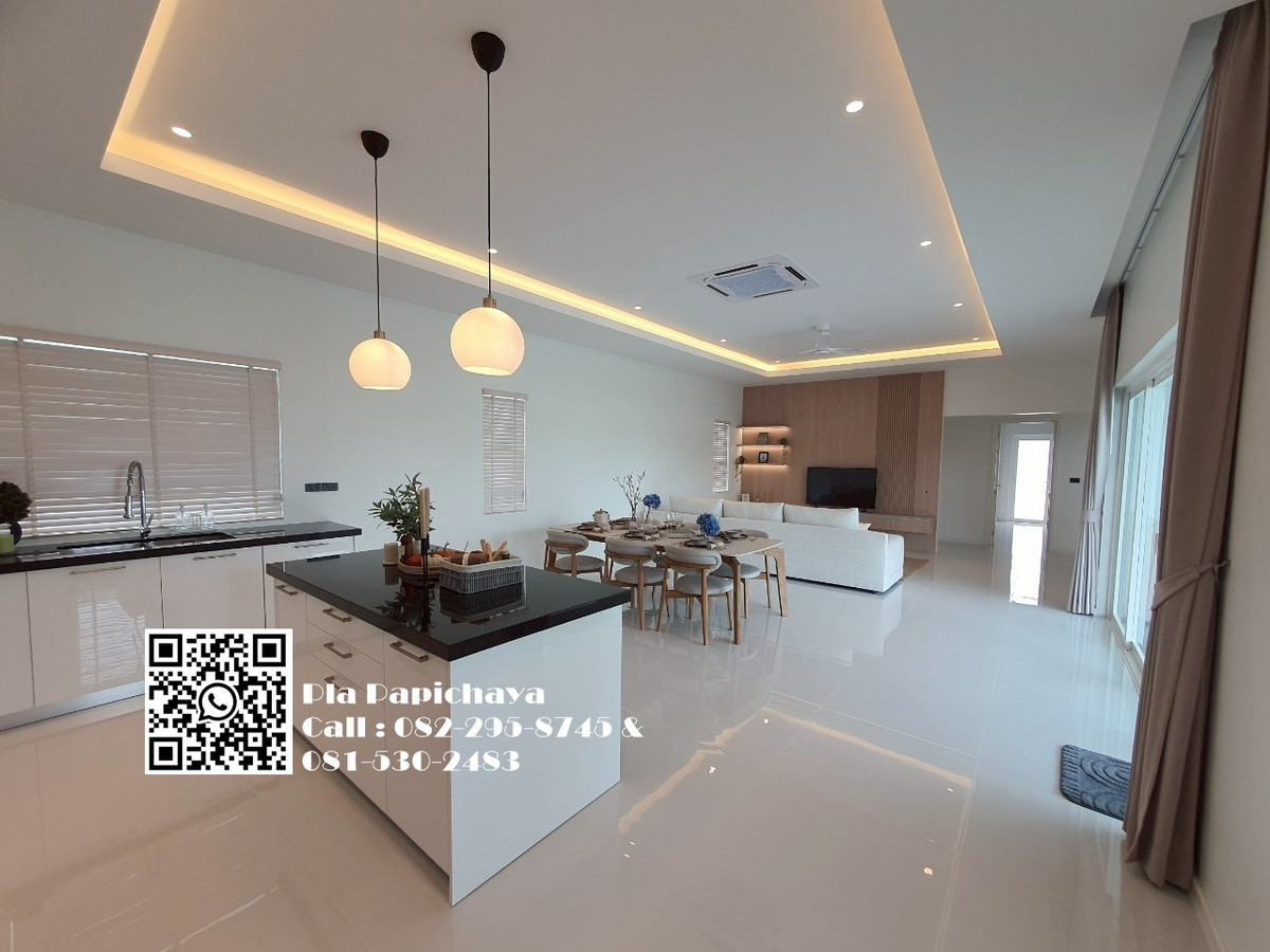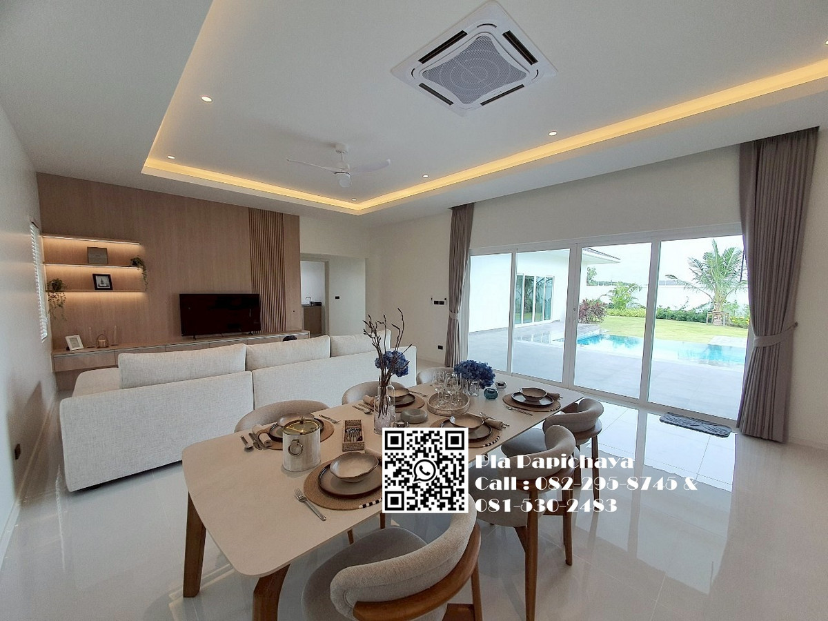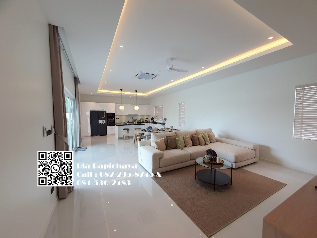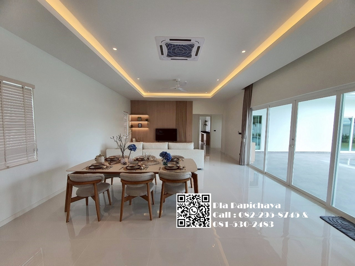 บ้านเดี่ยวหัวหิน ราคาขาย 12,603,500 บาท 3 ห้องนอน 3 ห้องน้ำ พื้นที่ดิน 833.6 ตารางเมตร (208.4 ตารางวา) พื้นที่ใช้สอย 260.13 ตารางเมตร ระยะทางเพียง 15 นาทีถึงหัวหิน, 10 นาทีสนามกอล์ฟไพน์แนปเพิ้ล และ 15