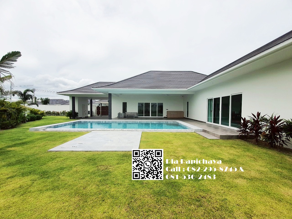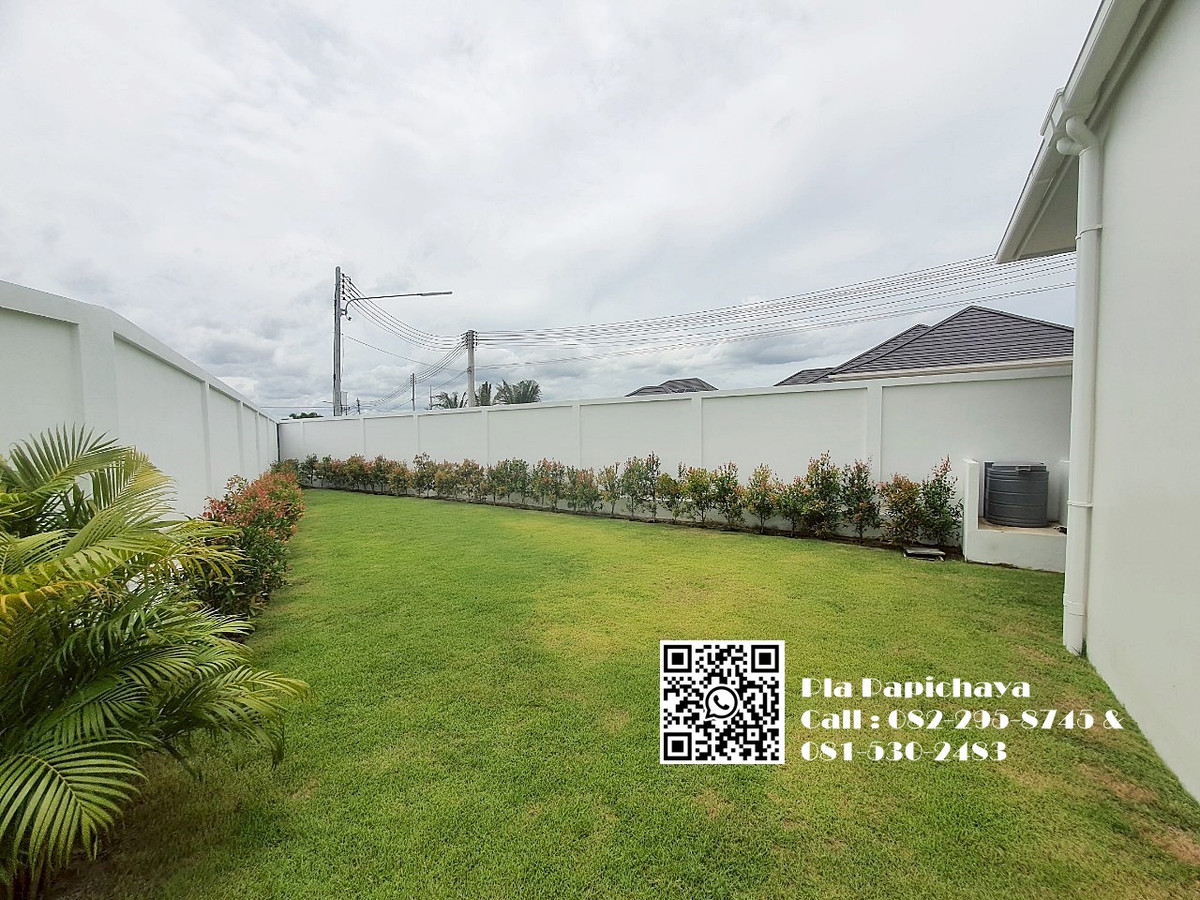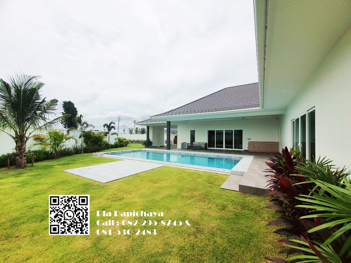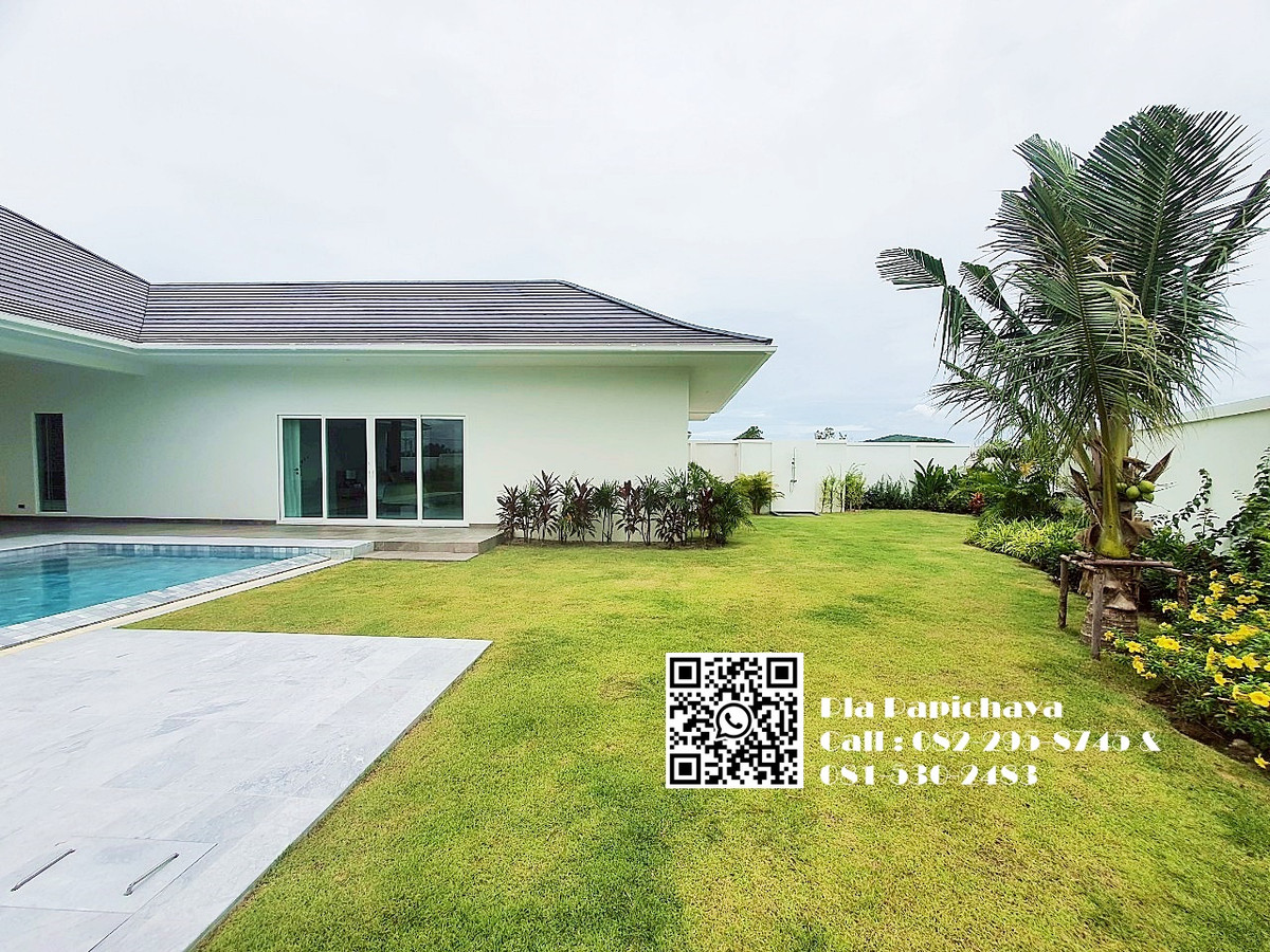 บ้านเดี่ยวหัวหิน ราคาขาย 12,603,500 บาท 3 ห้องนอน 3 ห้องน้ำ พื้นที่ดิน 833.6 ตารางเมตร (208.4 ตารางวา) พื้นที่ใช้สอย 260.13 ตารางเมตร ระยะทางเพียง 15 นาทีถึงหัวหิน, 10 นาทีสนามกอล์ฟไพน์แนปเพิ้ล และ 15