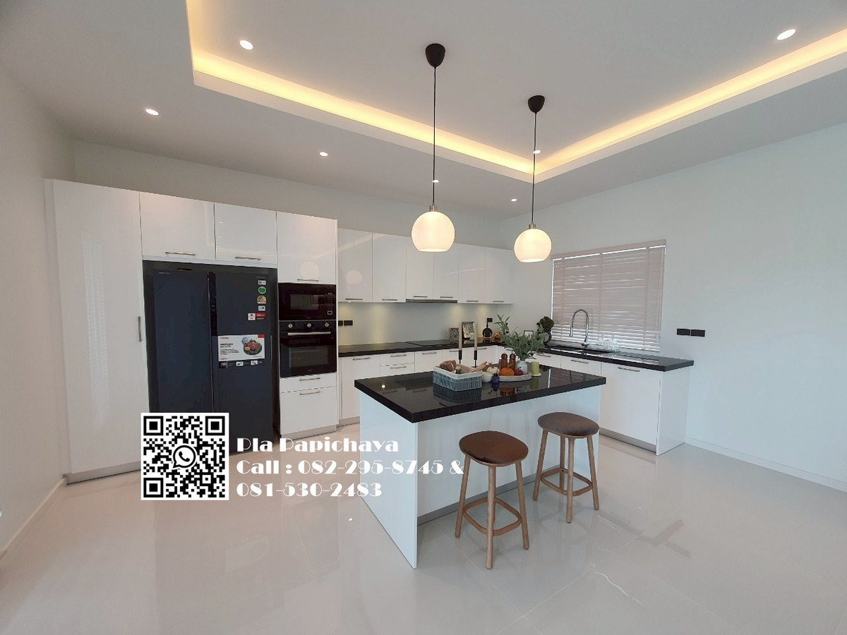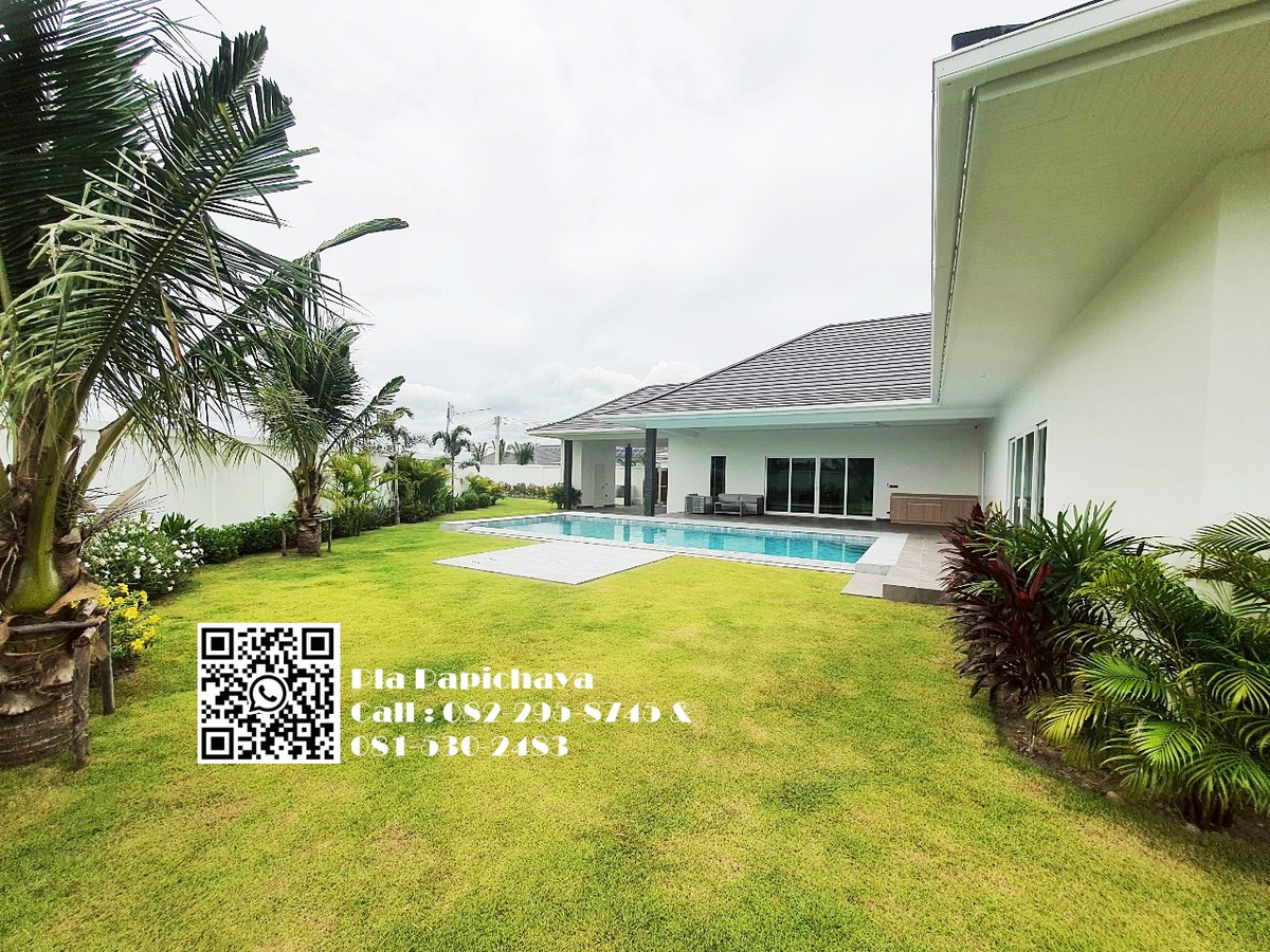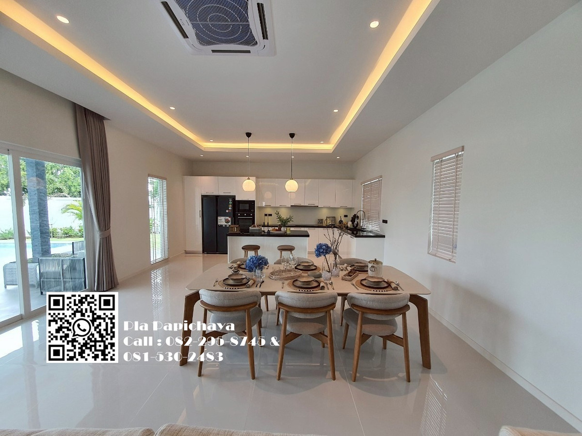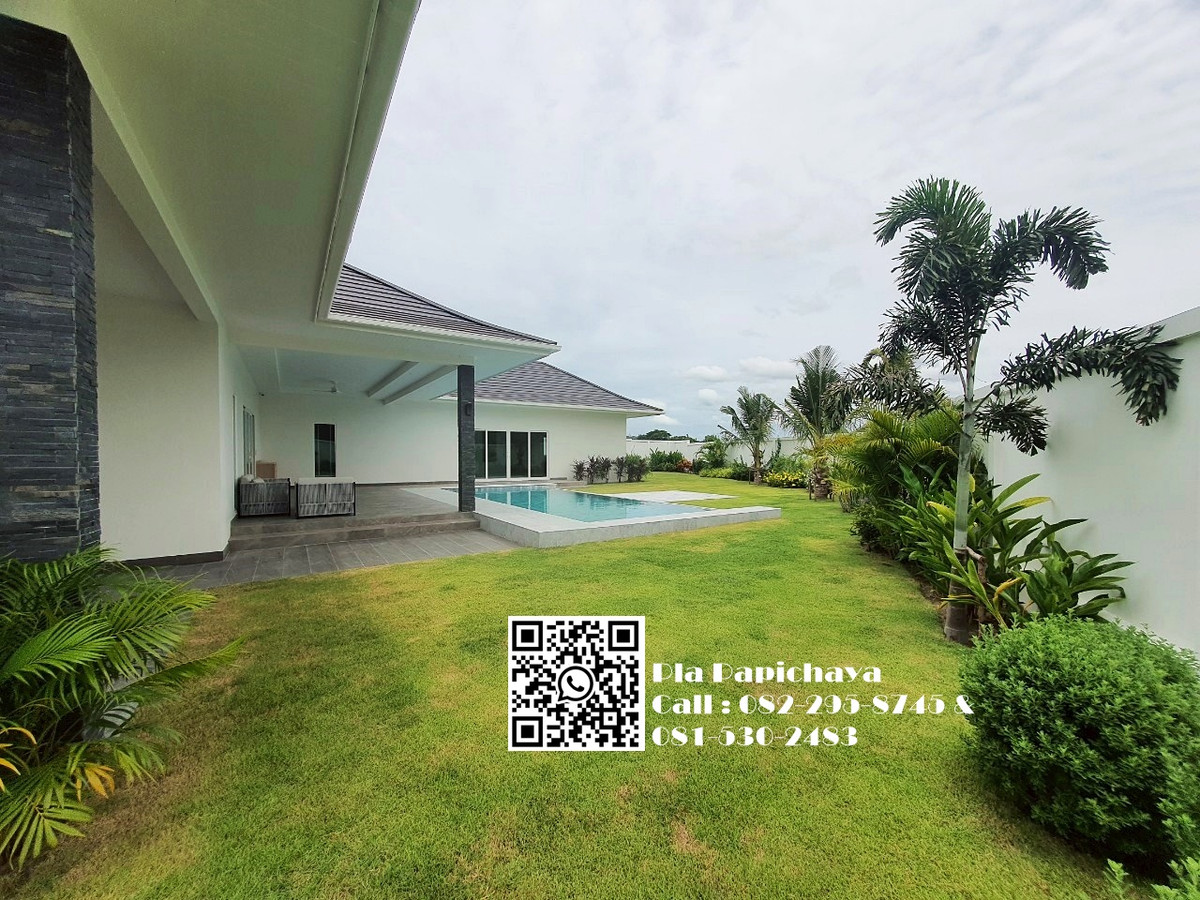 บ้านเดี่ยวหัวหิน ราคาขาย 12,603,500 บาท 3 ห้องนอน 3 ห้องน้ำ พื้นที่ดิน 833.6 ตารางเมตร (208.4 ตารางวา) พื้นที่ใช้สอย 260.13 ตารางเมตร ระยะทางเพียง 15 นาทีถึงหัวหิน, 10 นาทีสนามกอล์ฟไพน์แนปเพิ้ล และ 15