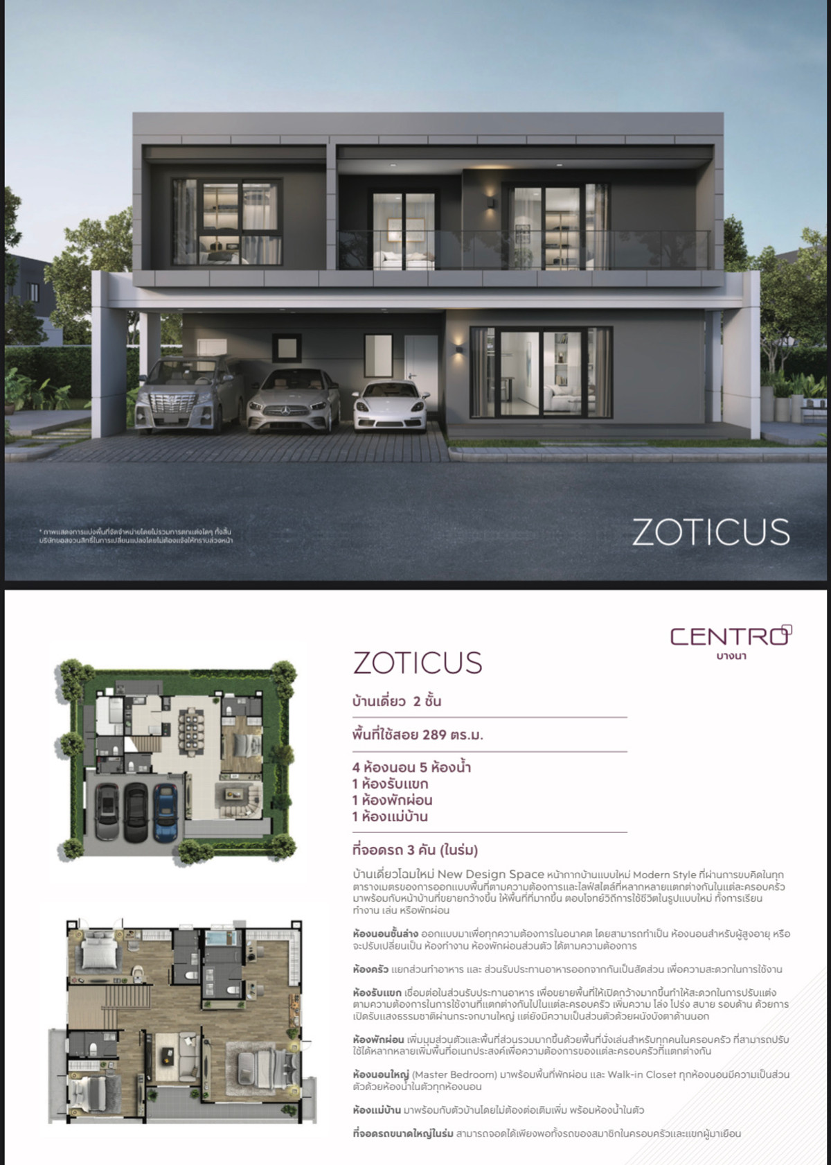 ขาย/เช่า บ้านเดียว Centro บางนา โซนหน้าใกล้ Clubhouse และ สวน