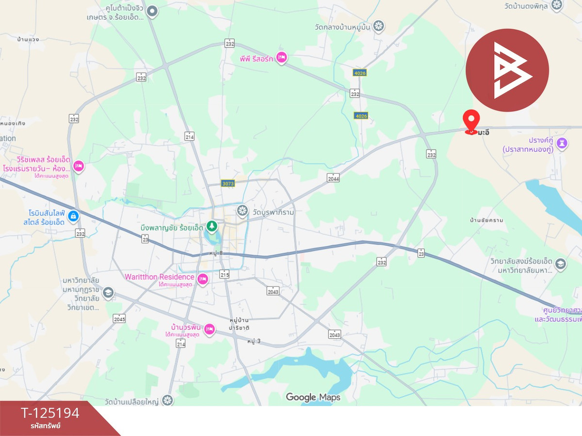 ที่ดินพร้อมสิ่งปลูกสร้าง : ธวัชบุรี ร้อยเอ็ด ที่ตั้ง : ต.มะอึ อ.ธวัชบุรี จ.ร้อยเอ็ด รหัสทรัพย์ : T-125194 ประเภท : โกดัง เนื้อที่ : 53 ไร่ 2 งาน 60.1 ตารางวา รายละเอียดเพิ่มเติม : แบ่งออกเป็น 16 แปลง (โฉนดพร้อมโอนทุกแปลง) บนถนนสนามบิน ใกล้สนามบินร้อยเอ็ดเพียง 10 กม. ติดถนนหลัก 4 เลน สิ่งปลูกสร้าง โกดังใหญ่ ขนาดกว้าง 36 ม. × ยาว 75 ม. โกดังด้านหลัง ขนาดกว้าง 59 ม. × ยาว 69 ม. มีโครงบ้านพัก 1 หลัง เดิมเป็นร้านวัสดุก่อสร้าง "หลังคาเหล็กสินชัย" สถานที่ราชการใกล้เคียง (5 แห่ง) แขวงทางหลวงร้อยเอ็ด สำนักงานป.ป.ช. ประจำจังหวัดร้อยเอ็ด สำนักงานบังคับคดีจังหวัดร้อยเอ็ด สำนักงานทรัพยากรธรรมชาติและสิ่งแวดล้อมจังหวัดร้อยเอ็ด สำนักงานป.ป.ท. เขต 4 ร้อยเอ็ด จุดเด่นทำเล ติดถนนสนามบิน (ทางหลวงหมายเลข 2044) ถนน 4 เลน เดินทางสะดวก ห่าง สนามบินร้อยเอ็ดเพียง 10 กม. ใกล้แหล่งราชการ ศูนย์กลางเมืองใหม่ของร้อยเอ็ด ใกล้อ่างเก็บน้ำรัชชัย และสวนสาธารณะริมบึง เหมาะทำโรงงาน ศูนย์กระจายสินค้า หรือที่พักพนักงาน พื้นที่ขนาดใหญ่พร้อมสิ่งปลูกสร้าง พร้อมต่อยอดธุรกิจได้ทันที เหมาะสำหรับนักลงทุน และผู้ประกอบการที่ต้องการทำเลเด่นในจังหวัดร้อยเอ็ด ราคา : 187,000,000 บาท ลิงค์แผนที่ : https://maps.google.com/?q=16.08205400,103.71462300 **เรามีบริการจัดสินเชื่อให้ฟรี พร้อมยินดีให้คำปรึกษา มีให้เลือกทุกธนาคาร** **พร้อมอัตราดอกเบี้ยพิเศษ และ วงเงินสูงสุด 90-100% ของราคาประเมิน** สนใจสอบถามข้อมูลเพิ่มเติม หรือ นัดชมบ้านได้ที่ Tel : คลิกเพื่อดูเบอร์โทรติดต่อ โมทย์ (รหัสตัวแทน 6087) Line ID : motaya2020 Tel : คลิกเพื่อดูเบอร์โทรติดต่อ ตุ๊กตา (รหัสตัวแทน 6087-1) Line ID : คลิกเพื่อดูเบอร์โทรติดต่อ Callcenter : คลิกเพื่อดูเบอร์โทรติดต่อ สนใจดูทรัพย์อื่นๆ เพิ่มเติม มากกว่า 3,000 รายการ www.tb.co.th The Best Property Agent CO,.LTD. ผู้นำด้านธุรกิจนายหน้า ตัวแทนอสังหาริมทรัพย์ครบวงจร ด้วยความเป็นมืออาชีพ ใช้เทคโนโลยี และ นวัตกรรมที่สร้างสรรค์ เพื่อส่งมอบบริการที่ดีที่สุดเพื่อคุณ ให้บริการด้าน ซื้อ ขาย เช่า อสังหาริมทรัพย์