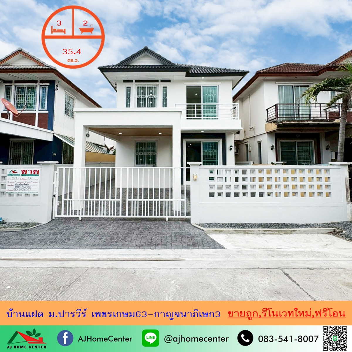 รีโนเวทใหม่ขาย3.89ล้าน บ้านแฝด35.4ตรว. ม.ปารวีร์ เพชรเกษม63-กาญจนาภิเษก3 ฟรีโอน . บ้านแฝด 35.4 ตารางวา พื้นที่ใช้สอย 130 ตารางเมตร 3ห้องนอน 2ห้องน้ำ 1ห้องครัว 1ห้องรับแขก 1ที่จอดรถ . ***รีโนเวทใหม่ทั้งหลัง*** - ทำสีใหม่ทั้งหลัง - ต่อเติมหลังคาหน้าบ้าน-หลังบ้าน+ปูกระเบื้องใหม่ - ต่อเติมครัวไทยหลังบ้าน+เค้าเตอร์ครัว+ติดตั้งฮู้ดดูดควัน - ปูแสตมป์คอนกรีตใหม่หน้าบ้าน - ปูกระเบื้องภายในและปูพื้นSPCชั้น2ใหม่ - เปลี่ยนพื้นกระเบื้องห้องน้ำและสุขภัณฑ์ใหม่ - แถมปั๊มน้ำ , แทงค์น้ำ , ติดตั้งเหล็กดัด - ค่าส่วนกลาง 812 บาท/เดือน . ที่ตั้งทรัพย์สิน : ม.ปารวีร์ เพชรเกษม63-กาญจนาภิเษก003 บ้านเลขที่19/54 ซ.เพชรเกษม63 หรือซอยกาญจนาภิเษก3 ถ.บางบอน2-วัดม่วง แขวงหลักสอง เขตบางแค กรุงเทพมหานคร พิกัดตัวบ้าน : https://maps.app.goo.gl/KtqPa92Ze1FseB9AA การเดินทาง เริ่มจาก ถนนกาญจนาภิเษก > ถนนเพชรเกษม > ซอยเพชรเกษม63 (ซอยวัดม่วง) > ซ.กาญจนาภิเษก3 >—2.5 กม.—>บ้านปารวีร์ เพชรเกษม63 *ใกล้ซอยร่มไทร . ราคาขาย 3,890,000 บาท . จุดเด่น ▪️ ราคาถูกที่สุดที่มีประกาศขายอยู่ในตอนนี้ ▪️ บ้านสวย รีโนเวทใหม่ทั้งหลัง ▪️ ปูแสตมป์คอนกรีตใหม่ ปูกระเบื้องภายในใหม่ ปูพื้นSPCใหม่ ต่อเติมห้องครัวใหม่ ห้องน้ำเปลี่ยนกระเบื้องเปลี่ยนสุขภัณฑ์ให้ใหม่ ▪️ ถนนซอยกว้างไม่อึดอัด น่าอยู่ ไม่มีรถจอดเกะกะ ▪️ หน้าบ้านหันทิศเหนือ ทิศดีบ้านไม่ร้อน ▪️ ค่าส่วนกลางปี2568จ่ายให้แล้ว ▪️ เดินทางสะดวก มีเส้นทางให้ใช้หลายเส้นทาง เช่น ซ.เพชรเกษม63, 69, 81 และซอยกาญจนาภิเษก003 ▪️ ใกล้รถไฟฟ้า MRTสายสีน้ำเงิน สถานีหลักสอง ▪️ บริการจัดสินเชื่อฟรีโดยมืออาชีพ . สถานที่ใกล้เคียง • The Tree บางบอน • ตลาดสดคลองขวาง • สน.หนองแขม • สนง.เขตบางบอน • ร.ร.สารสาสน์วิเทศบางบอน • ร.ร.กรพิทักษ์ศึกษา • Victoria Gardens เพชรเกษม • The Ex place กาญจนาภิเษก • Makro บางบอน • รพ.วิชัยเวชอินเตอร์เนชั่นเนล หนองแขม • รพ.เกษมราษฎร์ บางแค • สำนักงานที่ดินหนองแขม • สำนักงานเขตหนองแขม • ตลาดสดเพชรเกษม79 • ตลาดสดเพชรเกษม77 • ร.ร.เลิศหล้ากาญจนาภิเษก • ม.เอเชียอาคเนย์ . *** มีบริการรับผ่อนตรง โดย Certified Agent ของ Juzmatch *** . สนใจติดต่อ คุณอ๋อง โทร. คลิกเพื่อดูเบอร์โทรติดต่อ / คลิกเพื่อดูเบอร์โทรติดต่อ / คลิกเพื่อดูเบอร์โทรติดต่อ