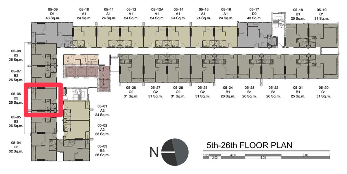 ห้องขนาด 26 ตร.ม. ชั้น 8