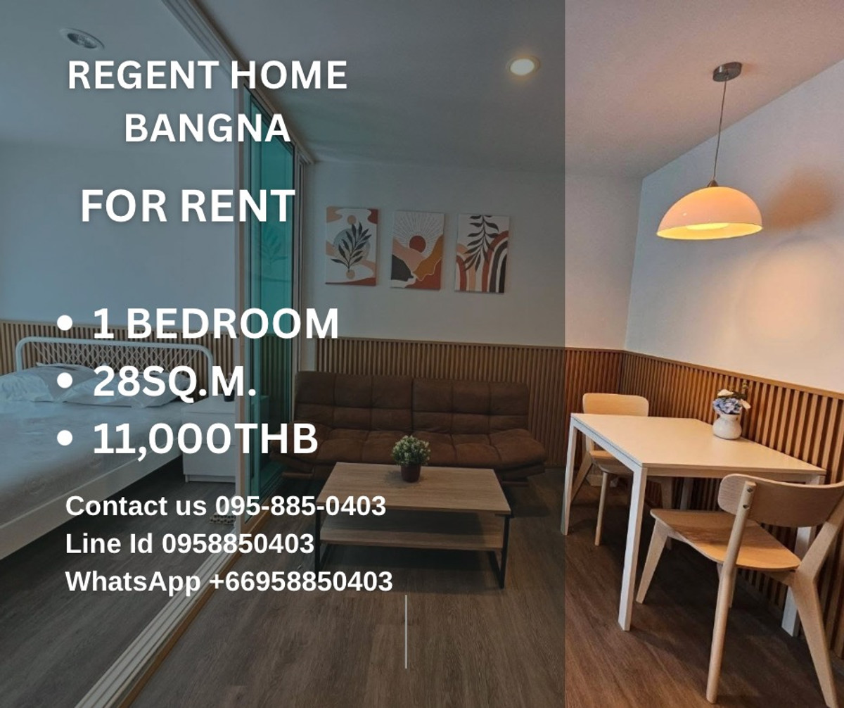 📣 ให้เช่า Regent Home Bangna ✅ ห้องพร้อมอยู่ 🚄 เพียง 350 เมตรจาก BTS บางนา — ทำเลสะดวกมาก! ♦️ 1 ห้องนอน 1 ห้องน้ำ ♦️ ขนาด 28 ตร.ม. ♦️ ตึก D ชั้น 15 🛋 เฟอร์นิเจอร์ครบ + เครื่องใช้ไฟฟ้าครบ รายการภายในห้