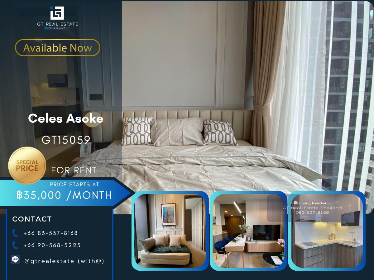 CODE : GT15059 Project : Celes Asoke Type : 1 ห้องนอน 1 ห้องน้ำ Size : 34.7 ตร.ม. Floor : 11+ อาคาร : - MRT/BTS : BTSอโศก Rental Price : ราคาพิเศษเพียง 35,000 บาทต่อเดือนเท่านั้น!!! จากราคาปกติ 40,000