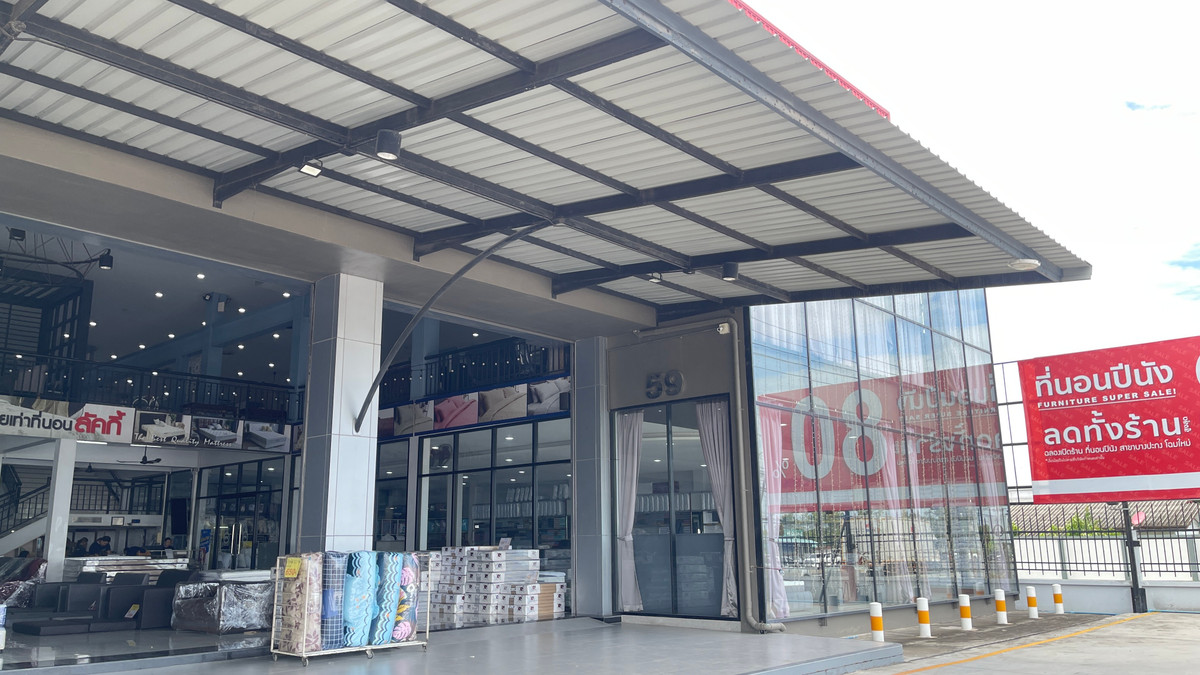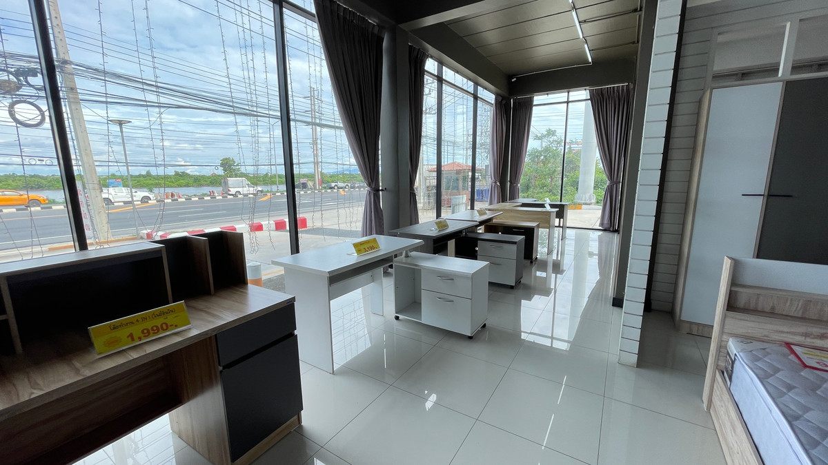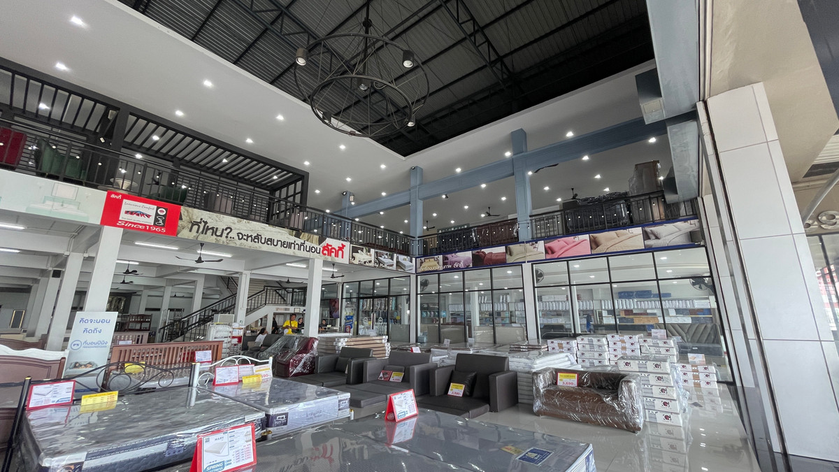 ขายโชว์รูมเฟอร์นิเจอร์ขนาดใหญ่พื้นที่กว่า 2-2-72 ไร่ โครงสร้างปูน 2 ชั้น มีบันไดเลื่อน พร้อมโกดังคลังสินค้า และที่พักคนงาน10กว่าห้อง เนื้อที่ 2 ไร่ 2 งาน 72 ตรว. (1,072ตรว.) เนื้อที่ใช้สอยโกดัง 3,704