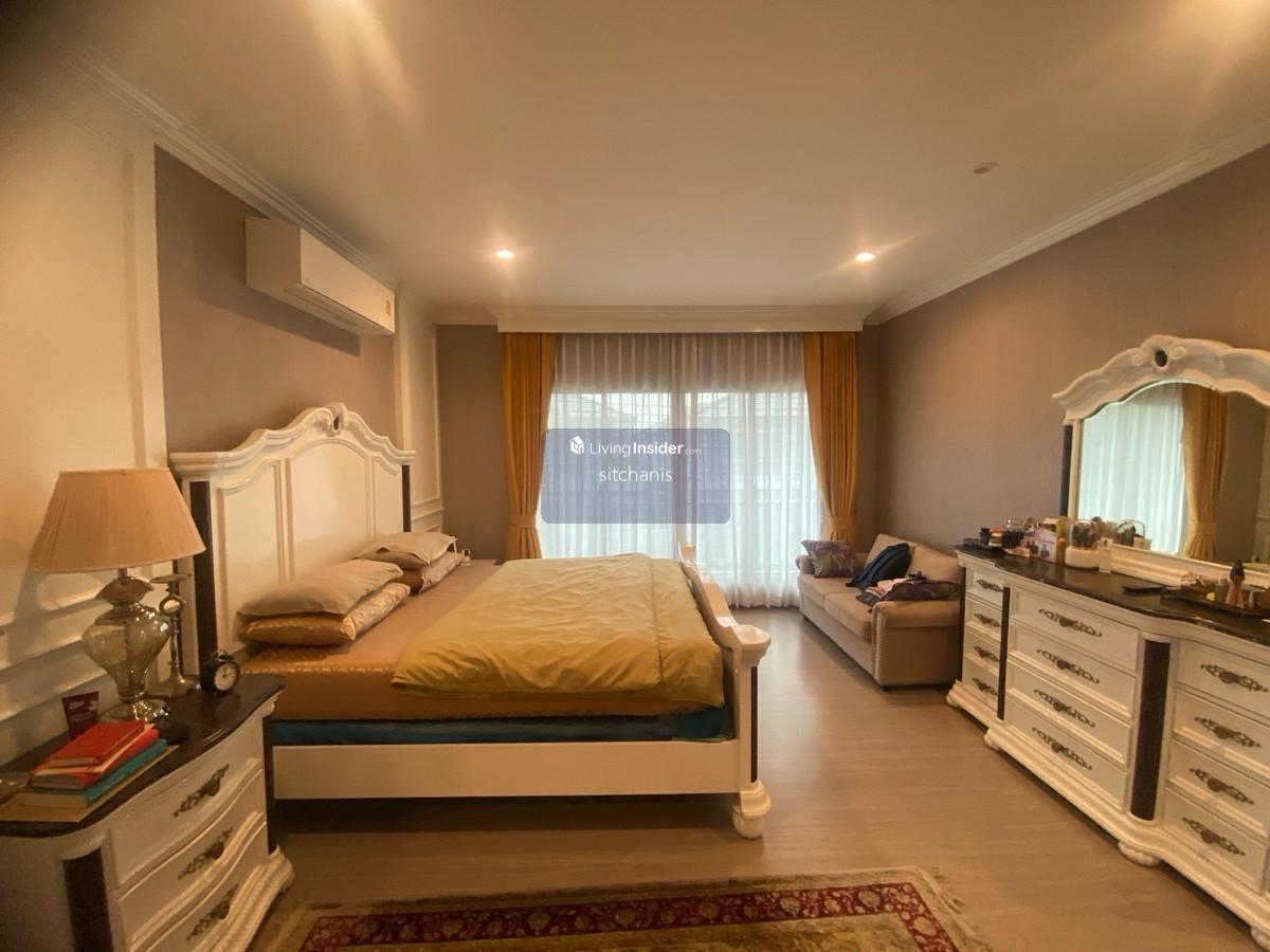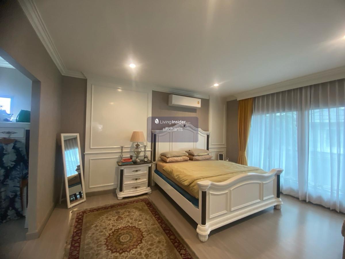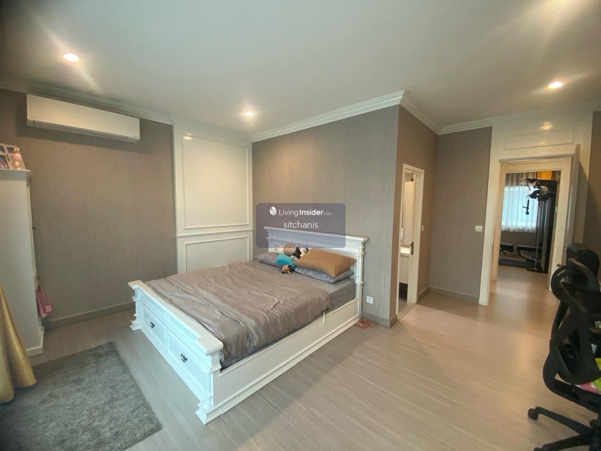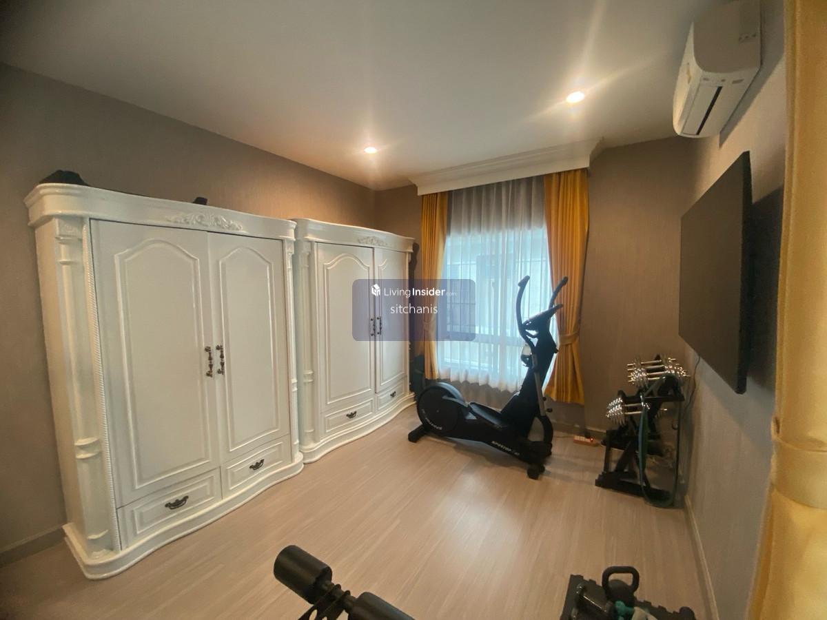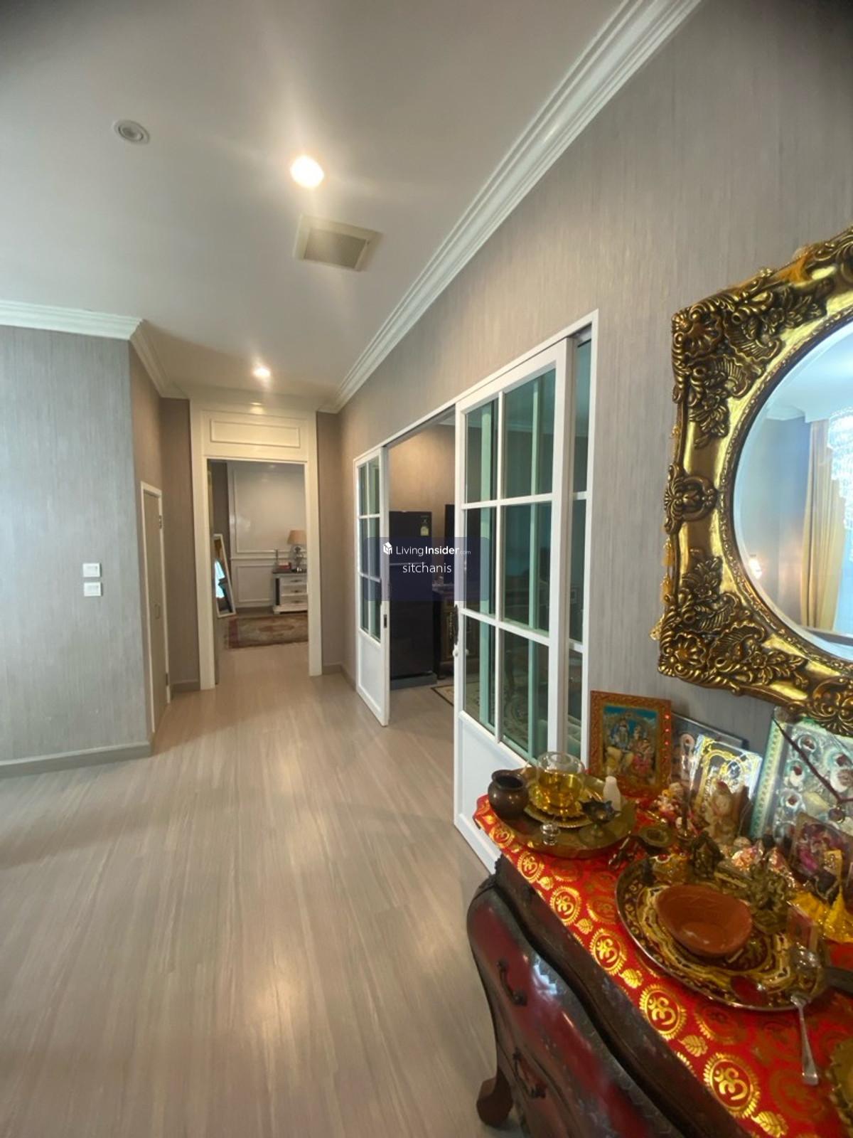 ขายบ้านเดี่ยว The Plam เดอะปาล์มแจ้งวัฒนะ-ชัยพฤกษ์ รายละเอียดบ้าน บ้านเดี่ยว 2 ชั้น ขนาดที่ดิน 85 ตรว. -พื้นที่ใช้สอย 315 ตรม. -4 ห้องนอน 4 ห้องน้ำ ครัวใน 1 ครัวไทย -มีห้องนอนชั้นล่างหรือดัดแปลงเป็นห้องเอนกประสงค์ -ห้องรับเเขก เเละห้องรับประทานอาหารขนาดใหญ่ -ชั้น 2ห้องนอน 3ห้อง ห้องน้ำ 3ห้อง มีโถงกลางกั้นห้องทำงานเเยกสัดส่วน ห้อง นอนใหญ่มีกั้นwalkin closet ห้องน้ำมีอ่าง -มีห้องแม่บ้านและห้องน้ำแยกส่วน -ที่จอดรถในร่ม 3 คัน -หน้าบ้านหันทิศ เหนือ ตก จุดเด่นของบ้าน - สภาพสวย รอบบ้านมีพื้นที่ ภายในเจ้าของเฟอร์จัดเต็ม ราคาขาย 11,000,000 ล้านบาท ราคาเช่า 55,000บาท จุดเด่นโครงการ -ระบบรักษาความปลอดภัย สัญญาณกันขโมยและกล้องวงจรปิดตลอด 24 ชั่วโมง - สนามบาส สวนหย่อม -มีสระว่ายน้ำ ฟิตเนส สถานที่สำคัญใกล้เคียง -เซ็นทรัลแจ้งวัฒนะ - รร.นานาชาติ ISB ,รร.สวนกุหลาบวิทยาลัยนนทบุรี ,มหาวิทยาลัยธุรกิจบัณทิตย์, รร.PIM -โรงพยาบาลมงกุฎวัฒนะ, โรงพยาบาลเวิลด์เมดิคอล ,โรงพยาบาลวิภาราม ปากเกร็ด ติดต่อ นัดชม คลิกเพื่อดูเบอร์โทรติดต่อ Single-family home for sale at The Palm Chaengwattana-Chaiyaphruek. House details: 2-story single-family home on 85 sq wah land plot. - Usable area: 315 sq m. - 4 bedrooms, 4 bathrooms, 1 Thai kitchen. - 1 bedroom downstairs or convertible into a multipurpose room. - Large living room and dining room. - 2nd floor: 3 bedrooms, 3 bathrooms, central hallway with separate office. The master bedroom has a walk-in closet and bathroom with a bathtub. - Separate maid's room and bathroom. - 3-car covered parking. - North-west facing front. House highlights: - Excellent condition, spacious surroundings, fully furnished interior. Sale price: 11,000,000 baht. Rental price: 55000baht. Project highlights: - 24-hour security system, burglar alarm, and CCTV. - Basketball court, garden. - Swimming pool, fitness center. Nearby landmarks: - Central Chaengwattana - ISB International School, Suankularb Wittayalai Nonthaburi School, Dhurakij Pundit University, PIM School - Mongkutwattana Hospital, World Medical Hospital, Vibharam Pakkret Hospital Contact for viewing appointments: คลิกเพื่อดูเบอร์โทรติดต่อ 位於Chaengwattana-Chaiyaphruek棕櫚園的獨棟別墅出售。 房屋詳情: 兩層獨棟別墅,佔地85平方哇(約315平方公尺)。 - 使用面積:315平方公尺。 - 4間臥室,4間浴室,1間泰式廚房。 - 一樓設有1間臥室,也可改建為多功能室。 - 寬敞的客廳和餐廳。 - 二樓:3間臥室,3間浴室,中央走廊設有獨立辦公室。主臥室配有步入式衣帽間和帶浴缸的浴室。 - 獨立的傭人房和浴室。 - 可停3輛車的有蓋停車位。 - 朝向西北方。 房屋亮點: - 房屋狀況極佳,週邊環境寬敞,室內家具齊全。 售價:11,000,000泰銖。 租金:55000泰銖。 項目亮點: - 24小時保全系統、防盜警報器和閉路電視監控。 - 籃球場、花園。 - 游泳池、健身中心。 附近地標: - 昌瓦塔納中心 - ISB國際學校、素坤逸威塔亞萊暖武里學校、杜拉吉潘迪特大學、PIM學校 - 蒙庫瓦塔納醫院、世界醫療醫院、維巴拉姆帕克雷特醫院 預約看房請聯絡: คลิกเพื่อดูเบอร์โทรติดต่อ