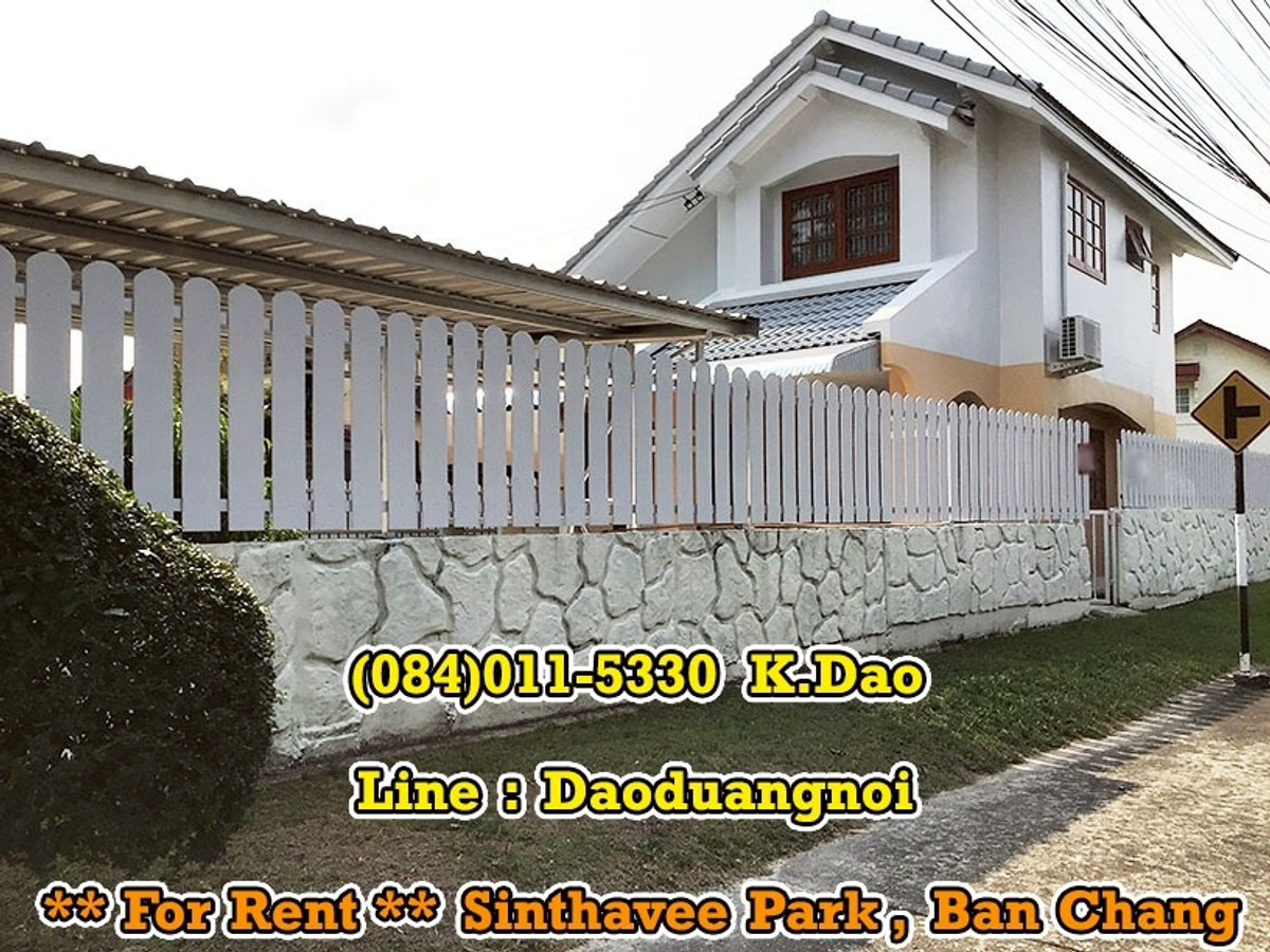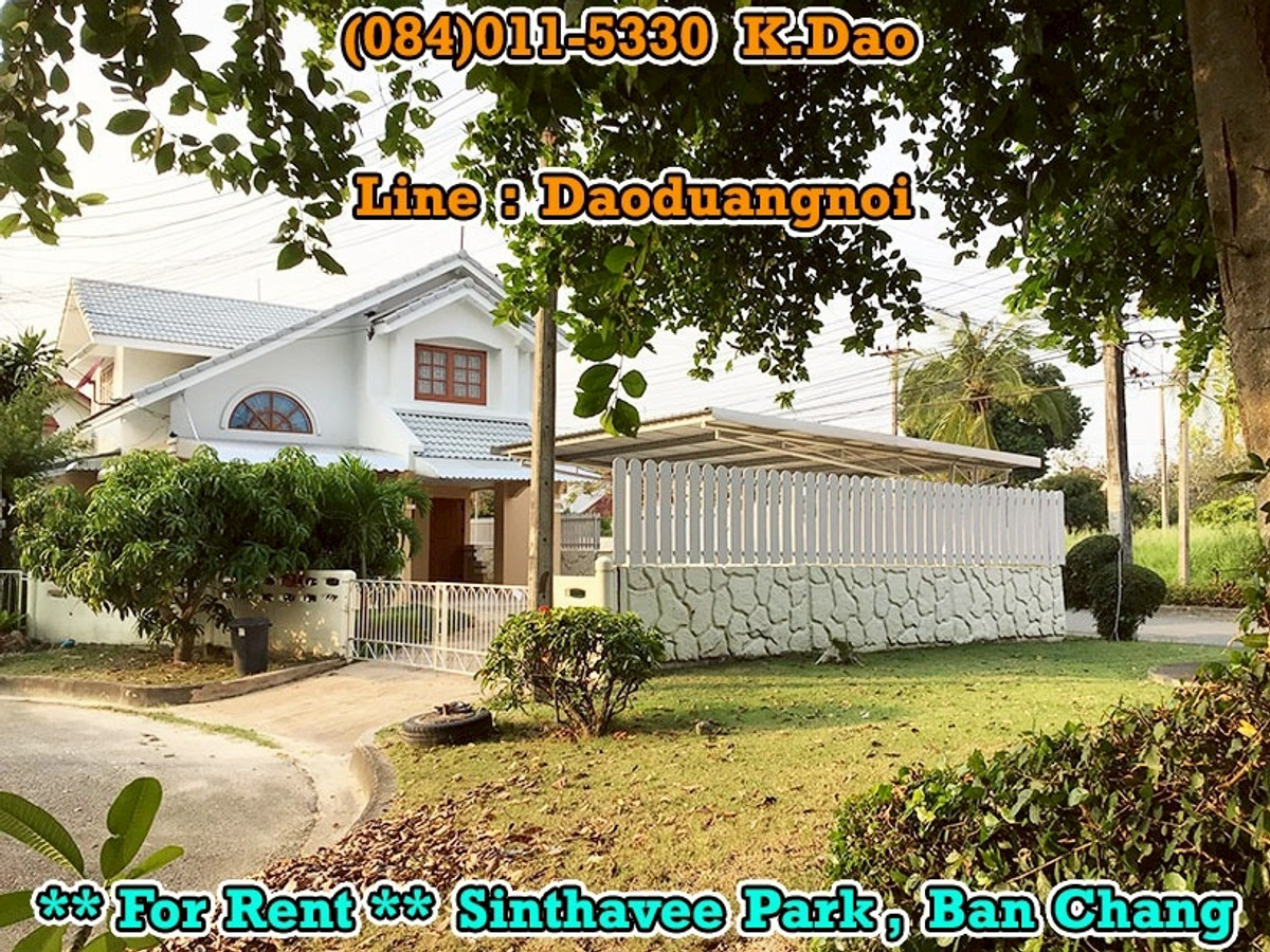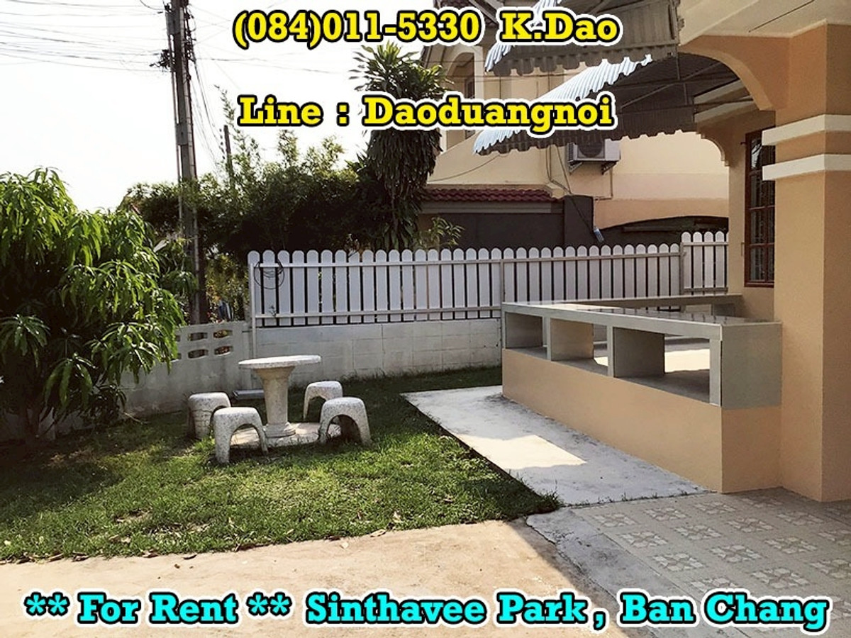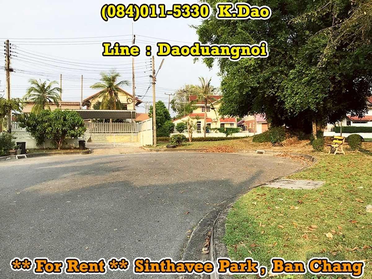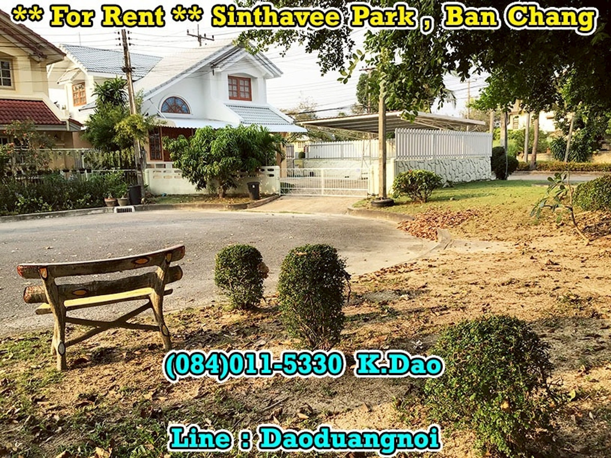 *** For Rent *** Ban Chang Sinthavee Park by Eastern Star 2-Storey House Land Area 70 Sqr.wah 3 Bedrooms 2 Bathrooms 1 Kitchen 1 Dining Room 1 Living Room 3 Parking Patio Furniture and Swing in the garden. Fully Furnished, Ready to move in. The house is located on the main street. Community park with playground is in front of this house. Be shady, cool and pleasant. +++ Rental Fee 15,000 Baht +++ Expat Community Enter and Exit the village’s gate with the keycard. 24-hour security guard In front of the house is community park which has the patio furniture. The village has many park area and big fish pond for relaxation. Convenient for a journey, good to buy for investment and living. Near Burapaphat-Banchang Road. The village is close to the crossroad. Near Ban Chang Sub District Sport Stadium Near Seven Eleven (7-11) Near Lotus Express Near Mini Big C Near Flea Market Location : https://goo.gl/maps/npgM1hBZKZUcjU2W7 Contact for renting with Dao Tel. : (084)011-5330 Line ID : Daoduangnoi WhatsApp : คลิกเพื่อดูเบอร์โทรติดต่อ https://www.facebook.com/ThePastelProperty