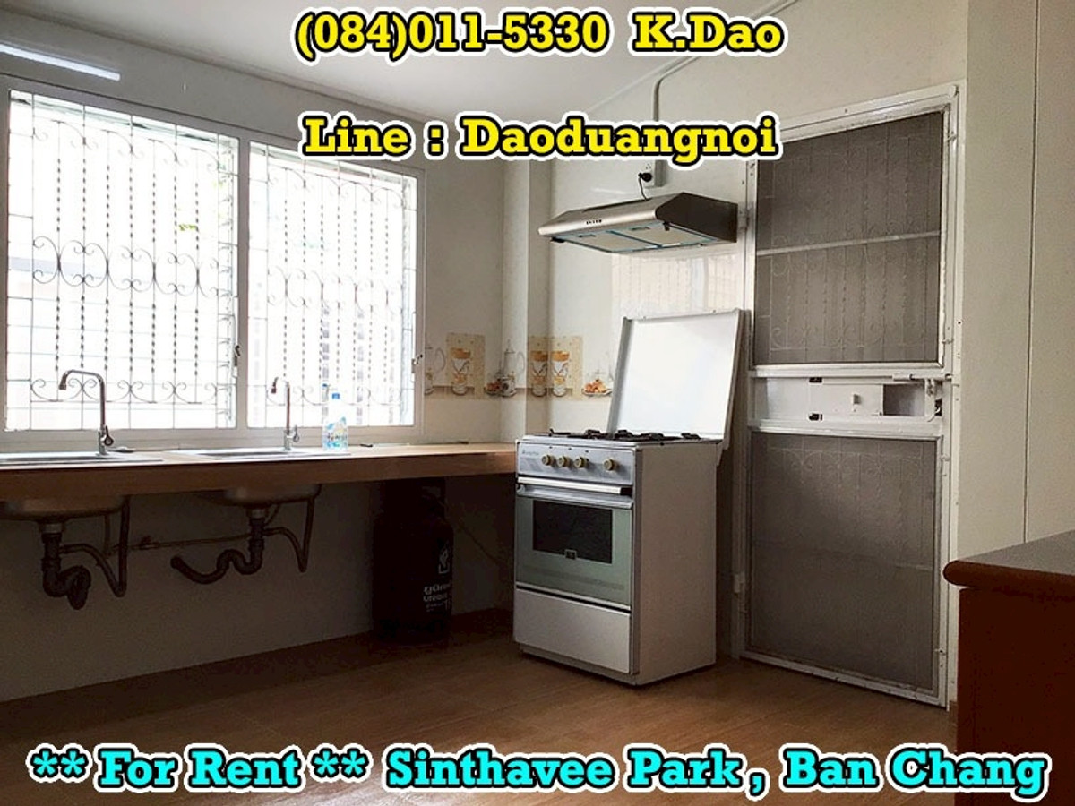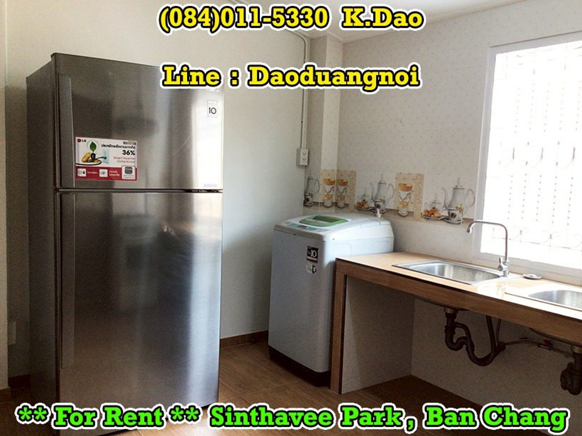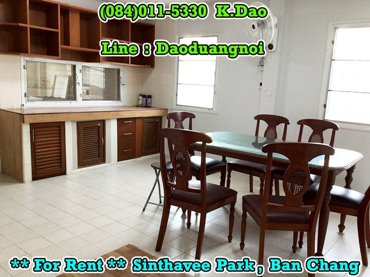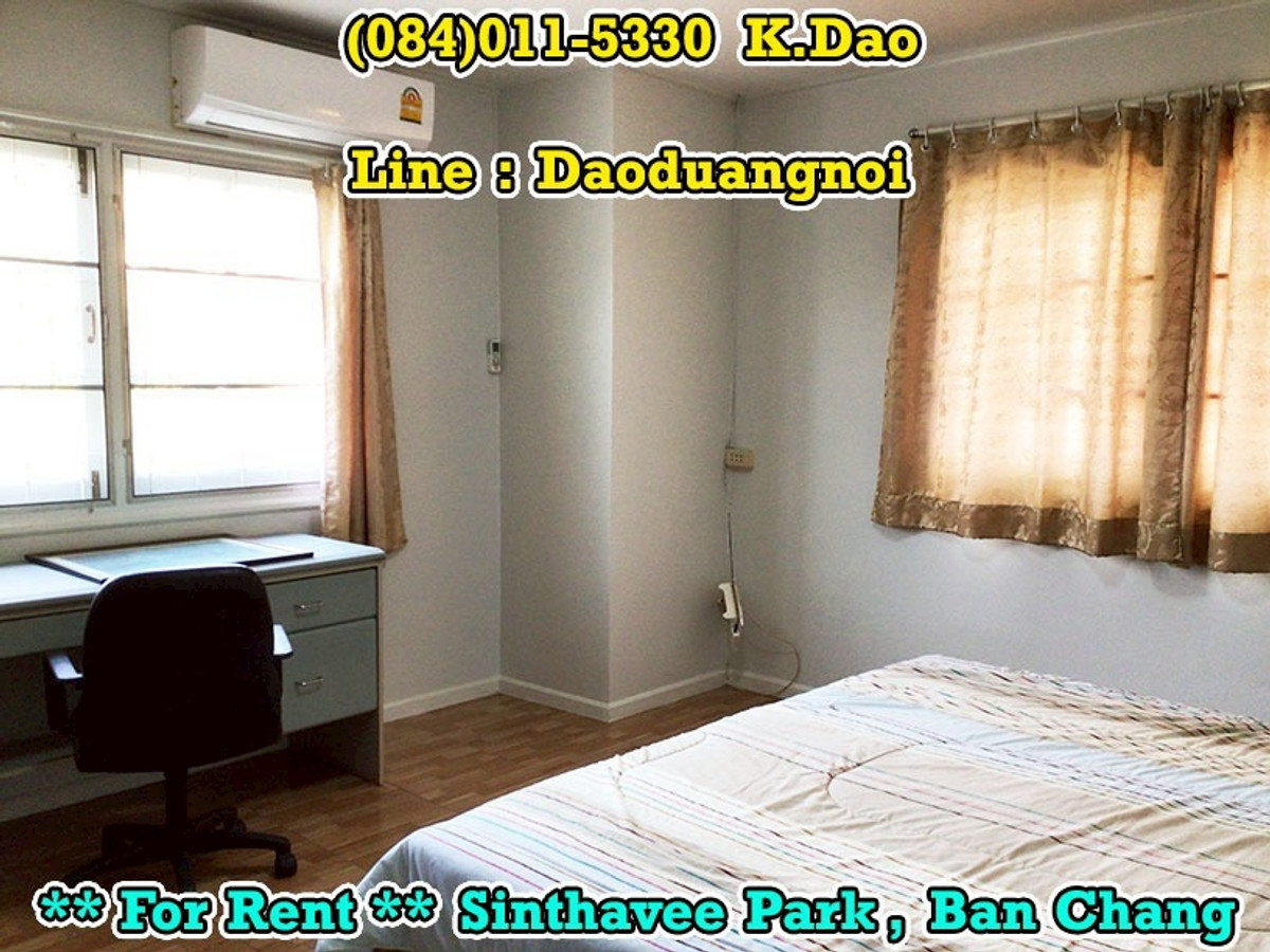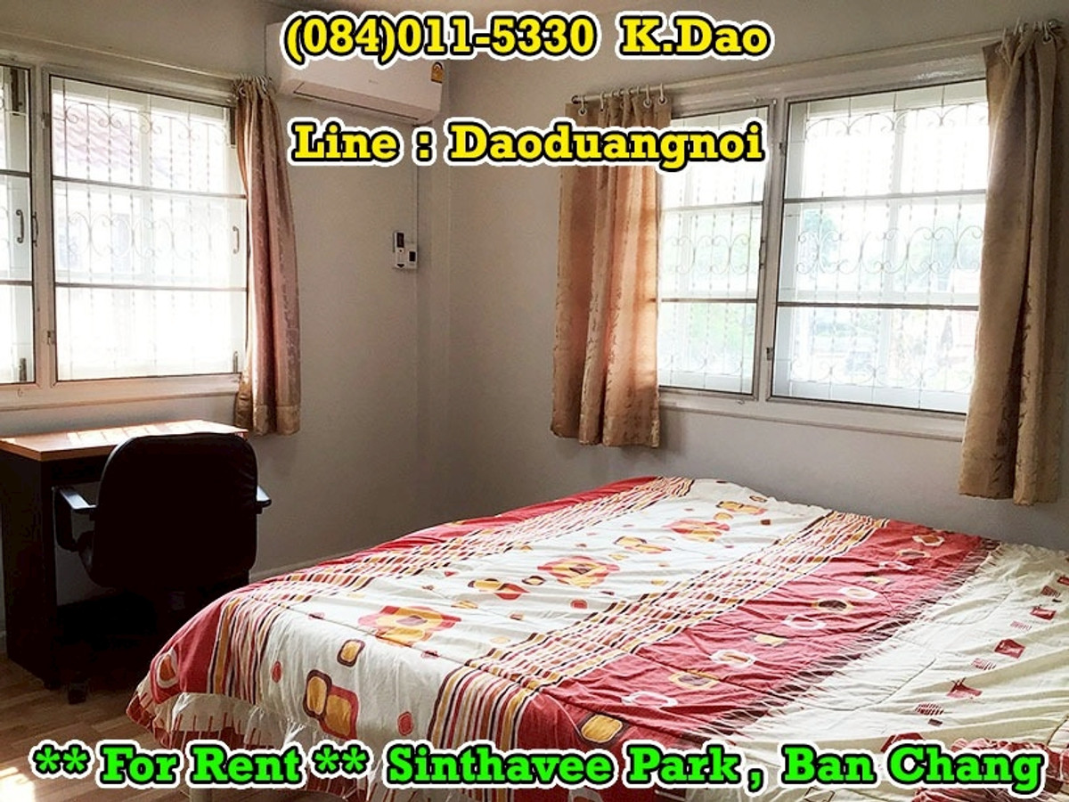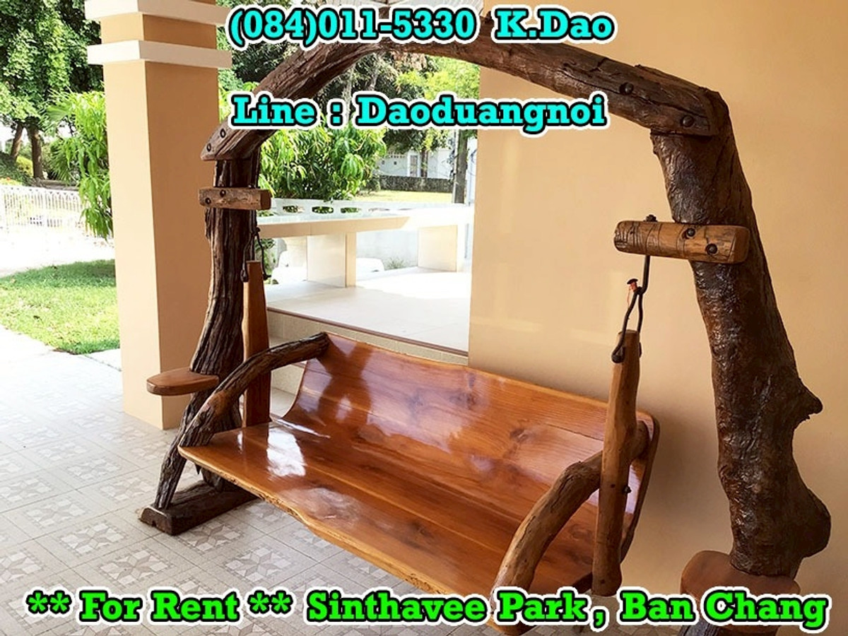 *** For Rent *** Ban Chang Sinthavee Park by Eastern Star 2-Storey House Land Area 70 Sqr.wah 3 Bedrooms 2 Bathrooms 1 Kitchen 1 Dining Room 1 Living Room 3 Parking Patio Furniture and Swing in the garden. Fully Furnished, Ready to move in. The house is located on the main street. Community park with playground is in front of this house. Be shady, cool and pleasant. +++ Rental Fee 15,000 Baht +++ Expat Community Enter and Exit the village’s gate with the keycard. 24-hour security guard In front of the house is community park which has the patio furniture. The village has many park area and big fish pond for relaxation. Convenient for a journey, good to buy for investment and living. Near Burapaphat-Banchang Road. The village is close to the crossroad. Near Ban Chang Sub District Sport Stadium Near Seven Eleven (7-11) Near Lotus Express Near Mini Big C Near Flea Market Location : https://goo.gl/maps/npgM1hBZKZUcjU2W7 Contact for renting with Dao Tel. : (084)011-5330 Line ID : Daoduangnoi WhatsApp : คลิกเพื่อดูเบอร์โทรติดต่อ https://www.facebook.com/ThePastelProperty