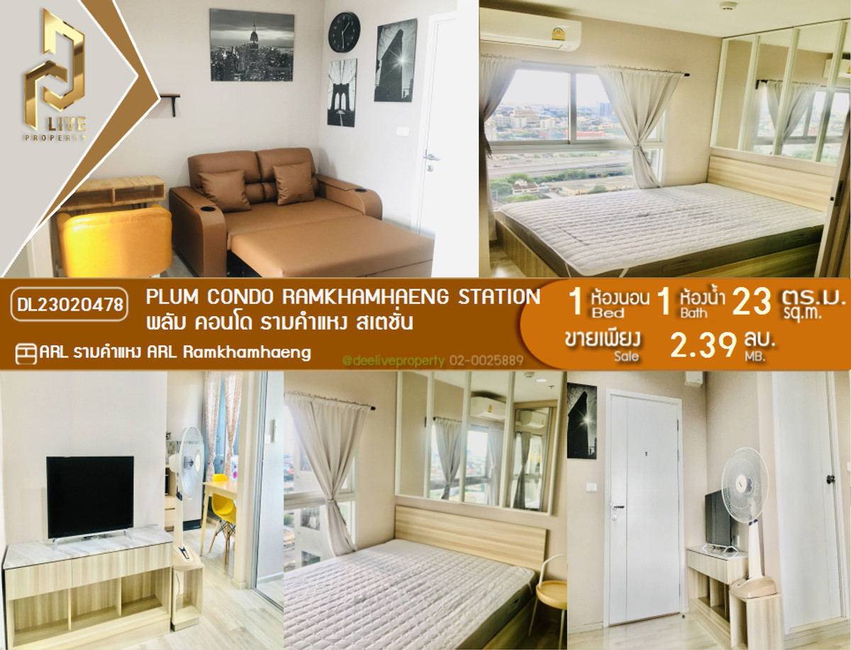 DL23020478 ขาย คอนโดมิเนี่ยม พลัม คอนโด รามคำแหง สเตชั่น (PLUM CONDO RAMKHAMHAENG STATION) พร้อมเข้าอยู่ Pix Deelive (พิกซ์ ดีลีฟ)โทรด่วน คลิกเพื่อดูเบอร์โทรติดต่อ LineID-@897iyzll สถานที่ใกล้เคียง A-