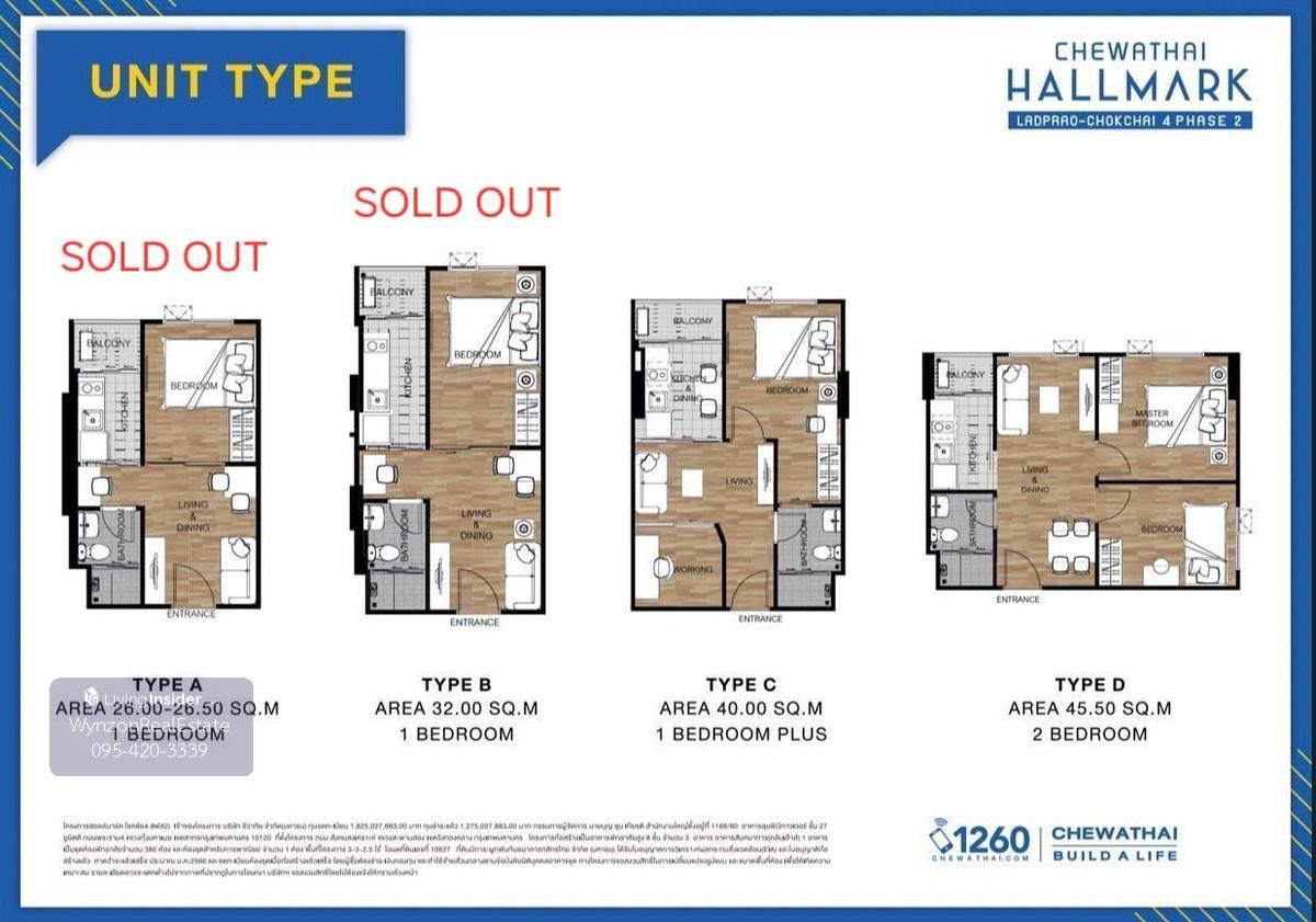 🏢Chewathai-Hall Mark Ladprao-Chokchai 4 Phase 2 ใกล้รถไฟฟ้า 3 สาย!! รายละเอียด ✨ โครงการ ชีวาทัย ฮอลล์มาร์ค ลาดพร้าว - โชคชัย 4 Phase 2 รองรับ Pet Friendly เลี้ยงสัตว์ได้ เป็นโครงการใหม่จาก บริษัท ชีวาทัย จำกัด (มหาชน) ที่ตั้งโครงการอยู่บนถนนสังคมสงเคราะห์ แขวงสะพานสอง เขตวังทองหลาง กทม. ✨ วิวนอก ห้องใหญ่มาก!! อาคาร D ชั้น 4 พื้นที่ใช้สอยกว่า 39.89 ตารางเมตร มีหลายห้องให้เลือก ตำแหน่งดี เหมาะแก่การซื้อพักอาศัยเอง/ลงทุน ✨ มี 4 Type ให้ท่านเลือก Type A : 1 Bedroom พื้นที่ใช้สอย 26.00-26.50 ตร.ม. Type B : 1 Bedroom พื้นที่ใช้สอย 32.00 ตร.ม. Type C : 1 Bedroom พื้นที่ใช้สอย 40.00 ตร.ม. Type D : 2 Bedroom พื้นที่ใช้สอย 45.50 ตร.ม. ✨ เดินทางสะดวกสบาย ใกล้ถนนลาดพร้าว, ถนนรัชดาภิเษก, ถนนเกษตร-นวมินทร์, ถนนเลียบทางด่วนรามอินทรา และทางพิเศษฉลองรัช ใกล้รถไฟฟ้าสายสีเหลือง, สายสีน้ำเงิน และสายสีเทา (โครงการในอนาคต) ✨ ห้างสรรพสินค้า/ตลาด - แฟมิลี่มาร์ท : 120 ม. - 7 Eleven : 240 ม. - ตลาดโชคชัย 4 : 1.0 กม. - HomePro รามอินทรา : 1.9 กม. - Lotus’s รามอินทรา : 2.4 กม. - Central Eastville : 2.5 กม. - MaxValu วังหิน : 3.3 กม. - The Crystal นวมินทร์ : 3.5 กม. - Lotus วังหิน : 3.9 กม. - Makro วังหิน : 4.0 กม. - ตลาดหัวมุม : 5.1 กม. - Union Mall : 5.7 กม. - Central ลาดพร้าว : 6.1 กม. - Major รัชโยธิน : 6.5 กม. ✨ โรงพยาบาล - รพ.เปาโล โชคชัย 4 : 850 ม. - รพ.เปาโล เกษตร : 7.1 กม. ✨สถานศึกษา - ม.ราชภัฏจันทรเกษม : 5.0 กม. - รร.สตรีวิทยา 2 : 5.2 กม. - รร.หอวัง : 6.6 กม. - ม.เกษตรศาสตร์ : 7.9 กม. - ม.ศรีปทุม : 9.1 กม. ✨สถานที่ราชการ - ศาลแขวงพระนครเหนือ : 4.2 กม. - ศาลอุทธรณ์ : 4.4 กม. - ศาลแพ่ง (รัชดาภิเษก) : 4.5 กม. ✨Type นี้ ราคาเพียง 3.95 ล้านเท่านั้นนนน!!!!! สอบถาม/นัดดูห้อง Official line account : @423jqvtt (มี@นำหน้า) 📞ช่องทางการติดต่อ เบอร์โทรศัพท์ คลิกเพื่อดูเบอร์โทรติดต่อ คุณอร คลิกเพื่อดูเบอร์โทรติดต่อ คุณมาริโอ้ 📲ไลน์ Line ID : sunrise2543 Line ID : Haiwa