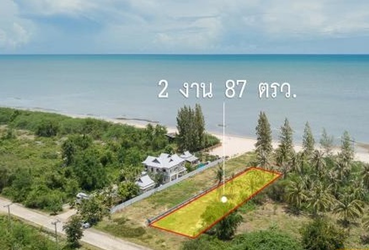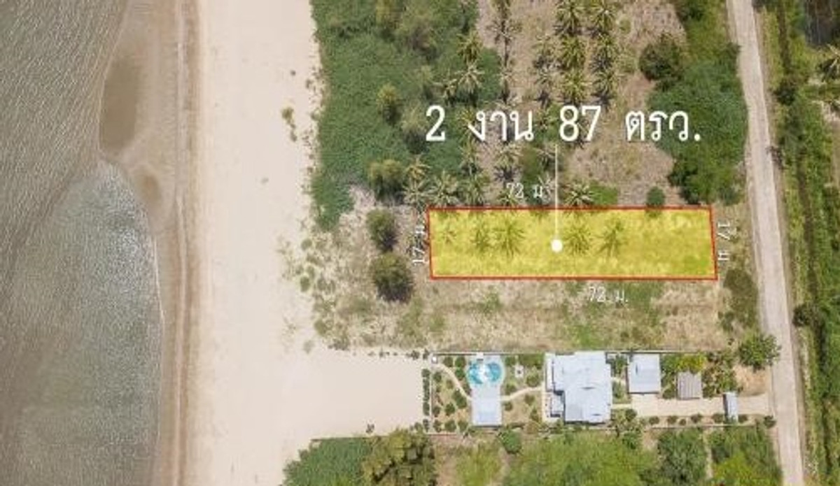 ขายที่ดินติดทะเลหาดกุยบุรี หาดทรายขาวสะอาด สงบ เหมาะสำหรับสร้างบ้านพักส่วนตัว หรือพูลวิลล่าให้เช่า ห่างจากถนนเพชรเกษม 6 กม.ปากทางเข้ามีตลาดและสถานีรถไฟกุยบุรี หาดเงียบและส่วนตัวมาก
