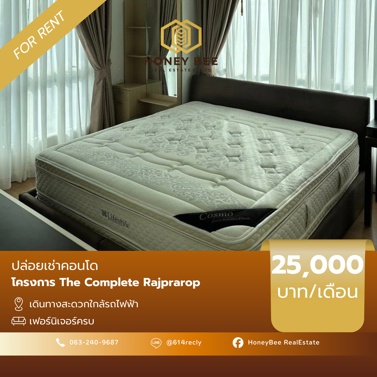 🚩 คอนโด The Complete Rajprarop รหัส BR02 ✅ ว่าง ค่าเช่า ✅✅ 25,000/เดือน ✅✅ 📍 ขนาด 65 ตร.ม. 📍 2 ห้องนอน 🛏 | 2 ห้องน้ำ 🚿 📍 ชั้น 24 📍 Free wifi เครื่องน้ำอุ่น 📍 เฟอร์นิเจอร์ครบ เครื่องซักผ้า ✔️ สัญญาขั้นต่ำ 1 ปี ✨ 📲 สนใจนัดชมคอนโด 😊 ติดต่อ แอดมิน 📞 : คลิกเพื่อดูเบอร์โทรติดต่อ 👉🏻 ลิงค์ Line : https://page.line.me/614recly ❇️ Line id : @614recly 🐝 Honey Bee Real Estate 🍯