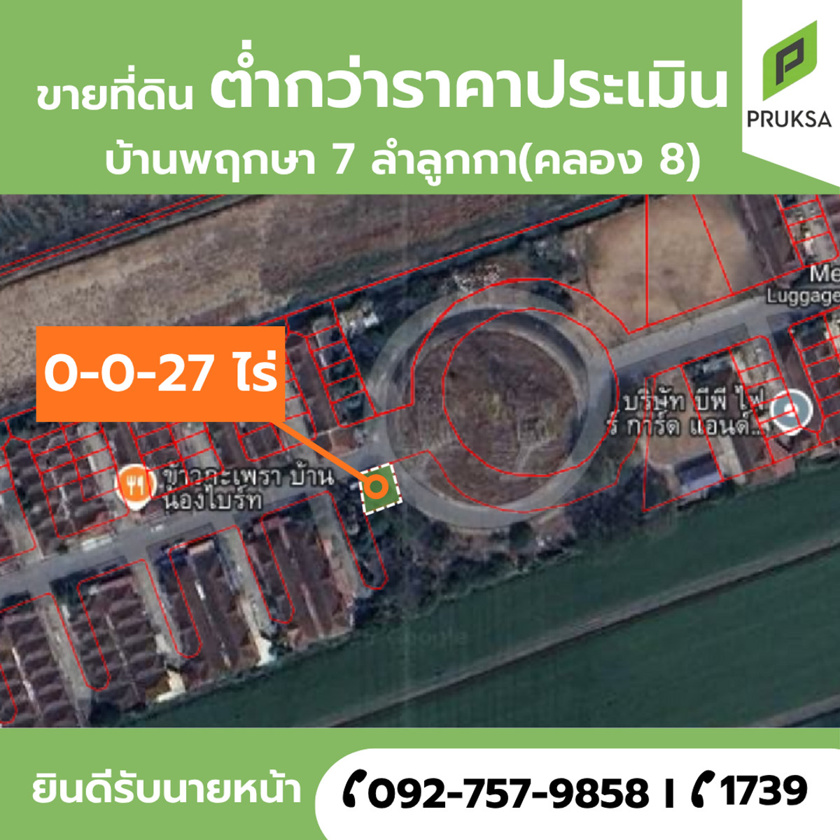 ขายด่วน ที่ดินราคาพิเศษ ต่ำกว่าราคาประเมินราชการ ในโครงการบ้านพฤกษา 7 ลำลูกกา