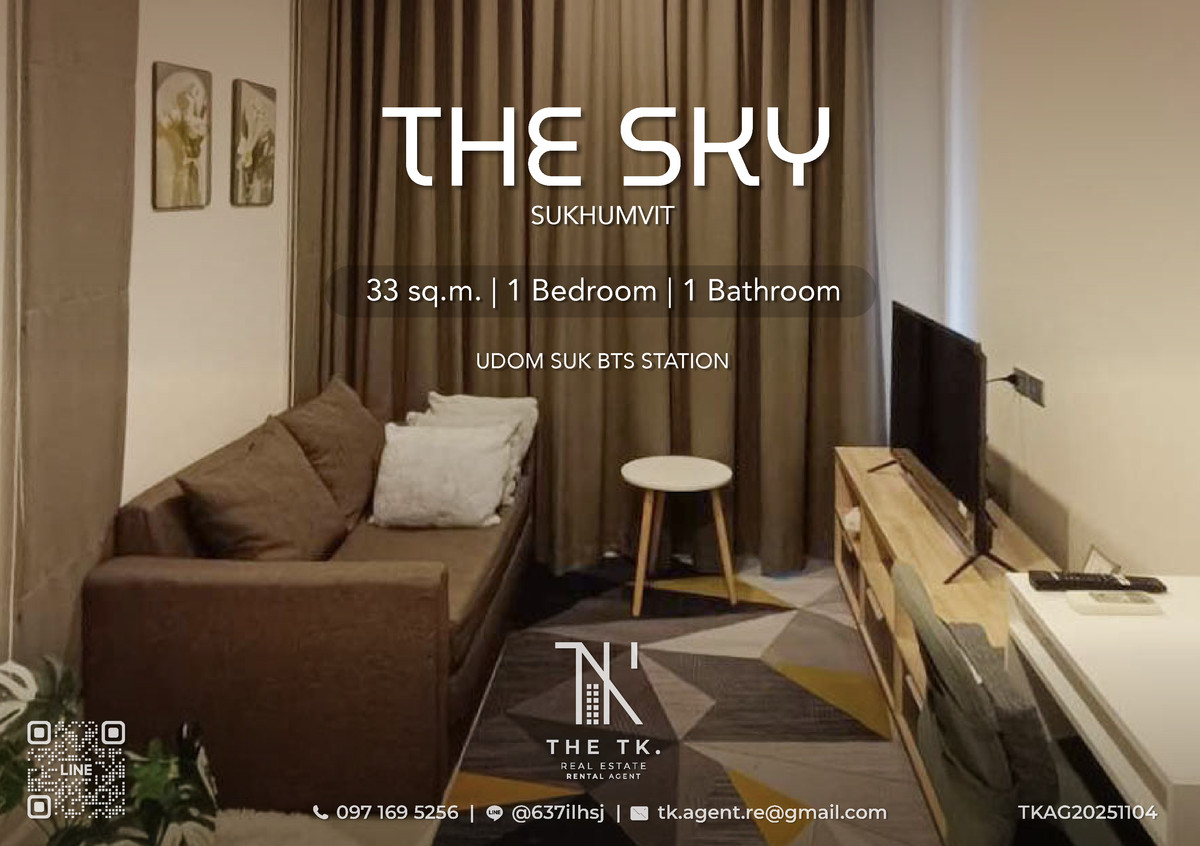 [THE TK.] ให้เช่าคอนโดราคาสุดคุ้ม แบ่งสัดส่วนน่าอยู่ ใกล้ BTS อุดมสุข "The Sky Sukhumvit" | ติดต่อคุณทีเค Line ID @637ilhsj Property Code…: TKAG20251104 Project……………..: The Sky Sukhumvit Monthly Rent……: THB 13,000 Unit Type………….: 1 Bedroom, 1 Bathroom Unit Size…………..: 33 sq.m. Floor………………...: 6 Building…………….: C Location……………: BTS อุดมสุข Fully furnished with electrical appliances. รายการเครื่องใช้ไฟฟ้า - ทีวี - ตู้เย็น - เครื่องทำน้ำอุ่น - เครื่องซักผ้า - ไมโครเวฟ - เครื่องปรับอากาศ - เตาไฟฟ้า พร้อมเครื่องดูดควัน รายการเฟอร์นิเจอร์ - โซฟา - ชั้นวาง TV - โต๊ะทำงาน พร้อมเก้าอี้ - ตู้เก็บของ และเคาน์เตอร์ครัวบิ้วอิน - เตียง - ตู้เสื้อผ้า - โต๊ะแต่งหน้า - โต๊ะรับประทานอาหาร 2 ที่นั่ง พร้อมประตูแบบ Digital Door Lock สิ่งอำนวยความสะดวก - ฟิตเนส - ห้องโยคะ - สระว่ายน้ำ - สวนหย่อม - ล็อบบี้ - กล้องวงจรปิด - เจ้าหน้าที่รักษาความปลอดภัย 24 ชม. - ลิฟต์โดยสาร - ประตูอาคารระบบ Keycard - รถกอล์ฟรับ-ส่ง สถานที่สำคัญใกล้เคียง - Max valu - 7-11 - 101 The Third Place - ตลาดอุดมสุข - Makro อุดมสุข - Bangkok Mall - The Phyll - โลตัสอ่อนนุช - ไบเทค บางนา - Century the movie plaza อ่อนนุช - Big C Extra อ่อนนุช - ตลาดอ่อนนุช - People Park - Habito mall - Central บางนา - Big C บางนา - ซีคอนสแควร์ - Gateway เอกมัย - เมเจอร์เอกมัย - พาราไดซ์ พาร์ค - HaHa mall - Emquartier - Emporium - Rain Hill - ตลาดนัดรถไฟ - รพ.กล้วยน้ำไท 2 - รพ.กล้วยน้ำไท - รพ.สุขุมวิท - รพ.ไทยนครินทร์ - Anglo Singapore International School - รร.พิพัฒนา - Wells International School - Bangkok Prep - BTS อุดมสุข - BTS ปุณณวิถี - จุดขึ้นทางด่วนเฉลิมมหานคร ด่านสุขุมวิท 62 - จุดขึ้นทางด่วนบูรพาวิถี - จุดขึ้นทางด่วนรามอินทรา-อาจณรงค์ สัญญาขั้นต่ำ 1 ปี ค่าเช่าล่วงหน้า 1 เดือน : 13,000 บาท ค่าประกันความเสียหาย 2 เดือน : 26,000 บาท นัดชมห้องจริงติดต่อ THE TK. REAL ESTATE RENTAL AGENT 📞 PHONE...: คลิกเพื่อดูเบอร์โทรติดต่อ 💬 LINE ID...: @637ilhsj (https://lin.ee/vrFUNkB) ✉️ EMAIL…..: คลิกเพื่อดูอีเมล *English please contact via Line ID only. ช่องทางการติดตาม TIKTOK….……: @the.tk.agent INSTAGRAM..: the.tk.agent YOUTUBE..….: @the.tk.realestateagent #คอนโดอุดมสุข #TheSkySukhumvit #คอนโดใกล้BTS #คอนโดให้เช่า #คอนโดเอกมัย #THETK #THETKRENTALAGENT