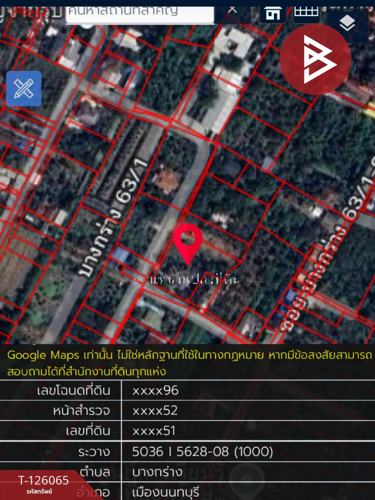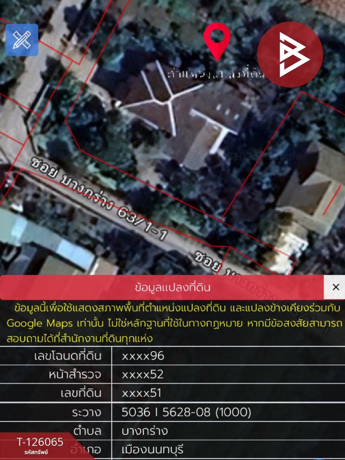 ที่ดิน : บางกร่าง นนทบุรี ที่ตั้ง : ต.บางกร่าง อ.เมืองนนทบุรี จ.นนทบุรี รหัสทรัพย์ : T-126065 ประเภท : ที่ดิน เนื้อที่ : 1 ไร่ 2 งาน 36.3 ตารางวา กว้าง : 12.00 เมตร ลึก : 30.00 เมตร รายละเอียดเพิ่มเติม : ที่ดินสวนบางกร่าง ทำเลดี เหมาะสำหรับปลูกบ้านพักอาศัย บรรยากาศดี เงียบสงบ เดินทางสะดวก จากแยกบางศรีเมืองเลี้ยวมาวัดบางกร่างประมาน 2 กม. เข้าจากทางหน้าวัดมาจุดที่ดินประมาณ 700 เมตร ถนนสาธารณะหน้าบ้านกว้าง 6 เมตร ราคา : 12,000,000 บาท ลิงค์แผนที่ : https://maps.google.com/?q=13.83341190,100.45878697 **เรามีบริการจัดสินเชื่อให้ฟรี พร้อมยินดีให้คำปรึกษา มีให้เลือกทุกธนาคาร** **พร้อมอัตราดอกเบี้ยพิเศษ และ วงเงินสูงสุด 90-100% ของราคาประเมิน** สนใจสอบถามข้อมูลเพิ่มเติม หรือ นัดชมบ้านได้ที่ Tel : คลิกเพื่อดูเบอร์โทรติดต่อ บี (รหัสตัวแทน 3001) Line ID : คลิกเพื่อดูเบอร์โทรติดต่อ Callcenter : คลิกเพื่อดูเบอร์โทรติดต่อ สนใจดูทรัพย์อื่นๆ เพิ่มเติม มากกว่า 3,000 รายการ www.tb.co.th The Best Property Agent CO,.LTD. ผู้นำด้านธุรกิจนายหน้า ตัวแทนอสังหาริมทรัพย์ครบวงจร ด้วยความเป็นมืออาชีพ ใช้เทคโนโลยี และ นวัตกรรมที่สร้างสรรค์ เพื่อส่งมอบบริการที่ดีที่สุดเพื่อคุณ ให้บริการด้าน ซื้อ ขาย เช่า อสังหาริมทรัพย์