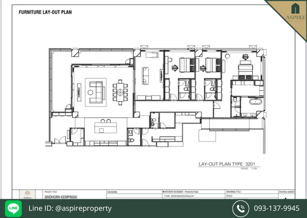 [ขายและให้เช่า] เดอะ เรสซิเดนซ์ แอท สินธร เคมปินสกี้ เพนท์เฮ้าส์ รหัสทรัพย์: TP คลิกเพื่อดูเบอร์โทรติดต่อ Leasehold • ขนาด 339 ตารางเมตร • 3+1 ห้องนอน 4 ห้องน้ำ • ชั้นสูง • เฟอร์นิเจอร์ครบ • สิ่งอำนวยความสะดวก สวนหย่อม สนามเด็กเล่น ฟิตเนส สระว่ายน้ำ ซาวน่าและห้องอบไอน้ำ CCTV และ รปภ. 24 ชม. • ห่างจาก BTS ราชดำริ ประมาณ 680 เมตร ราคาขาย 159 ล้านบาท ราคาเช่า 700,000 บาท/เดือน For viewing, contact Tel. : คลิกเพื่อดูเบอร์โทรติดต่อ WhatsApp : คลิกเพื่อดูเบอร์โทรติดต่อ Line ID : @aspireproperty Email : คลิกเพื่อดูอีเมล Aspirethailand.com