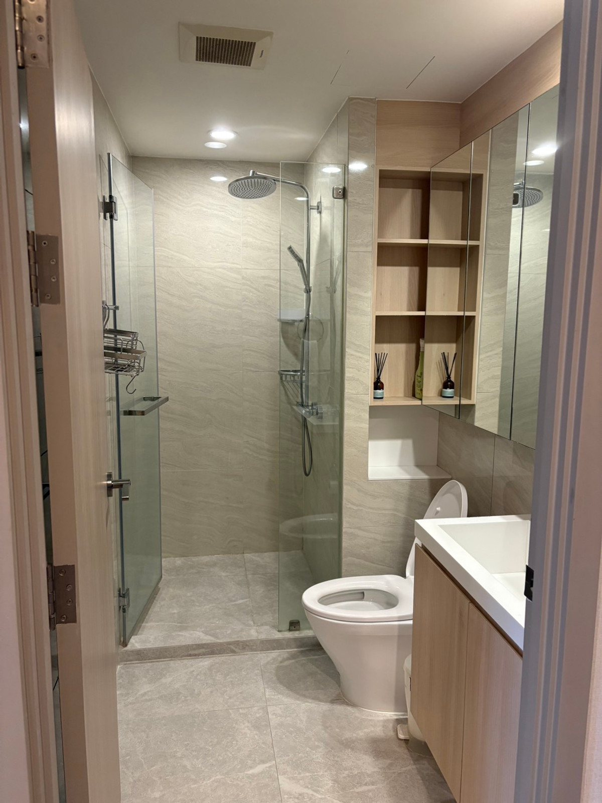 Whizdom Connect Sukhumvit Size: 38.6 sq m, 36th Floor *Corner room Selling Price: 6.59 M. thb (free transfer fee) Room details (Fully renovated + furnished) - Bedroom + Shower room - Living room + Working room - Kitchen Furniture - Bed - Sofa (leather, electric recliner) - Office chair Electric Appliances - TV - Washing machine - Dryer machine - Microwave - Fridge - Hob + hood - 3 Air-cons Additional Room Details (renovation) - Flooring: SPC Lamett, a premium brand from Belgium - Aluminum glass door: Aluinch - Bathroom tiles: Casa Rocca - Curtains: Dust-resistant fabric + wallpaper by Smile Design - Mattress: Omazz - Sofa: Jas, size L, genuine leather with electric recline function - Laminate: Lamitak from Singapore - Shower set: Hansgrohe + accessories from Grohe