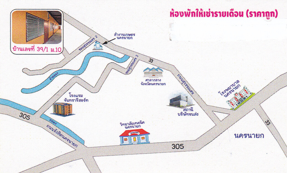 ให้เช่าห้องพักรายเดือนราคาถูก ซ.สุวรรณศร 2 (ข้างสนง.เกษตร) ต.พรหมณี อำเภอเมืองนครนายก