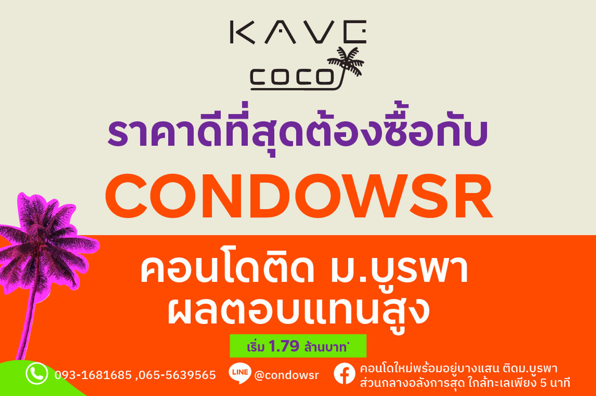 🌞𝗞𝗔𝗩𝗘 𝗖𝗢𝗖𝗢 𝗕𝗔𝗡𝗚𝗦𝗔𝗘𝗡 ผ่อนเริ่ม 4,900 บ./ด.* ก็ได้อยู่คอนโดใหม่บางแสน วิวสวย ฟังก์ชันครบ! 📞093-1681685 | 💚 LINE: @wsrcondo