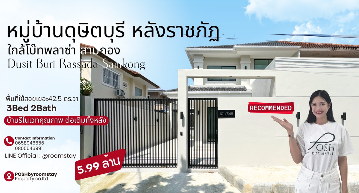 อีกหนึ่งหลังที่เราแนะนำ กับบ้านรีโนเวทคุณภาพ ต่อเติมทั้งหลัง แบบบ้านแฝด2ชั้น พื้นที่ใช้สอยเยอะ หมู่บ้าน ดุษิตบุรี บนทำเลรัษฎา - สามกอง หลังมหาวิทยาลัยราชภัฏ ทางเข้าโครงการหมู่บ้านบรรยากาศดี แวดล้อมไปด้วยอำนวยความสะดวกมากมายเช่นร้านอาหาร ร้านสะดวกซื้อ โรงแรม ใกล้ซุปเปอร์ชิปเพียงแค่ไม่เกิน5นาที ใกล้โบ๊ทพลาซ่า - สามกอง บายพาส รีโนเวทใหม่ในสไตล์ Modern และดูโดนเด่นด้วยกำแพงหน้าบ้านสูง ให้ความรู้สึกความเป็นส่วนตัวเหมาะสำหรับการพักผ่อน คัดสรรวัสดุคุณภาพ จัดวาง Layout ของบ้านไว้ได้อย่างตัว บริเวณหน้าบ้านสามารถแบ่งโซนเป็นห้องทำงาน ต่อเติมพื้นที่บริเวณหลังบ้านและข้างบ้าน มาพร้อมพื้นที่ห้องครัว ครัวพร้อมใช้งานพร้อมเตาแก๊ส+ เครื่องดูดควัน ลานพื้นที่ใช้สอยข้างบ้าน ถังเก็บน้ำขนาดใหญ่ เครื่องปรับอากาศสี่ทิศทางภายในห้องนอนมาสเตอร์ ปูพื้นไม้ SPC แบบบ้าน : บ้านแฝด2ชั้น พื้นที่ 42.5 ตร.วา 3ห้องนอน 2ห้องน้ำ ┏━━━━━━━━━━━━━━━━━━┓ 🏷️ 5,990,000 บาท ┗━━━━━━━━━━━━━━━━━━┛ Highly recommended! A quality fully renovated semi-detached two-storey house with spacious usable area. Dusitburi Village Located in the Rassada–Samkong area, behind Phuket Rajabhat University. The project entrance offers a pleasant atmosphere and is surrounded by various conveniences such as restaurants, convenience stores, and hotels. Only 5 minutes from Supercheap, and close to Boat Plaza – Samkong and the Bypass Road. Newly renovated in a modern style, highlighted by a tall front wall that provides privacy and a relaxing atmosphere. High-quality materials have been carefully selected. The house layout is thoughtfully designed. The front area can be converted into a home office. Extended spaces at the back and side of the house include: • A fully equipped kitchen with gas stove and range hood • A side yard for additional usage • A large water tank • A four-way air conditioner in the master bedroom • SPC wood flooring throughout House type: Semi-detached 2-storey house Land size: 42.5 sq.wah (170 sq.m.) Features: 3 bedrooms, 2 bathrooms ⚫️ #บริษัทพอชบายรูมสเตย์พร็อพเพอร์ตี้ 🕳️ บริการเช็คเครดิต • คำนวณความสามารถในการกู้ • คำนวณอัตราผ่อนแต่ละเดือน 🕳️ We excel in sales and adeptly manage the trading operations for international clientele ➖➖➖➖➖➖➖➖➖➖➖➖➖➖➖➖➖ ☎️ More information, Please do not hesitate to contact us คลิกเพื่อดูเบอร์โทรติดต่อ คุณแนน คลิกเพื่อดูเบอร์โทรติดต่อ K.Ping (eng.) Line: @roomstay สอบถามข้อมูลทาง LINE สะดวกกว่าค่ะมีแอดมินดูแล https://lin.ee/aLaoTiw [ POSHBYROOMSTAYPROPERTY.CO.,LTD ] 📌 ชมรีวิวบ้านสวยๆได้ทาง https://www.tiktok.com/@poshbyroomstay?_t=8kTog2ffG59&_r=1