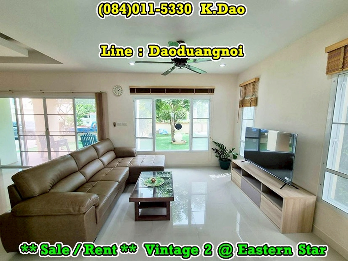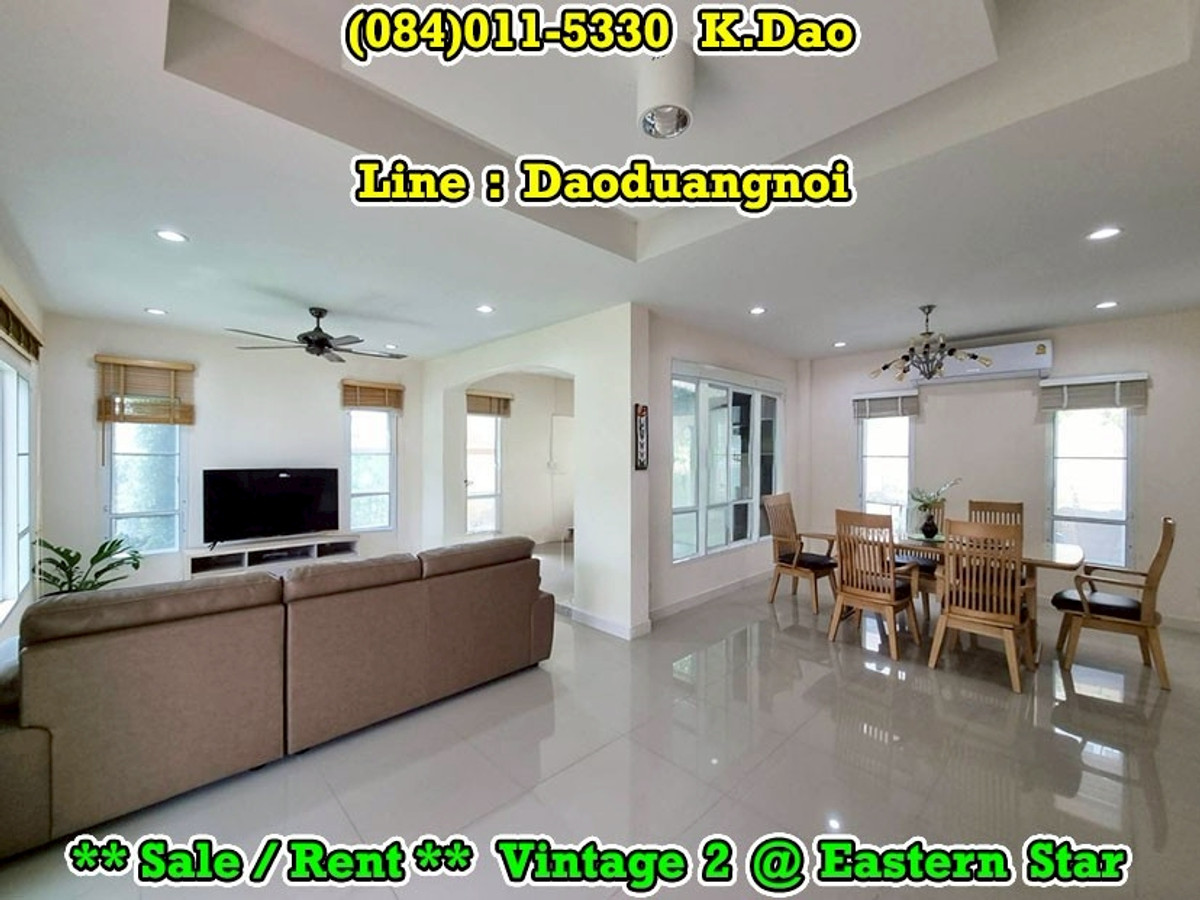 +++ Sale / Rent +++ Ban Chang Vintage 2, Eastern Star Golf Course 2-Storey-House with Extension Land Area 107.2 Sqr.wah 3 Bedrooms 3 Bathrooms 1 Long and Big Balcony 1 European Kitchen with Modern Style 1 Living Room 1 Office Area 1 Dining Area 1 Storage Room 1 Laundry Room 2 Parking Fully Furnished Beautiful Garden *** Rental Fee 30,000 Baht *** +++ Sales Price 7 MB +++ High security, 24-hour-security guard Entering and exiting the gate of Vintage 2 with the keycard. Great Location, Vintage 2 is near Eastern Star Park's gate, Location : https://maps.app.goo.gl/9PHMXhxPsieQkYA96?g_st=il Connecting to the road which is direct to Phla Beach and Motorway Convenient for a journey to Bangkok and Pattaya via Motorway Contact for buying or renting with Dao. Tel. : (084)011-5330 Line ID : Daoduangnoi WhatsApp : คลิกเพื่อดูเบอร์โทรติดต่อ https://www.facebook.com/ThePastelProperty