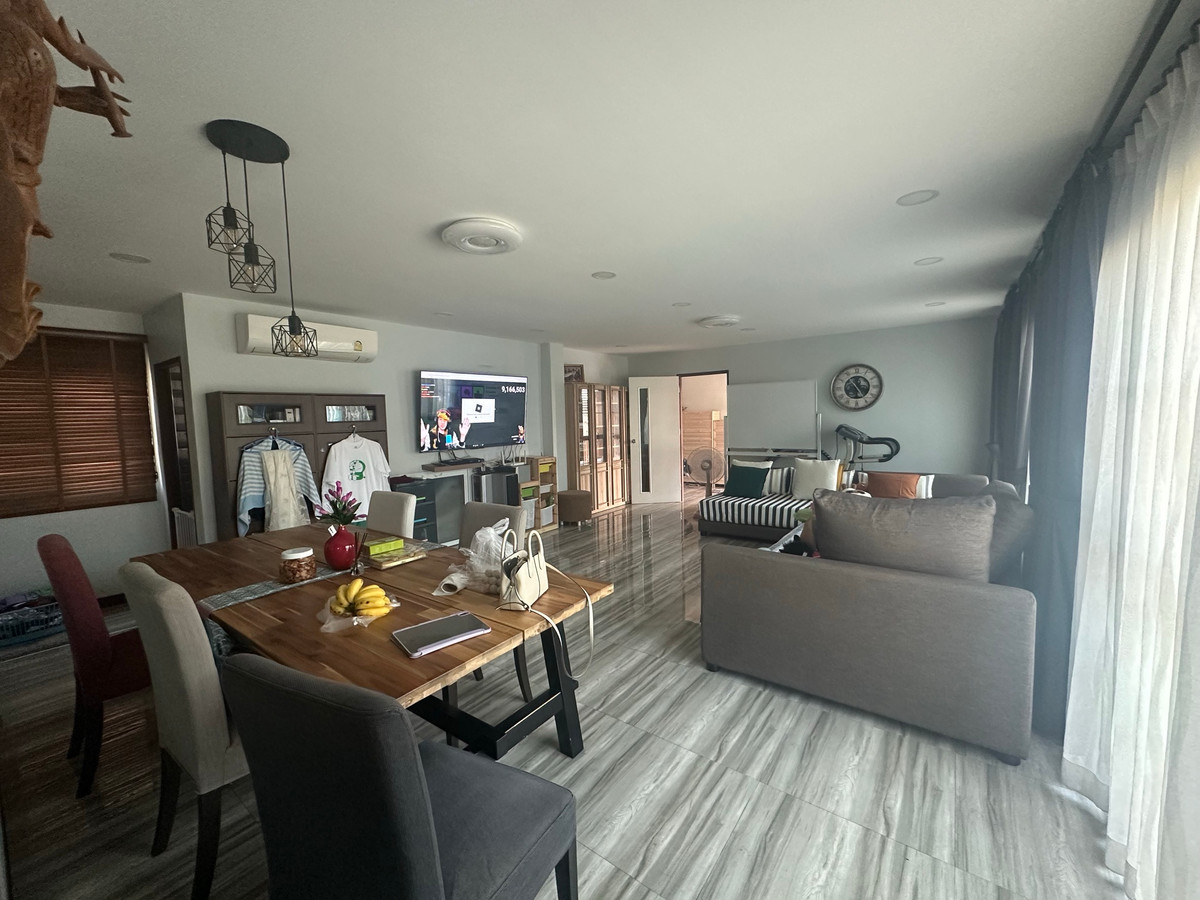 ขายบ้านเดี่ยว 121 ตรว. อายุบ้าน 6 ปี มีบ้าน 2 หลังในพื้นที่เดียวกัน หลังใหญ่พื้นที่ใช้สอยรวมซักล้างและที่จอดรถประมาณ 340ตรม. หลังเล็กพื้นที่ประมาณ 40 ตรม. ลักษณะบ้านเป็นบ้าน 2 ชั้น ยกพื้น 1 เมตร จอดรถระเบียงชั้น1 ได้ 2 คันในร่ม มี2 ห้องนอนใหญ่ 1 ห้องนอนเล็ก ห้องพระสามารถกั้นเพิ่มเป็นอีก 1 ห้องนอนได้ 1 ห้องรับแขก ใหญ่ 1 ห้องครัวใหญ่ ห้องซักผ้า 1 ห้อง ห้องน้ำ 3 ห้อง และระเบียงซักล้างใหญ่ ห้องนอนใหญ่ตู้เสื้อผ้ากระจกบิ้วอินทั้ง 2 ห้อง ฯลฯ บ้านหลังเล็ก แต่งแนวคอนโดพร้อมอยู่ 1 ห้องนอน 1 ห้องน้ำ 1 ห้องรับแขก+ เคาน์เตอร์ครัว