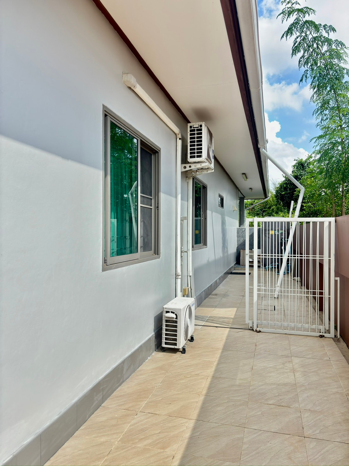 ให้เช่า บ้านเดี่ยว ชั้นเดียว มีสระว่ายน้ำ ​3 ห้องนอน 2 ห้องน้ำ 1 ที่จอดรถในร่ม พื้นที่ใช้สอย 150 ตรม. ​ เฟอร์นิเจอร์-เครื่องใช้ไฟฟ้าครบ พร้อมเข้าอยู่ ติดแอร์ทุกห้อง: 5 เครื่อง ครัวสไตล์ยุโรป-ในบ้าน คร
