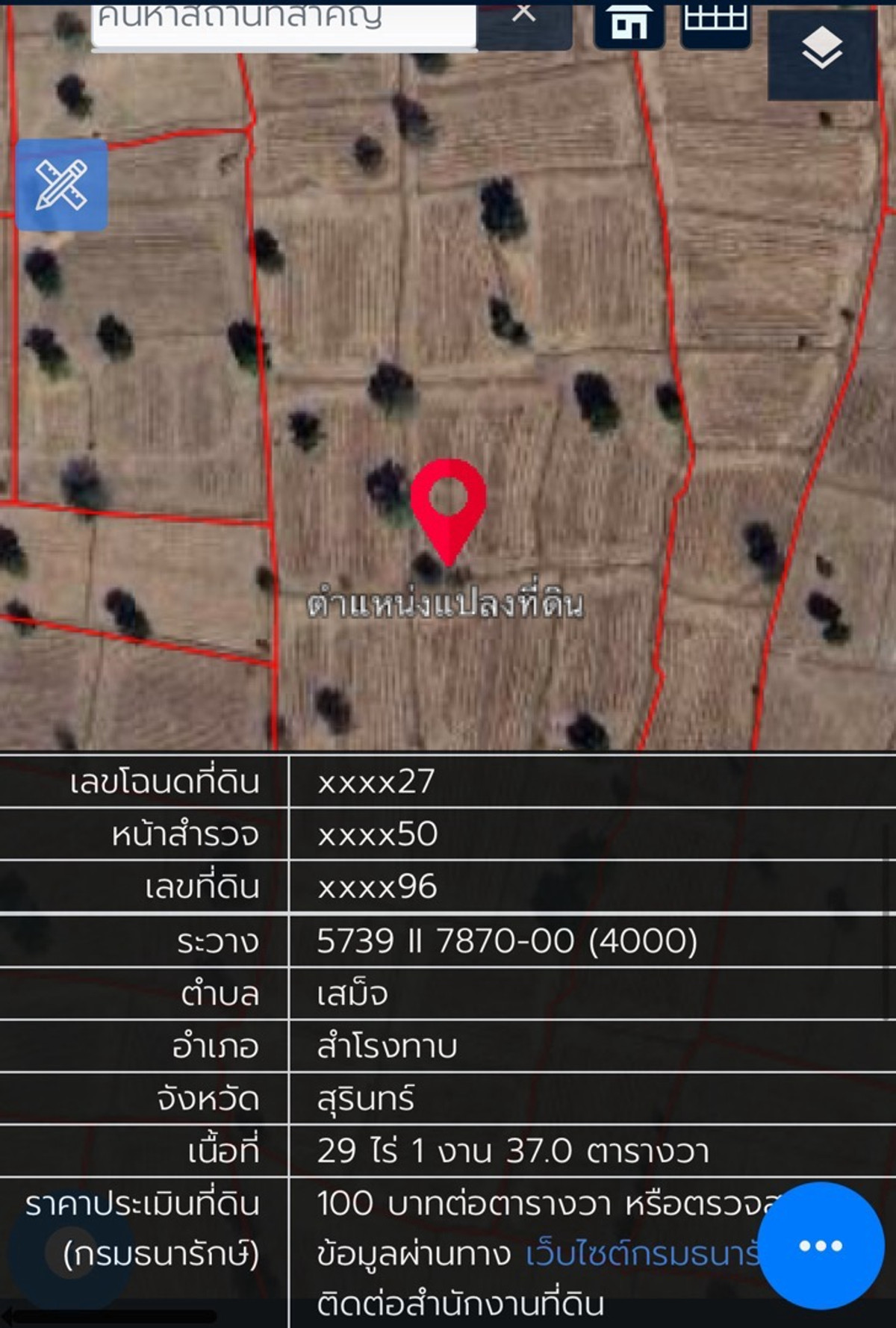 🏞️ vายที่ดิน อำเภอสำโรงทาบ จังหวัดสุรินทร์ เนื้อที่ 29-1-37 ไร่ เพียงราคาไร่ละ 300,000 เท่านั้นครับ ถูกกว่าแปลงอื่นครับ เป็นโฉนดครุฑแดง โฉนดลอยครับ พื้นที่บริเวณนั้นจะทำโซลาร์ฟาร์มกันเยอะมาก 👉🏻 สนใจติ