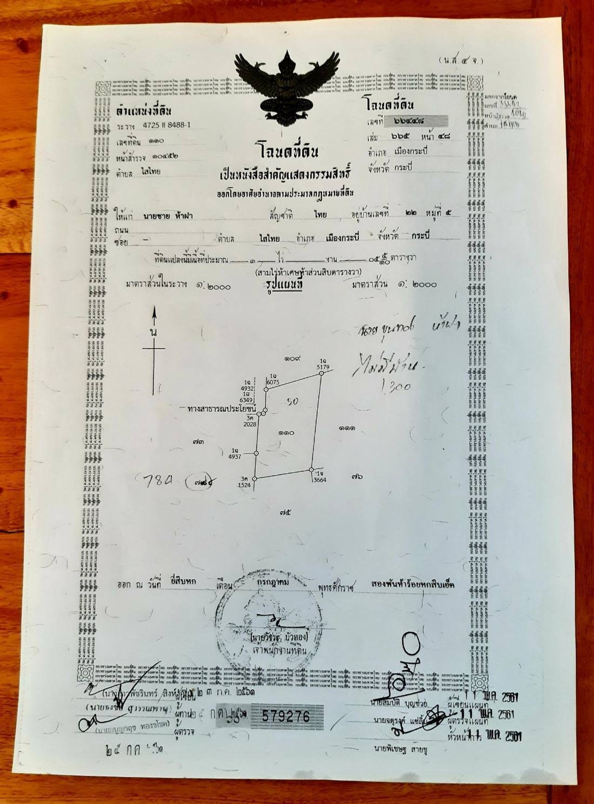 ตั้งอยู่หมู่ 5 ตำบลไสไทย อำเภอเมือง จังหวัดกระบี่ จำนวน 3 ไร่ เอกสาร น.ส 4 ราคาไร่ละ 6 ล้านบาท รวม 18 ล้านบาท ติดถนนสาธารณะ น้ำไฟเข้าถึง ไปอ่าวนาง5-10 นาที ท่าเรืออ่าวน้ำเมา 5 นาที เข้าเมือง 15 นาที เ