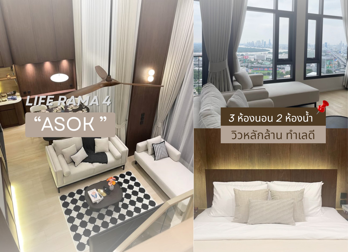 ✨ Life Rama 4 - Asoke | วิวเจ้าพระยาแบบพาโนรามา 🏙️ คอนโดใหม่ 3 ห้องนอน 2 ห้องน้ำ 91 ตร.ม. ชั้น 34 จาก 36 เพดานสูงโปร่ง ห้องนั่งเล่นสูง 4.4 เมตร ห้องนอนใหญ่สูง 3 เมตร ตกแต่งครบ สไตล์โมเดิร์นคอนเทมโพราร