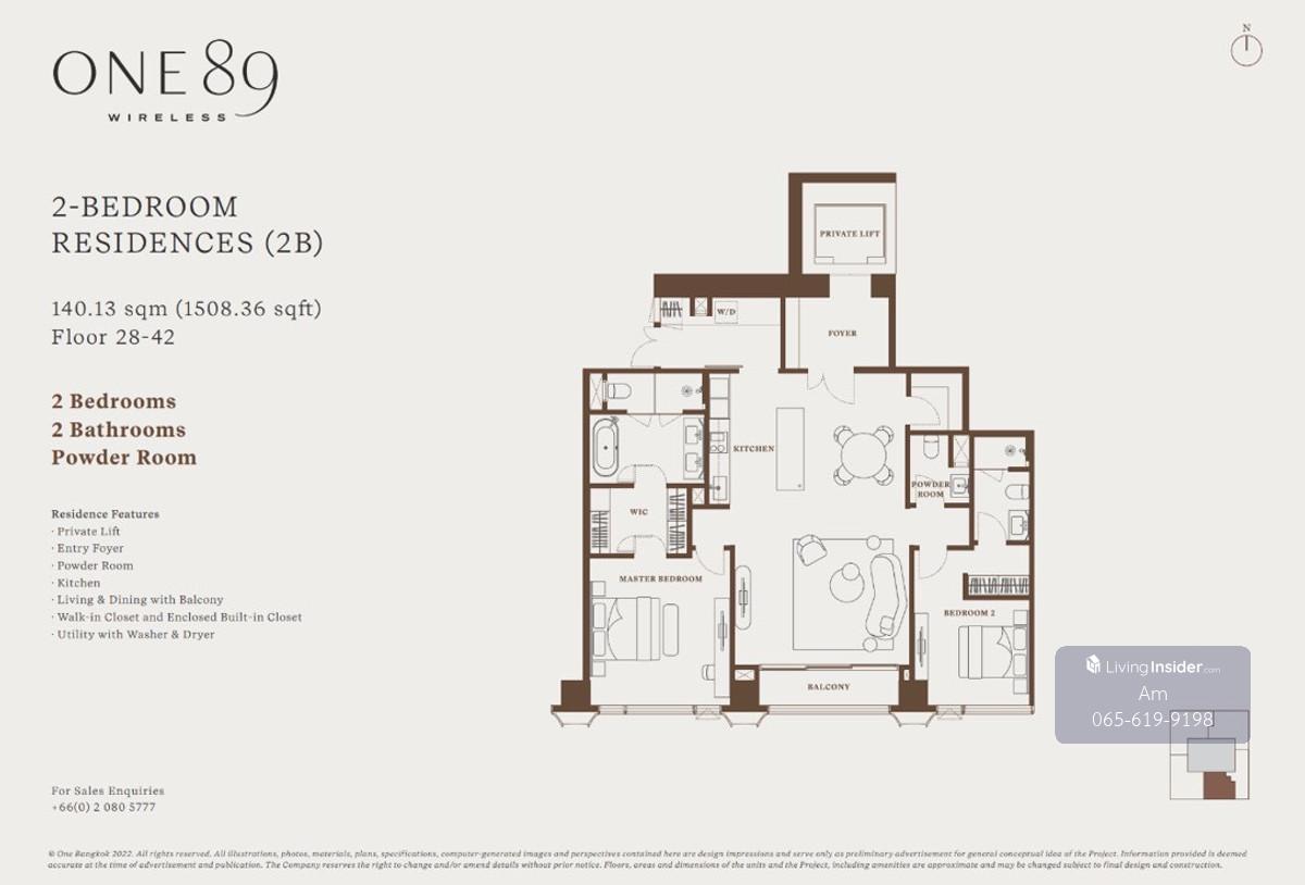 One89 Wireless: 2bed 3bath 141sqm. Sell: 105,000,000 Rent: 490,000/mth. Am: 0656199198