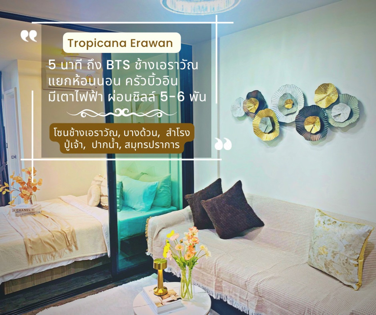 🌟มินิมอล สไตล์ Zen คิมูจิ สวยหรู ใกล้ #BTSช้างเอราวัณ แค่ #ล้านกลาง ปล่อยเช่าโคตรคุ้ม อยู่เองผ่อนสบาย 5-6 พัน รายได้รวม 17,000+ กู้ได้ #ฟรีดาวน์ พร้อมอยู่ . 💎Tropicana Erawan💎ตรงปก 1000% #มือสองแต่งสวย ห้อง 1 นอน 25 ตรม. ชั้น 5 วิวโปร่ง location : https://maps.app.goo.gl/Mjfo31AN9wNna7pa9 . 💥Facility สไตล์ ECO Green สัมผัสธรรมชาติ มีสระว่ายน้ำ Infinity Edge Pool มองเห็นวิวเมือง Sky Fitness และ Sky Garden วิวเมือง ร่มรื่น อาการศดี Digital Door Lock ทุกห้อง มีลำโพง Bluetooth ติดเพดาน ระบบรักษาความปลอดภัย กล้อง CCTV รปภ 24 ชม. 🌟เราบริการยื่นกู้ให้ฟรี จนถึงวันโอน #พกเครดิตดีมาพอ มัดจำจอง ล๊อกห้อง 5 พัน-1หมื่นบาท ❌ ไม่ผ่านยินดีคืนเงิน ❌ . 🔖5 นาทีถึง #BTSช้างเอราวัณ (800ม.)ใกล้รถไฟฟ้า เดินได้ 🔖ใกล้บริษัท Honda, Toyota, TOA, Panasonic ปล่อยเช่าง่าย 🔖ใกล้ทางด่วน วงแหวนรอบนอก กาญจนาภิเษก 🔖ใกล้อิมพีเรียล เมเจอร์สำโรง บิ๊กซี โรบินสัน ใกล้ 7-11 ปากซอยบางด้วน 🔖เหมาะกับคนทำงานในโซนช้างเอราวัณ, ปู่เจ้า, สำโรง, บางด้วน, ปากน้ำ . ⚡️ห้องสวย พร้อมอยู่ ลากกระเป๋าอยู่ได้เลย ประกอบดังนี้ เตียง+ที่นอน 5 ฟุต, แอร์ 2 ตัว, โซฟา, โต๊ะวางทีวีบิ้วอิน โต๊ะกลาง, โต๊ะวางทีวี, ตู้เสื้อผ้าบิ้วอิน, ชุดครัว+ชั้นลอยบิ้วอิน เตาไฟฟ้าบิ้วอิน, ตู้เย็น, แถมติดตาข่ายกั้นนก . 🍀เตรียมเอกสารยื่นกู้ อย่างละ 3 ชุด (เผื่อแบงค์อื่นด้วย) 1) สำเนาทะเบียนบ้าน 2) สำเนาบัตรปชช. 3) สำเนาสลิปย้อนหลัง 6 เดือน 4) สำเนาสเตทเม้นย้อนหลัง พร้อมหน้าบุคแบงค์ 6 เดือน 5) นส. รับรองเงินเดือน 6) หนังสือรับรองการหักภาษี ณ ที่จ่าย (50 ทวิ) <ถ้ามี> 7) เอกสารแสดงเงินออม ทรัพย์สินปลอดภาระ <ถ้ามี> . #ห้องสวยและถูกมักไปไวเสมอ #ย่านช้างเอราวัณ #ย่านสมุทรปราการ #Tropicanaerawan . 📱Bowie คลิกเพื่อดูเบอร์โทรติดต่อ, คลิกเพื่อดูเบอร์โทรติดต่อ Inbox : m.me/AWP2495 Line : https://line.me/ti/p/iUiCcE4TkK จะเม้นว่า"สนใจ"ไว้ใต้โพส หรือ inbox มาที่เพจเลยก็ได้คับ . . #ห้องสวยและถูกมักไปไวเสมอ #คอนโดมือสอง #คอนโดฟรีดาวน์ #คอนโดใกล้BTS #คอนโดใกล้MRT #คอนโดพร้อมอยู่ #คอนโดใกล้รถไฟฟ้า #คอนโดออริจิ้น #OriginCondo