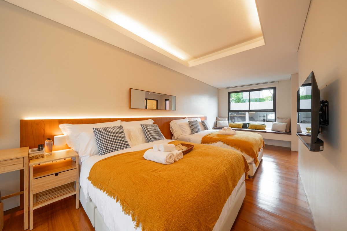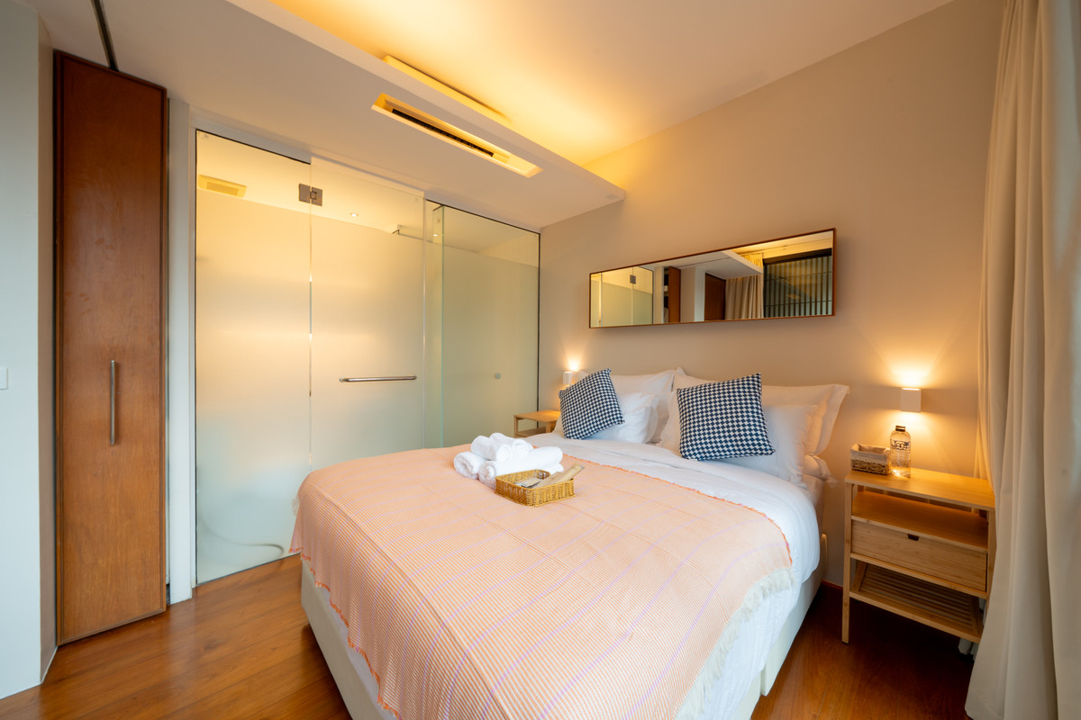 ขนาด 3 ห้องนอน 4 ห้องน้ำ พื้นที่ใช้สอยประมาณ 100 ตร.ม. สระว่ายน้ำ เฟอร์นิเจอร์ครบทั้งหลัง (Fully Furnished)