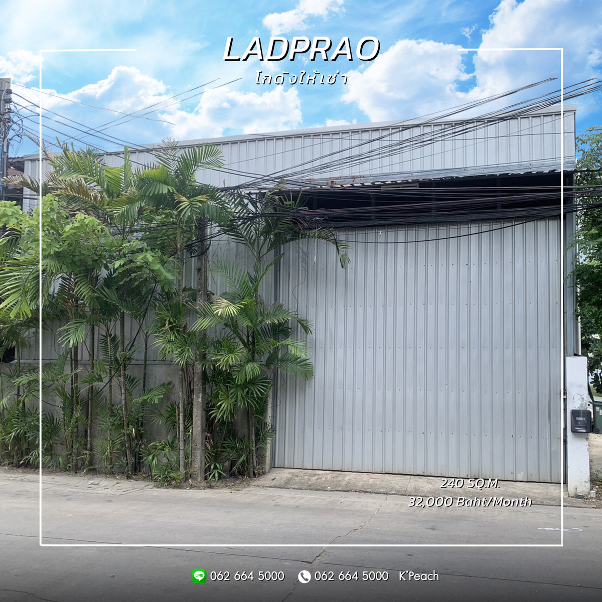 ให้เช่า โกดัง 240 ตร.ม.💥 ลาดพร้าว101 เลียบด่วนรามอินทรา โยธินพัฒนา นวมินทร์ บางกะปิ ใกล้ทางด่วน📍เหมาะเป็นศูนย์กระจายสินค้า คลังเก็บสินค้า สต๊อกสินค้า สตูดิโอ สำนักงาน สโตร์ ธุรกิจออนไลน์ ธุรกิจขนส่ง ธุรกิจอีคอมเมิร์ซ ธุรกิจจัดงานอีเว้นท์ / Warehouse / Fulfillment / Studio / Store / Storage / Office / Drop shipping / Logistics / E-commerce / Event Organizer 💫 . รายละเอียด🌈 - พื้นที่โกดัง 240 ตร.ม. - ไม่มี Office สามารถทำเพิ่มได้ - มีพื้นที่ชั้นลอย - หน้าโกดังจอดดรถได้ 2 คัน - รถ 6 ล้อเข้า-ออกได้ 🚛 . เชื่อมต่อถนนหลายสาย🛣️ ถนนลาดพร้าว , ถนนวมินทร์ , ถนนประดิษฐ์มนูธรรม , ถนนประเสริฐมนูกิจ . เงื่อนไขการเช่า ✨ - ราคาเช่า 32,000 บาท/เดือน - เงินประกัน 3 เดือน + ล่วงหน้า 1 เดือน - สัญญา 3 ปี . โกดังลาดพร้าว เลียบด่วนรามอินทรา เกษตรนวมินทร์ ทาวน์อินทาวน์ ลาดพร้าววังหิน - ขนาด 55 ตร.ม. 28,000 บาท/เดือน (มีออฟฟิศ) - ขนาด 95 ตร.ม. 36,000 บาท/เดือน (มีออฟฟิศ) - ขนาด 150 ตร.ม. 30,000 บาท/เดือน - ขนาด 240 ตร.ม. 32,000 บาท/เดือน - ขนาด 240 ตร.ม. 47,000 บาท/เดือน - ขนาด 250 ตร.ม. 48,750 บาท/เดือน (มีออฟฟิศ) - ขนาด 300 ตร.ม. 70,000 บาท/เดือน (มีออฟฟิศ 2 ชั้น) - ขนาด 400 ตร.ม. 80,000 บาท/เดือน (มีออฟฟิศ) - ขนาด 423 ตร.ม. 65,000 บาท/เดือน - ขนาด 490 ตร.ม. 66,000 บาท/เดือน (มีออฟฟิศ) - ขนาด 500 ตร.ม. 75,000 บาท/เดือน - ขนาด 500 ตร.ม. 80,000 บาท/เดือน (มีออฟฟิศ) - ขนาด 500 ตร.ม. 100,000 บาท/เดือน - ขนาด 555 ตร.ม. 80,000 บาท/เดือน (มีออฟฟิศ 2 ชั้น) - ขนาด 549 ตร.ม. 150,000 บาท/เดือน (มีออฟฟิศ 2 ชั้น) - ขนาด 600 ตร.ม. 120,000 บาท/เดือน (มีออฟฟิศ) - ขนาด 650 ตร.ม. 90,000 บาท/เดือน (มีออฟฟิศ) - ขนาด 750 ตร.ม. 112,500 บาท/เดือน - ขนาด 900 ตร.ม. 144,000 บาท/เดือน (มีออฟฟิศ) - ขนาด 1,000 ตร.ม. 150,000 บาท/เดือน - ขนาด 1,200 ตร.ม. 240,000 บาท/เดือน (มีออฟฟิศ) - ขนาด 1,500 ตร.ม. 225,000 บาท/เดือน . ☎️สนใจโกดังทำเลไหน แจ้งความต้องการได้เลยนะคะ / ยินดีรับฝากเช่าโกดัง Tel : คลิกเพื่อดูเบอร์โทรติดต่อ K.พีช Line : https://line.me/ti/p/fNUQR-TcMn Page : https://www.facebook.com/Peach.LandSun?locale=th_TH