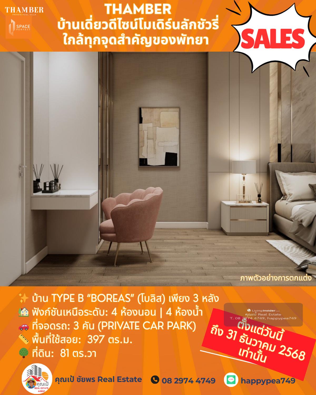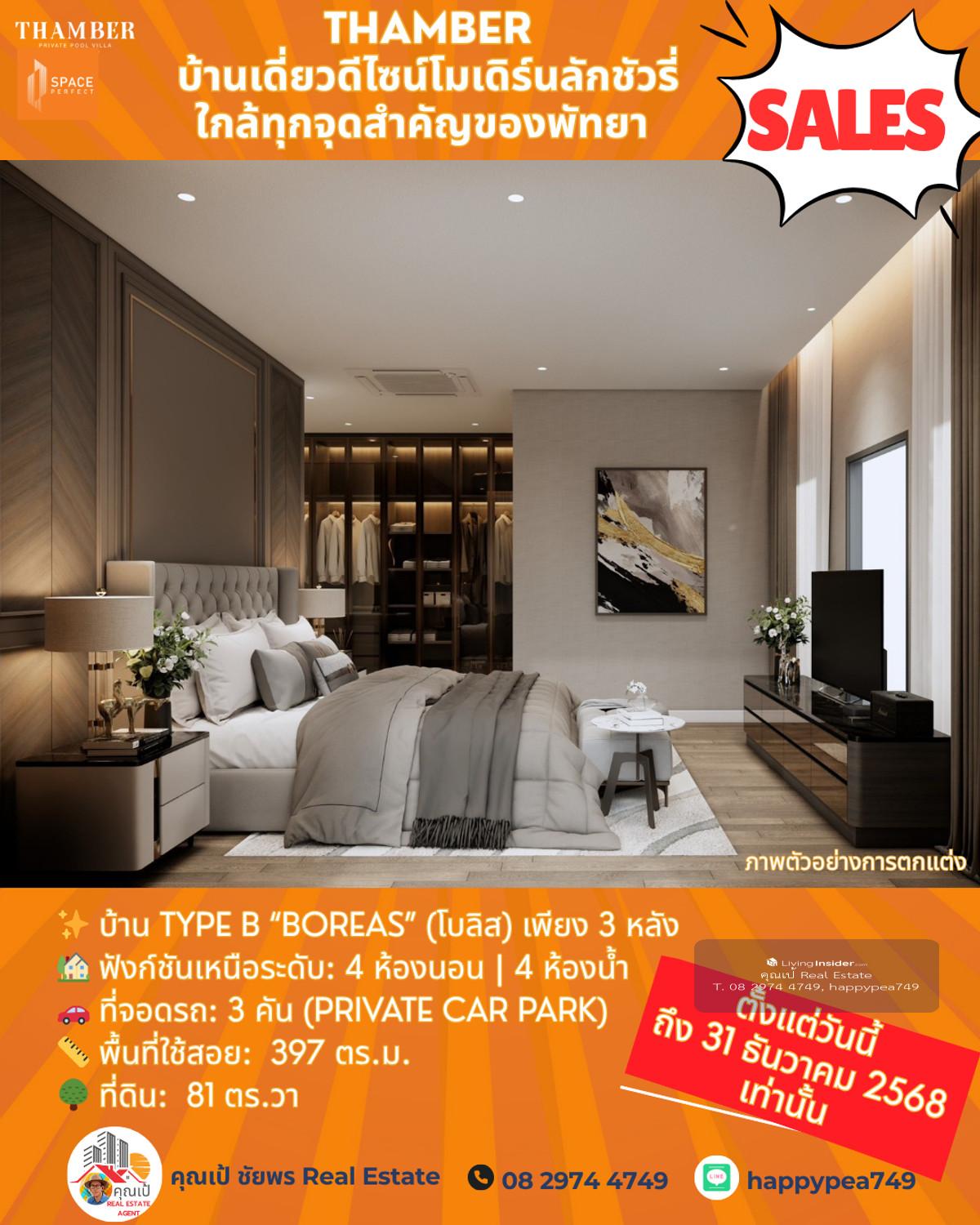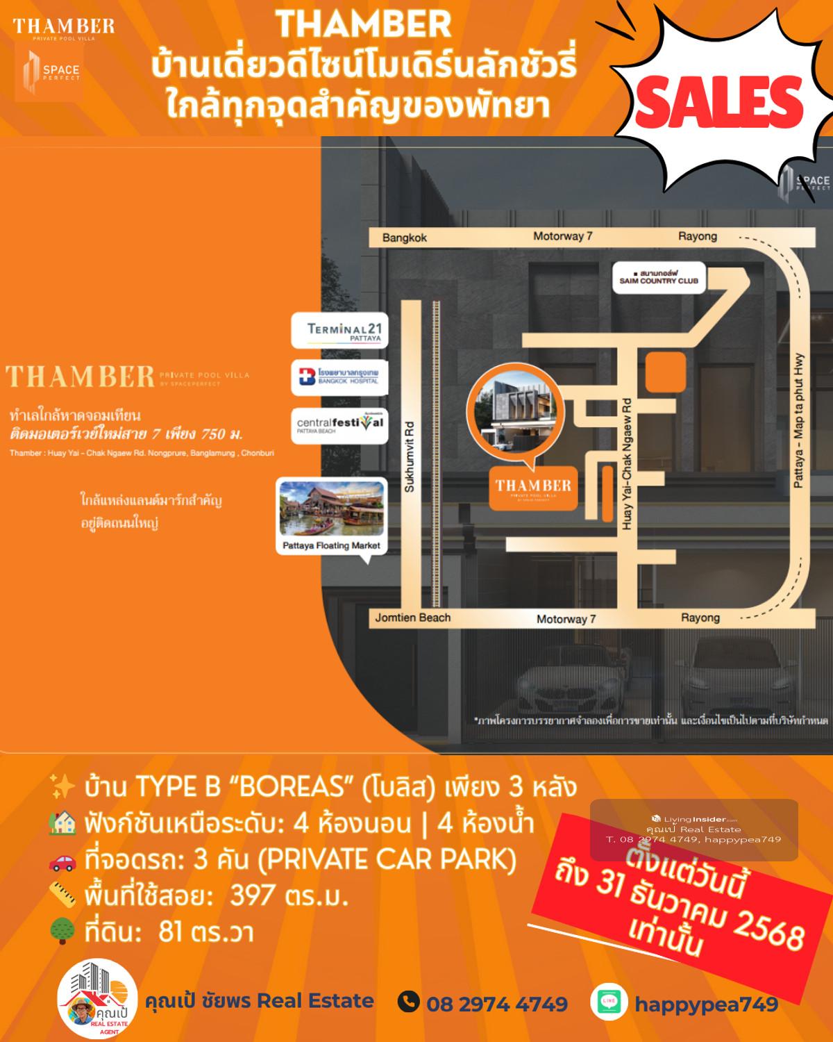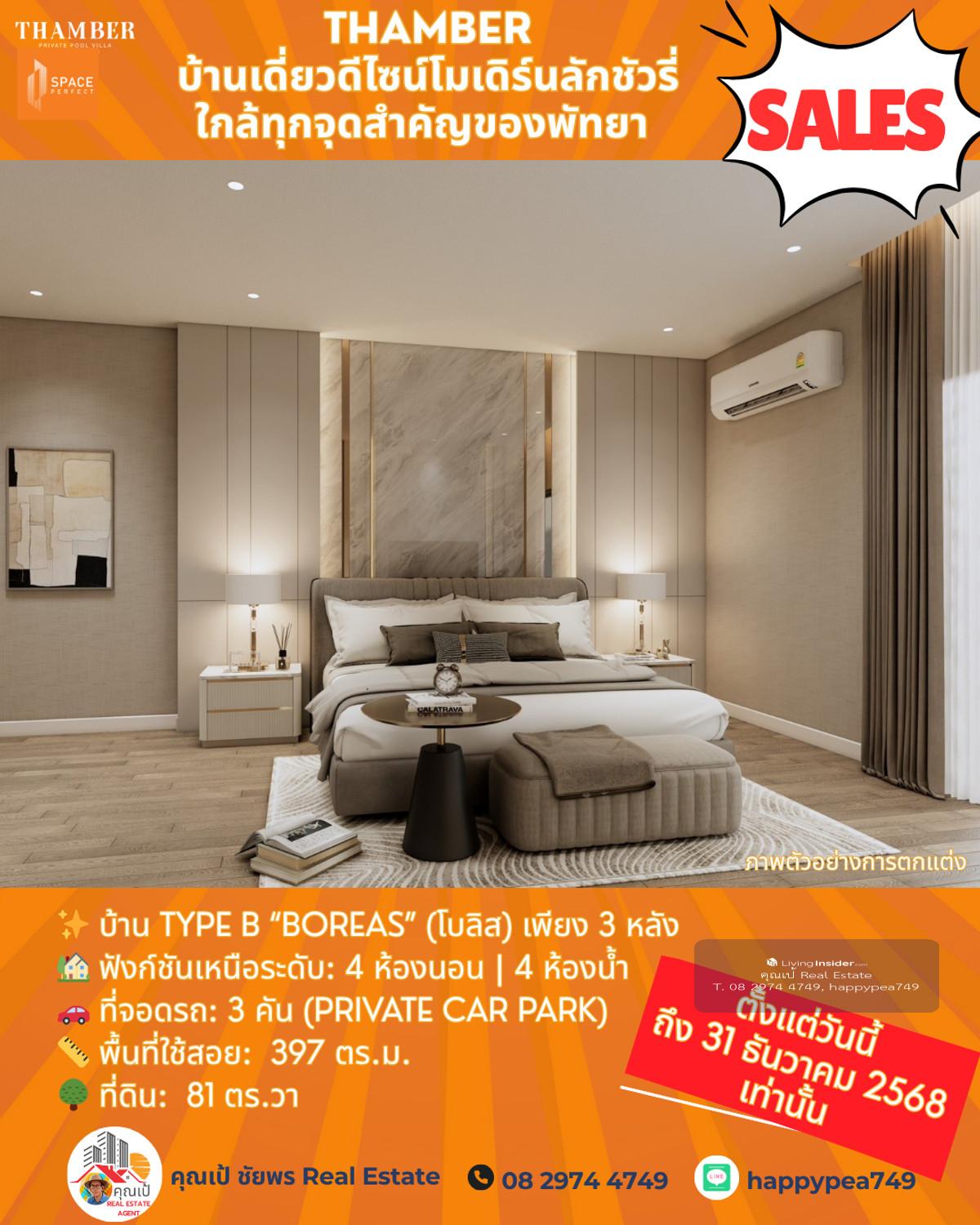 หยุด! โอกาสสุดท้ายแห่งปี 🏆 Luxury Pool Villa พัทยา 🏡 THAMBER: The Last Chance | 3 แปลงสุดท้าย ก่อนปิดโครงการ (Type B) คุณพร้อมที่จะเป็นเจ้าของบ้านพักตากอากาศ/บ้านลงทุนระดับล้านในราคาที่ถูกกว่าตลาดเกือบ 5 ล้านบาทแล้วหรือยัง? นี่คือจังหวะเดียวที่คุณจะได้รับส่วนลดสูงสุดถึง 25% 🎪บ้านหรูดีไซน์ Modern Luxury ในทำเลทอง ห้วยใหญ่-พัทยา ที่เชื่อมต่อเมือง ทะเล และมอเตอร์เวย์ ได้ใน 1 นาที! 🔑 Key Investment Highlights 💰มูลค่าสูงทันที! ราคาพิเศษ 14.99 ล้านบาท (จากปกติสูงสุด 19.9 ล้านบาท) ประหยัดทันที 4.91 ล้านบาท! ทำเลศักยภาพสูง: ใกล้จุดขึ้น-ลงมอเตอร์เวย์ (M7) เพียง 650 ม. เข้าสู่พัทยากลางและกรุงเทพฯ ได้รวดเร็ว ไม่มีค่าส่วนกลาง: (ประหยัดค่าใช้จ่ายรายปีในระยะยาว) สร้างเสร็จพร้อมโอน ธ.ค. 68: ลงทุนวันนี้ รับทรัพย์ได้ทันทีปลายปี! ✨ รายละเอียดบ้าน Type B (Boreas) (โบลิส) เพียง 3 หลัง 🏡 ฟังก์ชันเหนือระดับ: 4 ห้องนอน | 4 ห้องน้ำ 🚗 ที่จอดรถ: 3 คัน (Private Car Park) 📏 พื้นที่ใช้สอย: สูงสุด 397 ตร.ม. 🌳 ที่ดิน: เริ่มต้น 81 ตร.วา 🖍พิกัดโครงการ https://maps.app.goo.gl/LzhVcn6XmSHfPfdY6 📍 ทำเลศักยภาพ "ห้วยใหญ่ - The New Luxury Hub" 📌 จุดขึ้น-ลงมอเตอร์เวย์ (M7) 650 ม. 1-2 นาที 📌 หาดจอมเทียน (Jomtien Beach) 6 กม. 10-15 นาที 📌 เซ็นทรัล เฟสติวัล พัทยา (Central Festival Pattaya) 10-12 กม. 20-25 นาที 📌 โรงเรียนนานาชาติรีเจ้นท์ (Regents International School) 10 กม. 15-20 นาที 📌 สนามกอล์ฟ ฟีนิกซ์ โกลด์ (Phoenix Gold Golf & Country Club) 8 กม. 15 นาที 📌 เทอร์มินอล 21 พัทยา (Terminal 21 Pattaya) 15 กม. 25-30 นาที 📌 สนามบินอู่ตะเภา (U-Tapao Airport) 35-40 กม. 40-50 นาที 🎁ราคาพิเศษ 14.99 ล้านบาทนี้ จำกัดเฉพาะ "Type B" 3 หลังสุดท้ายเท่านั้น! หมดแล้วหมดเลย 👉 ราคา 14.99 ล้าน จะเป็นบ้านเปล่าไม่รวมตกแต่งและสระว่ายน้ำ 👉 รวมตกแต่งบิ้วอินทั้งหลัง เฟอร์นิเจอร์ และเครื่องใช้ไฟฟ้า +อีก 1 ล้านบาท 👉 เพิ่มสระว่ายน้ำ +อีก 1 ล้านบาท ⏳ เงื่อนไขสุดท้าย! จองและโอนภายใน 31 ธันวาคม 2568 นี้เท่านั้น! 📢 อย่าปล่อยให้โอกาสทองหลุดมือ! ทักด่วน ก่อน 3 หลังสุดท้ายจะถูกปิดการขายครับ! 📍 การวิเคราะห์ทำเลในมุมมองผู้เชี่ยวชาญ โครงการ THAMBER นี้ตั้งอยู่ในโซน ห้วยใหญ่/อ่างมาบประชัน ซึ่งเป็นทำเลทองที่กำลังเติบโตอย่างก้าวกระโดดสำหรับตลาดอสังหาฯ ระดับ Luxury Low-Rise (บ้านเดี่ยวหรู) ในพัทยา 🧧ศักยภาพ: ทำเลนี้เป็นเหมือน "The New Luxury Residential Area" ของพัทยา เพราะ 🧨การเข้าถึง: ใกล้ถนนหลักสุขุมวิท, ถนนชัยพฤกษ์ และเชื่อมต่อมอเตอร์เวย์ (M7) ได้รวดเร็ว ทำให้เข้าสู่กรุงเทพฯ หรือสนามบินอู่ตะเภาได้สะดวกมาก 🧨ความสงบแต่ไม่ห่างไกล: เป็นทำเลที่ให้ความสงบและเป็นส่วนตัวสูงกว่าโซนจอมเทียนหรือพัทยากลางที่แออัด แต่ยังคงเดินทางเข้าสู่แหล่งท่องเที่ยวและสิ่งอำนวยความสะดวกได้ง่าย (ใช้เวลาไม่เกิน 10-15 นาที) 🧨กลุ่มเป้าหมาย: ดึงดูดกลุ่มลูกค้ากำลังซื้อสูง ทั้งชา