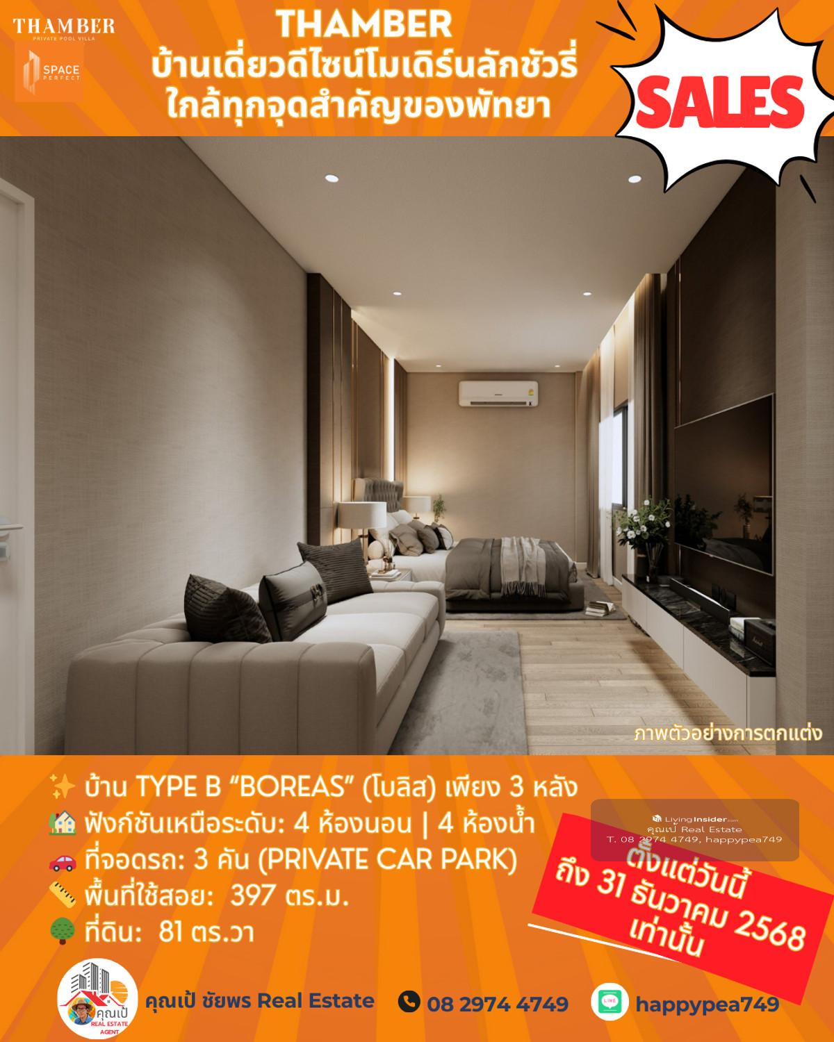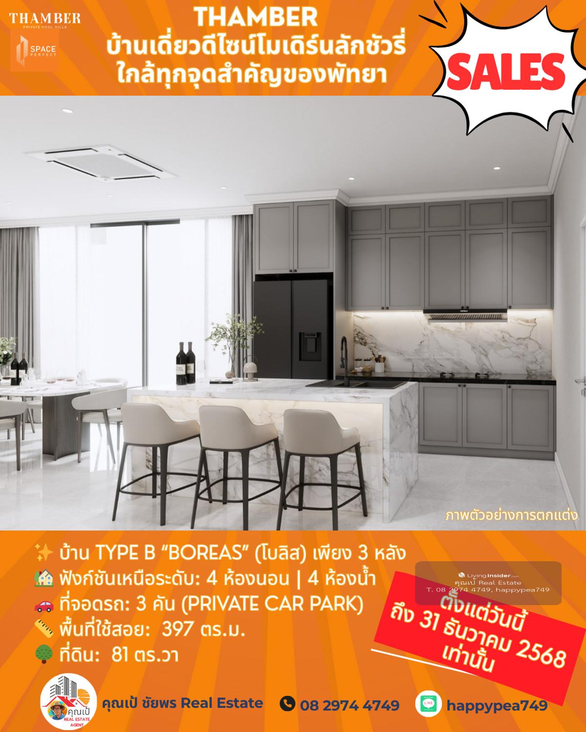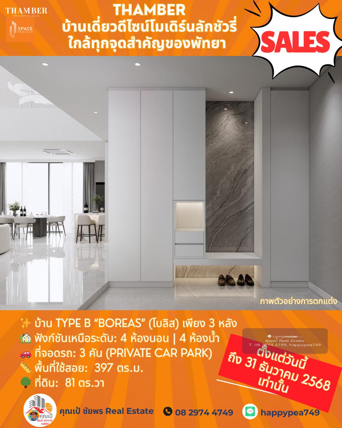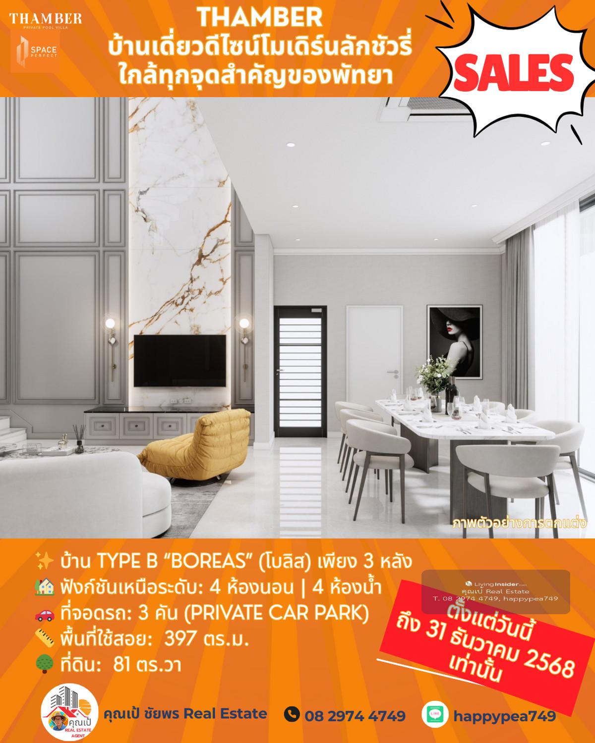 หยุด! โอกาสสุดท้ายแห่งปี 🏆 Luxury Pool Villa พัทยา 🏡 THAMBER: The Last Chance | 3 แปลงสุดท้าย ก่อนปิดโครงการ (Type B) คุณพร้อมที่จะเป็นเจ้าของบ้านพักตากอากาศ/บ้านลงทุนระดับล้านในราคาที่ถูกกว่าตลาดเกือบ 5 ล้านบาทแล้วหรือยัง? นี่คือจังหวะเดียวที่คุณจะได้รับส่วนลดสูงสุดถึง 25% 🎪บ้านหรูดีไซน์ Modern Luxury ในทำเลทอง ห้วยใหญ่-พัทยา ที่เชื่อมต่อเมือง ทะเล และมอเตอร์เวย์ ได้ใน 1 นาที! 🔑 Key Investment Highlights 💰มูลค่าสูงทันที! ราคาพิเศษ 14.99 ล้านบาท (จากปกติสูงสุด 19.9 ล้านบาท) ประหยัดทันที 4.91 ล้านบาท! ทำเลศักยภาพสูง: ใกล้จุดขึ้น-ลงมอเตอร์เวย์ (M7) เพียง 650 ม. เข้าสู่พัทยากลางและกรุงเทพฯ ได้รวดเร็ว ไม่มีค่าส่วนกลาง: (ประหยัดค่าใช้จ่ายรายปีในระยะยาว) สร้างเสร็จพร้อมโอน ธ.ค. 68: ลงทุนวันนี้ รับทรัพย์ได้ทันทีปลายปี! ✨ รายละเอียดบ้าน Type B (Boreas) (โบลิส) เพียง 3 หลัง 🏡 ฟังก์ชันเหนือระดับ: 4 ห้องนอน | 4 ห้องน้ำ 🚗 ที่จอดรถ: 3 คัน (Private Car Park) 📏 พื้นที่ใช้สอย: สูงสุด 397 ตร.ม. 🌳 ที่ดิน: เริ่มต้น 81 ตร.วา 🖍พิกัดโครงการ https://maps.app.goo.gl/LzhVcn6XmSHfPfdY6 📍 ทำเลศักยภาพ "ห้วยใหญ่ - The New Luxury Hub" 📌 จุดขึ้น-ลงมอเตอร์เวย์ (M7) 650 ม. 1-2 นาที 📌 หาดจอมเทียน (Jomtien Beach) 6 กม. 10-15 นาที 📌 เซ็นทรัล เฟสติวัล พัทยา (Central Festival Pattaya) 10-12 กม. 20-25 นาที 📌 โรงเรียนนานาชาติรีเจ้นท์ (Regents International School) 10 กม. 15-20 นาที 📌 สนามกอล์ฟ ฟีนิกซ์ โกลด์ (Phoenix Gold Golf & Country Club) 8 กม. 15 นาที 📌 เทอร์มินอล 21 พัทยา (Terminal 21 Pattaya) 15 กม. 25-30 นาที 📌 สนามบินอู่ตะเภา (U-Tapao Airport) 35-40 กม. 40-50 นาที 🎁ราคาพิเศษ 14.99 ล้านบาทนี้ จำกัดเฉพาะ "Type B" 3 หลังสุดท้ายเท่านั้น! หมดแล้วหมดเลย 👉 ราคา 14.99 ล้าน จะเป็นบ้านเปล่าไม่รวมตกแต่งและสระว่ายน้ำ 👉 รวมตกแต่งบิ้วอินทั้งหลัง เฟอร์นิเจอร์ และเครื่องใช้ไฟฟ้า +อีก 1 ล้านบาท 👉 เพิ่มสระว่ายน้ำ +อีก 1 ล้านบาท ⏳ เงื่อนไขสุดท้าย! จองและโอนภายใน 31 ธันวาคม 2568 นี้เท่านั้น! 📢 อย่าปล่อยให้โอกาสทองหลุดมือ! ทักด่วน ก่อน 3 หลังสุดท้ายจะถูกปิดการขายครับ! 📍 การวิเคราะห์ทำเลในมุมมองผู้เชี่ยวชาญ โครงการ THAMBER นี้ตั้งอยู่ในโซน ห้วยใหญ่/อ่างมาบประชัน ซึ่งเป็นทำเลทองที่กำลังเติบโตอย่างก้าวกระโดดสำหรับตลาดอสังหาฯ ระดับ Luxury Low-Rise (บ้านเดี่ยวหรู) ในพัทยา 🧧ศักยภาพ: ทำเลนี้เป็นเหมือน "The New Luxury Residential Area" ของพัทยา เพราะ 🧨การเข้าถึง: ใกล้ถนนหลักสุขุมวิท, ถนนชัยพฤกษ์ และเชื่อมต่อมอเตอร์เวย์ (M7) ได้รวดเร็ว ทำให้เข้าสู่กรุงเทพฯ หรือสนามบินอู่ตะเภาได้สะดวกมาก 🧨ความสงบแต่ไม่ห่างไกล: เป็นทำเลที่ให้ความสงบและเป็นส่วนตัวสูงกว่าโซนจอมเทียนหรือพัทยากลางที่แออัด แต่ยังคงเดินทางเข้าสู่แหล่งท่องเที่ยวและสิ่งอำนวยความสะดวกได้ง่าย (ใช้เวลาไม่เกิน 10-15 นาที) 🧨กลุ่มเป้าหมาย: ดึงดูดกลุ่มลูกค้ากำลังซื้อสูง ทั้งชา