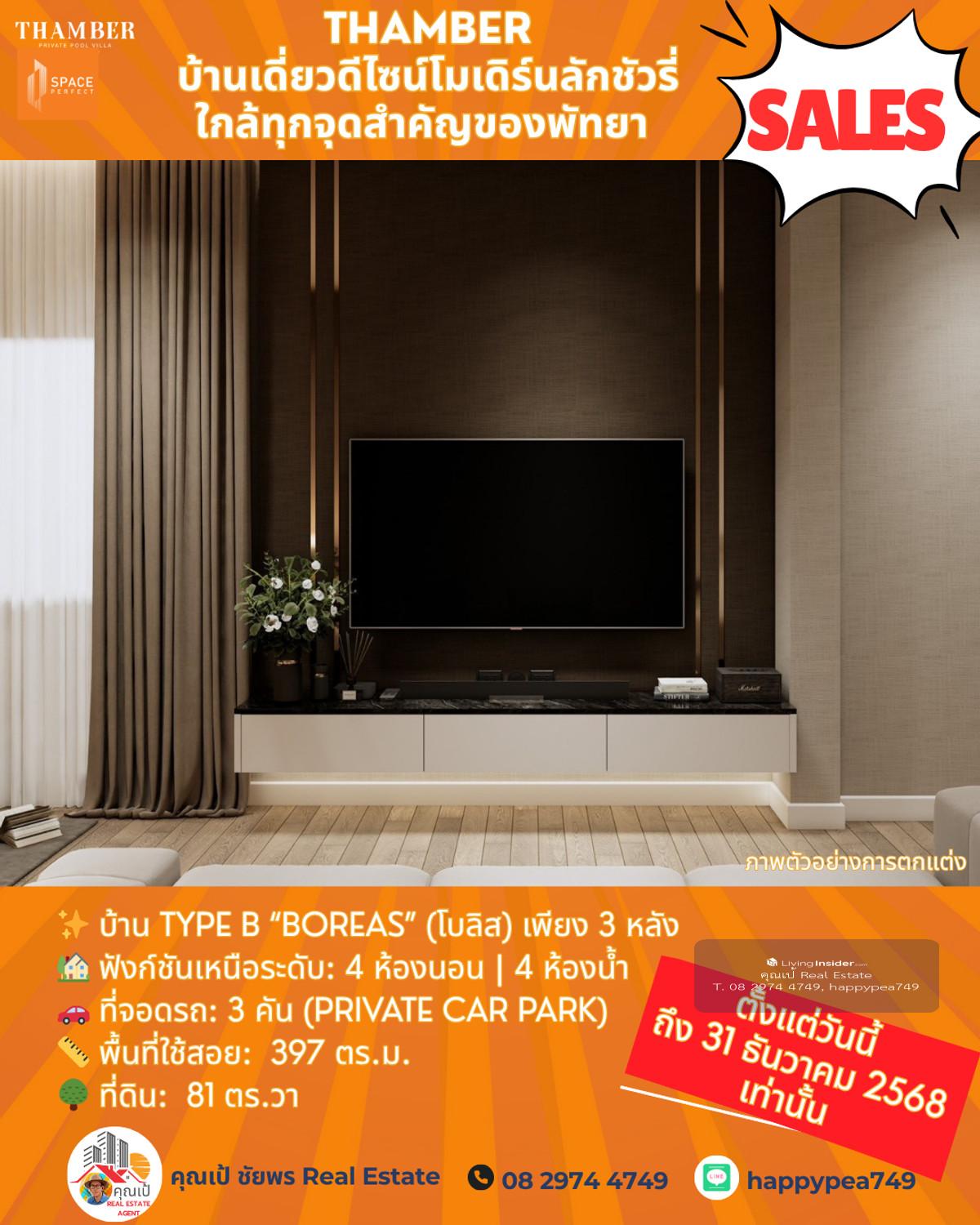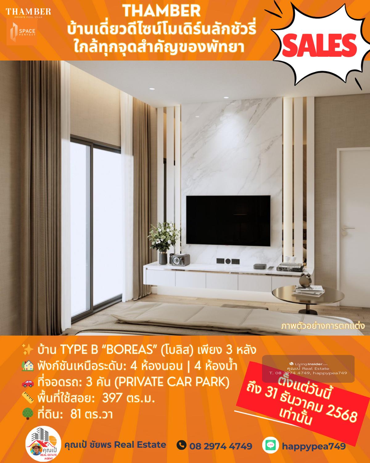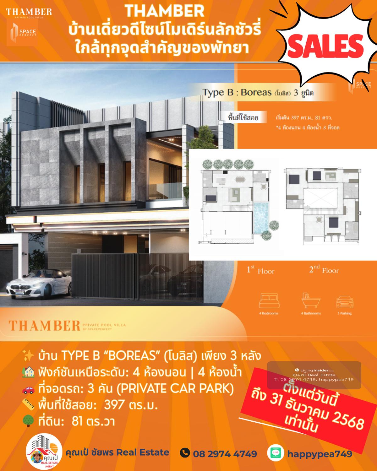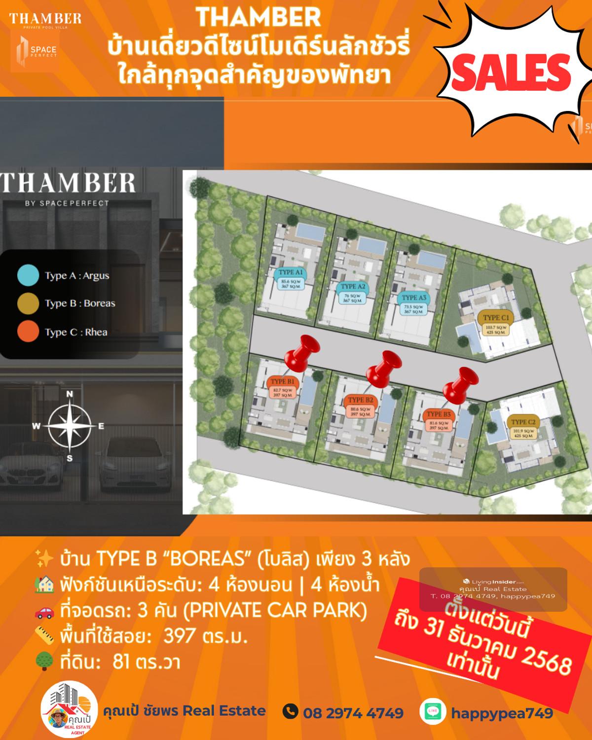 หยุด! โอกาสสุดท้ายแห่งปี 🏆 Luxury Pool Villa พัทยา 🏡 THAMBER: The Last Chance | 3 แปลงสุดท้าย ก่อนปิดโครงการ (Type B) คุณพร้อมที่จะเป็นเจ้าของบ้านพักตากอากาศ/บ้านลงทุนระดับล้านในราคาที่ถูกกว่าตลาดเกือบ 5 ล้านบาทแล้วหรือยัง? นี่คือจังหวะเดียวที่คุณจะได้รับส่วนลดสูงสุดถึง 25% 🎪บ้านหรูดีไซน์ Modern Luxury ในทำเลทอง ห้วยใหญ่-พัทยา ที่เชื่อมต่อเมือง ทะเล และมอเตอร์เวย์ ได้ใน 1 นาที! 🔑 Key Investment Highlights 💰มูลค่าสูงทันที! ราคาพิเศษ 14.99 ล้านบาท (จากปกติสูงสุด 19.9 ล้านบาท) ประหยัดทันที 4.91 ล้านบาท! ทำเลศักยภาพสูง: ใกล้จุดขึ้น-ลงมอเตอร์เวย์ (M7) เพียง 650 ม. เข้าสู่พัทยากลางและกรุงเทพฯ ได้รวดเร็ว ไม่มีค่าส่วนกลาง: (ประหยัดค่าใช้จ่ายรายปีในระยะยาว) สร้างเสร็จพร้อมโอน ธ.ค. 68: ลงทุนวันนี้ รับทรัพย์ได้ทันทีปลายปี! ✨ รายละเอียดบ้าน Type B (Boreas) (โบลิส) เพียง 3 หลัง 🏡 ฟังก์ชันเหนือระดับ: 4 ห้องนอน | 4 ห้องน้ำ 🚗 ที่จอดรถ: 3 คัน (Private Car Park) 📏 พื้นที่ใช้สอย: สูงสุด 397 ตร.ม. 🌳 ที่ดิน: เริ่มต้น 81 ตร.วา 🖍พิกัดโครงการ https://maps.app.goo.gl/LzhVcn6XmSHfPfdY6 📍 ทำเลศักยภาพ "ห้วยใหญ่ - The New Luxury Hub" 📌 จุดขึ้น-ลงมอเตอร์เวย์ (M7) 650 ม. 1-2 นาที 📌 หาดจอมเทียน (Jomtien Beach) 6 กม. 10-15 นาที 📌 เซ็นทรัล เฟสติวัล พัทยา (Central Festival Pattaya) 10-12 กม. 20-25 นาที 📌 โรงเรียนนานาชาติรีเจ้นท์ (Regents International School) 10 กม. 15-20 นาที 📌 สนามกอล์ฟ ฟีนิกซ์ โกลด์ (Phoenix Gold Golf & Country Club) 8 กม. 15 นาที 📌 เทอร์มินอล 21 พัทยา (Terminal 21 Pattaya) 15 กม. 25-30 นาที 📌 สนามบินอู่ตะเภา (U-Tapao Airport) 35-40 กม. 40-50 นาที 🎁ราคาพิเศษ 14.99 ล้านบาทนี้ จำกัดเฉพาะ "Type B" 3 หลังสุดท้ายเท่านั้น! หมดแล้วหมดเลย 👉 ราคา 14.99 ล้าน จะเป็นบ้านเปล่าไม่รวมตกแต่งและสระว่ายน้ำ 👉 รวมตกแต่งบิ้วอินทั้งหลัง เฟอร์นิเจอร์ และเครื่องใช้ไฟฟ้า +อีก 1 ล้านบาท 👉 เพิ่มสระว่ายน้ำ +อีก 1 ล้านบาท ⏳ เงื่อนไขสุดท้าย! จองและโอนภายใน 31 ธันวาคม 2568 นี้เท่านั้น! 📢 อย่าปล่อยให้โอกาสทองหลุดมือ! ทักด่วน ก่อน 3 หลังสุดท้ายจะถูกปิดการขายครับ! 📍 การวิเคราะห์ทำเลในมุมมองผู้เชี่ยวชาญ โครงการ THAMBER นี้ตั้งอยู่ในโซน ห้วยใหญ่/อ่างมาบประชัน ซึ่งเป็นทำเลทองที่กำลังเติบโตอย่างก้าวกระโดดสำหรับตลาดอสังหาฯ ระดับ Luxury Low-Rise (บ้านเดี่ยวหรู) ในพัทยา 🧧ศักยภาพ: ทำเลนี้เป็นเหมือน "The New Luxury Residential Area" ของพัทยา เพราะ 🧨การเข้าถึง: ใกล้ถนนหลักสุขุมวิท, ถนนชัยพฤกษ์ และเชื่อมต่อมอเตอร์เวย์ (M7) ได้รวดเร็ว ทำให้เข้าสู่กรุงเทพฯ หรือสนามบินอู่ตะเภาได้สะดวกมาก 🧨ความสงบแต่ไม่ห่างไกล: เป็นทำเลที่ให้ความสงบและเป็นส่วนตัวสูงกว่าโซนจอมเทียนหรือพัทยากลางที่แออัด แต่ยังคงเดินทางเข้าสู่แหล่งท่องเที่ยวและสิ่งอำนวยความสะดวกได้ง่าย (ใช้เวลาไม่เกิน 10-15 นาที) 🧨กลุ่มเป้าหมาย: ดึงดูดกลุ่มลูกค้ากำลังซื้อสูง ทั้งชา
