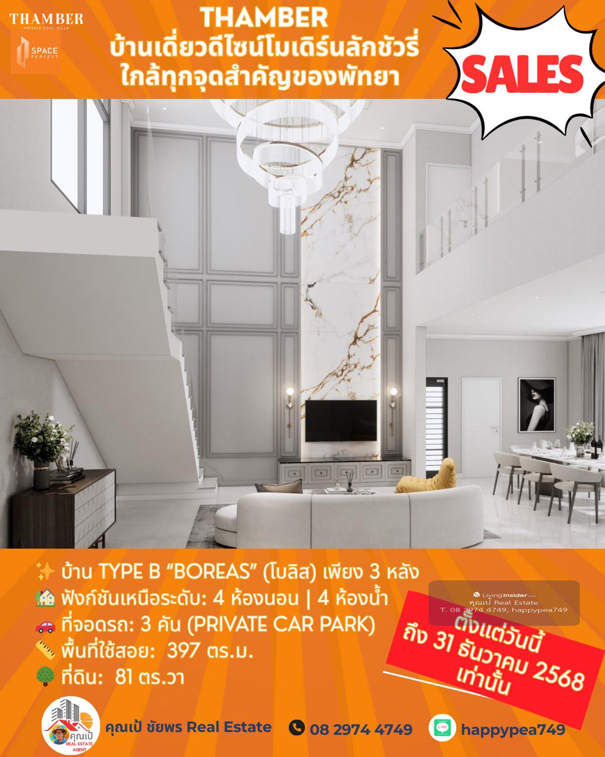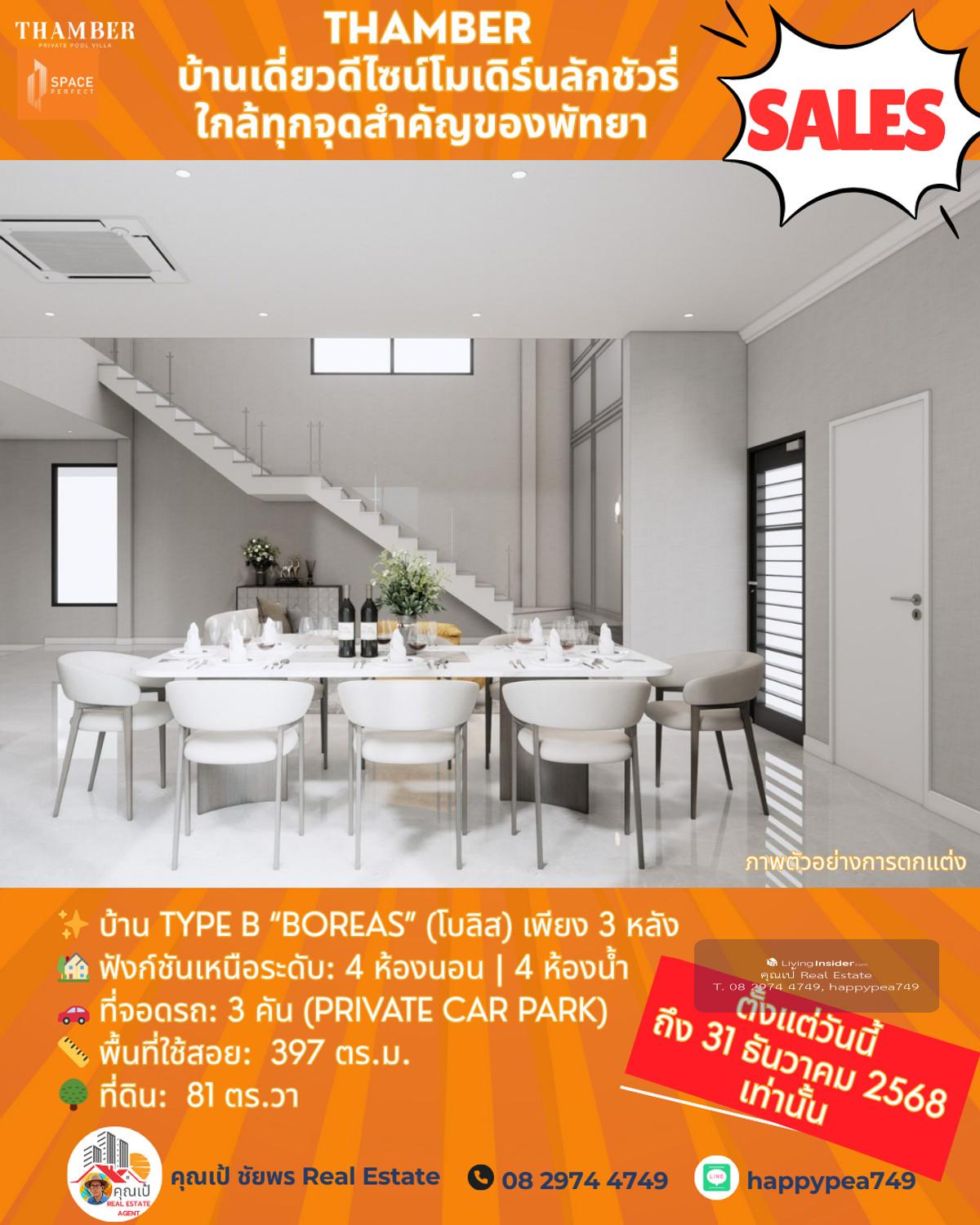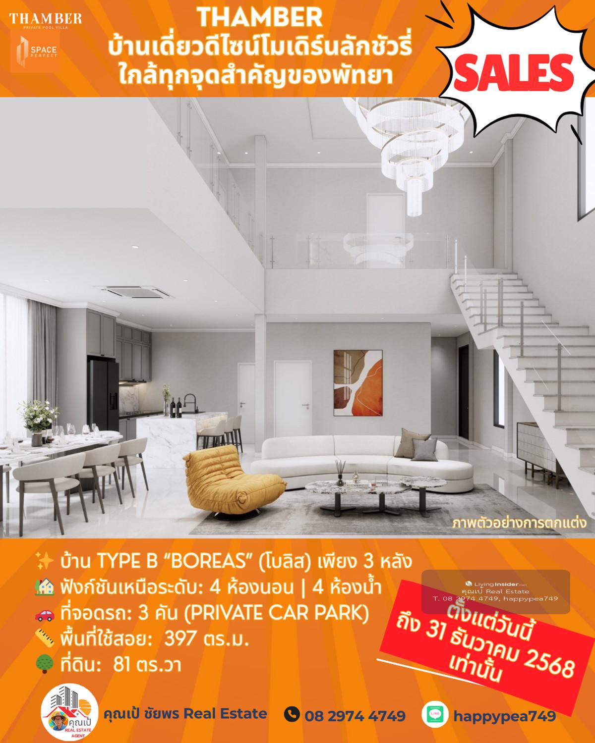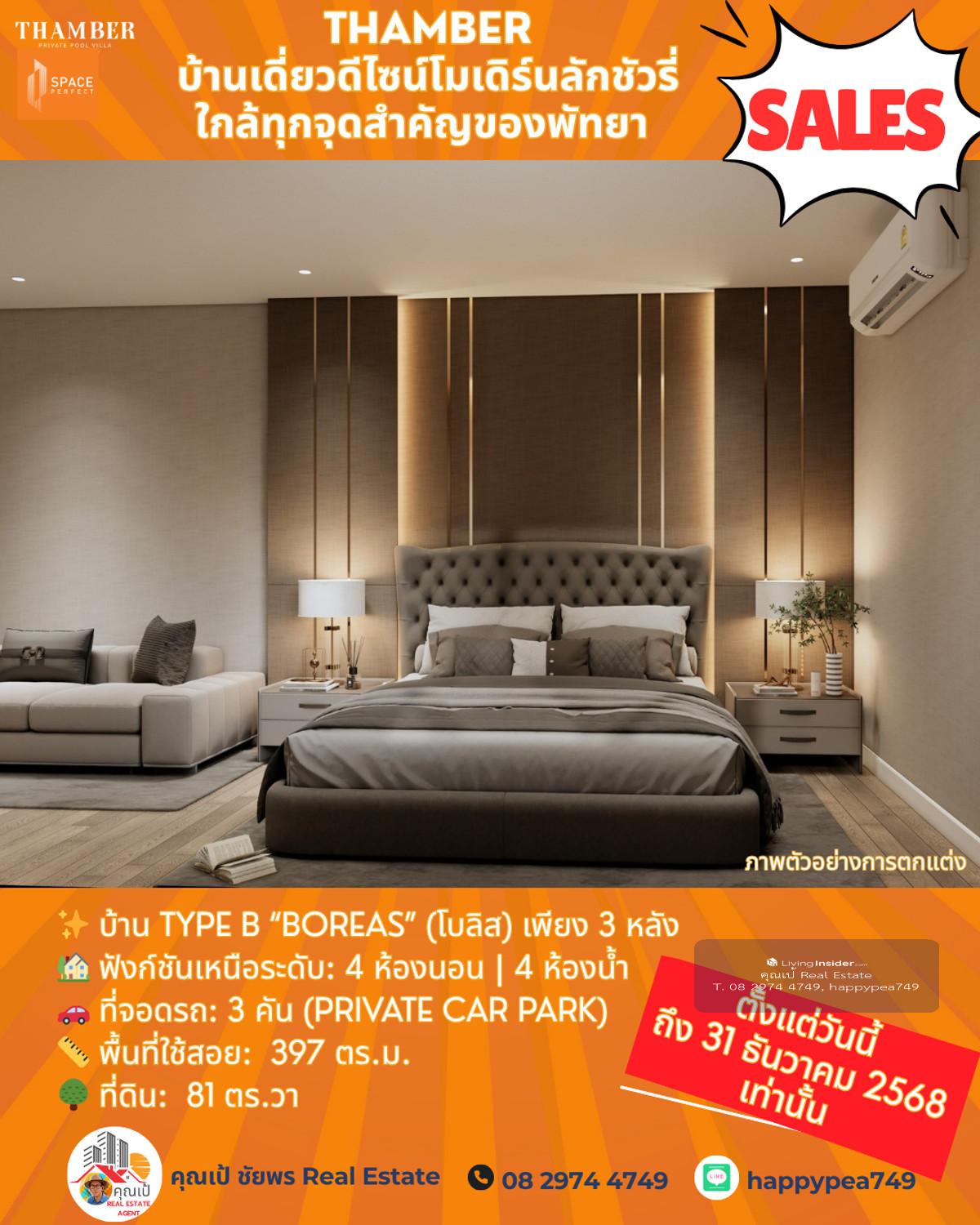 หยุด! โอกาสสุดท้ายแห่งปี 🏆 Luxury Pool Villa พัทยา 🏡 THAMBER: The Last Chance | 3 แปลงสุดท้าย ก่อนปิดโครงการ (Type B) คุณพร้อมที่จะเป็นเจ้าของบ้านพักตากอากาศ/บ้านลงทุนระดับล้านในราคาที่ถูกกว่าตลาดเกือบ 5 ล้านบาทแล้วหรือยัง? นี่คือจังหวะเดียวที่คุณจะได้รับส่วนลดสูงสุดถึง 25% 🎪บ้านหรูดีไซน์ Modern Luxury ในทำเลทอง ห้วยใหญ่-พัทยา ที่เชื่อมต่อเมือง ทะเล และมอเตอร์เวย์ ได้ใน 1 นาที! 🔑 Key Investment Highlights 💰มูลค่าสูงทันที! ราคาพิเศษ 14.99 ล้านบาท (จากปกติสูงสุด 19.9 ล้านบาท) ประหยัดทันที 4.91 ล้านบาท! ทำเลศักยภาพสูง: ใกล้จุดขึ้น-ลงมอเตอร์เวย์ (M7) เพียง 650 ม. เข้าสู่พัทยากลางและกรุงเทพฯ ได้รวดเร็ว ไม่มีค่าส่วนกลาง: (ประหยัดค่าใช้จ่ายรายปีในระยะยาว) สร้างเสร็จพร้อมโอน ธ.ค. 68: ลงทุนวันนี้ รับทรัพย์ได้ทันทีปลายปี! ✨ รายละเอียดบ้าน Type B (Boreas) (โบลิส) เพียง 3 หลัง 🏡 ฟังก์ชันเหนือระดับ: 4 ห้องนอน | 4 ห้องน้ำ 🚗 ที่จอดรถ: 3 คัน (Private Car Park) 📏 พื้นที่ใช้สอย: สูงสุด 397 ตร.ม. 🌳 ที่ดิน: เริ่มต้น 81 ตร.วา 🖍พิกัดโครงการ https://maps.app.goo.gl/LzhVcn6XmSHfPfdY6 📍 ทำเลศักยภาพ "ห้วยใหญ่ - The New Luxury Hub" 📌 จุดขึ้น-ลงมอเตอร์เวย์ (M7) 650 ม. 1-2 นาที 📌 หาดจอมเทียน (Jomtien Beach) 6 กม. 10-15 นาที 📌 เซ็นทรัล เฟสติวัล พัทยา (Central Festival Pattaya) 10-12 กม. 20-25 นาที 📌 โรงเรียนนานาชาติรีเจ้นท์ (Regents International School) 10 กม. 15-20 นาที 📌 สนามกอล์ฟ ฟีนิกซ์ โกลด์ (Phoenix Gold Golf & Country Club) 8 กม. 15 นาที 📌 เทอร์มินอล 21 พัทยา (Terminal 21 Pattaya) 15 กม. 25-30 นาที 📌 สนามบินอู่ตะเภา (U-Tapao Airport) 35-40 กม. 40-50 นาที 🎁ราคาพิเศษ 14.99 ล้านบาทนี้ จำกัดเฉพาะ "Type B" 3 หลังสุดท้ายเท่านั้น! หมดแล้วหมดเลย 👉 ราคา 14.99 ล้าน จะเป็นบ้านเปล่าไม่รวมตกแต่งและสระว่ายน้ำ 👉 รวมตกแต่งบิ้วอินทั้งหลัง เฟอร์นิเจอร์ และเครื่องใช้ไฟฟ้า +อีก 1 ล้านบาท 👉 เพิ่มสระว่ายน้ำ +อีก 1 ล้านบาท ⏳ เงื่อนไขสุดท้าย! จองและโอนภายใน 31 ธันวาคม 2568 นี้เท่านั้น! 📢 อย่าปล่อยให้โอกาสทองหลุดมือ! ทักด่วน ก่อน 3 หลังสุดท้ายจะถูกปิดการขายครับ! 📍 การวิเคราะห์ทำเลในมุมมองผู้เชี่ยวชาญ โครงการ THAMBER นี้ตั้งอยู่ในโซน ห้วยใหญ่/อ่างมาบประชัน ซึ่งเป็นทำเลทองที่กำลังเติบโตอย่างก้าวกระโดดสำหรับตลาดอสังหาฯ ระดับ Luxury Low-Rise (บ้านเดี่ยวหรู) ในพัทยา 🧧ศักยภาพ: ทำเลนี้เป็นเหมือน "The New Luxury Residential Area" ของพัทยา เพราะ 🧨การเข้าถึง: ใกล้ถนนหลักสุขุมวิท, ถนนชัยพฤกษ์ และเชื่อมต่อมอเตอร์เวย์ (M7) ได้รวดเร็ว ทำให้เข้าสู่กรุงเทพฯ หรือสนามบินอู่ตะเภาได้สะดวกมาก 🧨ความสงบแต่ไม่ห่างไกล: เป็นทำเลที่ให้ความสงบและเป็นส่วนตัวสูงกว่าโซนจอมเทียนหรือพัทยากลางที่แออัด แต่ยังคงเดินทางเข้าสู่แหล่งท่องเที่ยวและสิ่งอำนวยความสะดวกได้ง่าย (ใช้เวลาไม่เกิน 10-15 นาที) 🧨กลุ่มเป้าหมาย: ดึงดูดกลุ่มลูกค้ากำลังซื้อสูง ทั้งชา