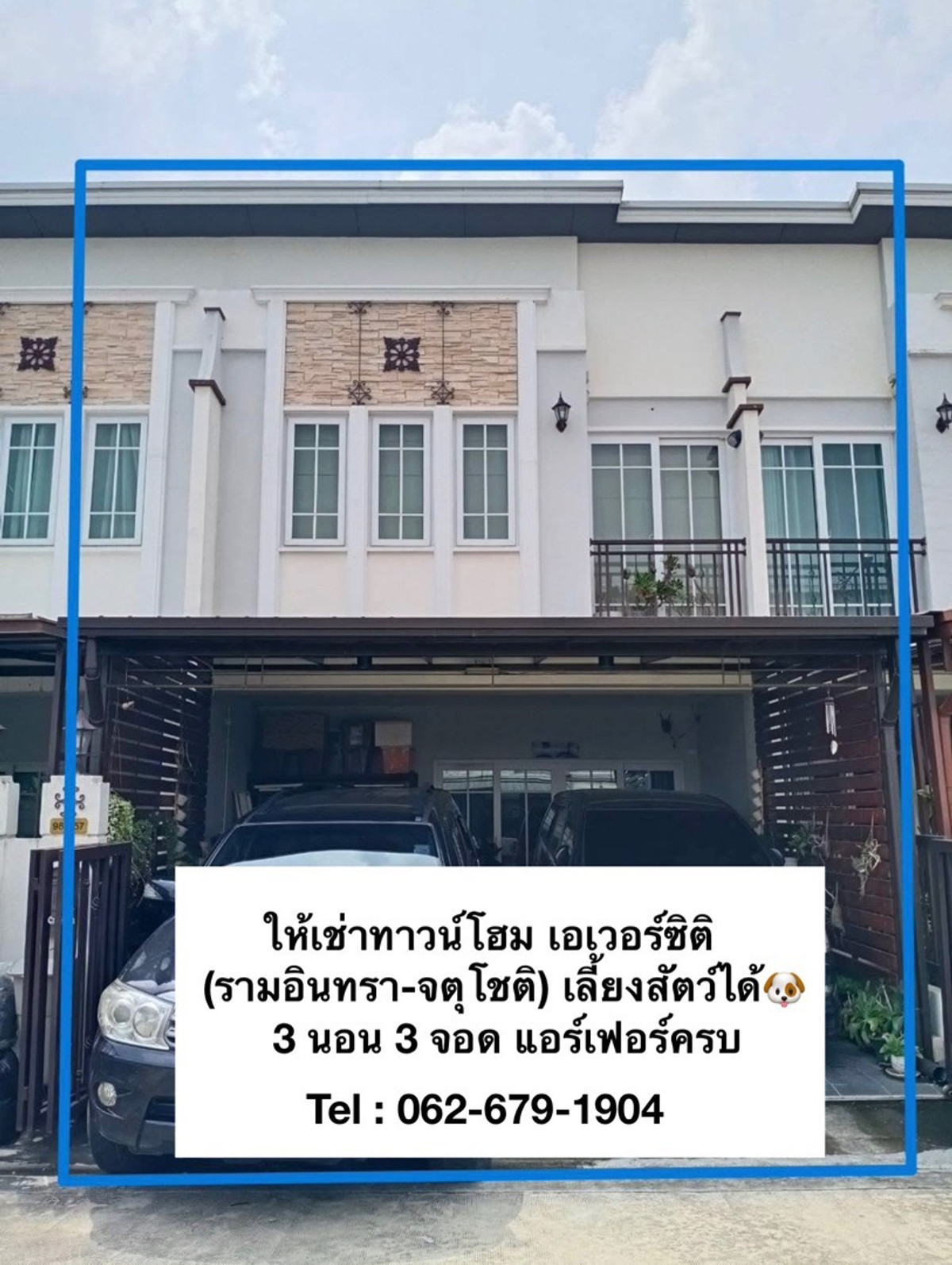 TH11-4138 ให้เช่า ทาวน์โฮม 2 ชั้น โครงการ เอเวอร์ซิตี้ รามอินทรา-จตุโชติ (เขตสายไหม) ✅3 ห้องนอน(แอร์) 3 ห้องน้ำ ✅ 1 ห้องทำงาน(แอร์) | 1 ห้องครัวบิ้วอิน ✅ 1 โถงรับแขก(แอร์) 1 ชั้นลอย ✅ จอดรถได้ 2 คัน หน้ากว้าง 5.7 ม. ✅ ขนาดที่ดิน 22.5 ตร.ว. | พื้นที่ใช้สอย 145 ตร.ม. ☑️ ตกแต่ง เฟอร์นิเจอร์เครื่องใช้ไฟฟ้าครบพร้อมอยู่ - แอร์ไดกิ้น 5 เครื่อง | เฟอร์นิเจอร์ Fit it - มุ้งลวดจีบ | เลี้ยงสัตว์ได้ตามความเหมาะสม - Internet True Fiber | หิ้วกระเป๋าเข้าอยู่ได้เลย ┏━━━━━━━━━━━━━━━━━━┓ ค่าเช่า 18,000 บาท /เดือน สัญญา 1 ปี แรกเข้า ประกัน 2 เดือน / ล่วงหน้า 1 เดือน ┗━━━━━━━━━━━━━━━━━━┛ Line ID : @princeszhome(มี @ ด้วยนะคะ) คลิก : https://lin.ee/jqbs4jbE Tel : คลิกเพื่อดูเบอร์โทรติดต่อ คุณเมลดา Tel : คลิกเพื่อดูเบอร์โทรติดต่อ #รับจัดหาบ้านเช่า #เช่าโฮมออฟฟิต #PrincesshomeProperty สิ่งอำนวยความสะดวก -คลับเฮ้าส์ขนาดใหญ่ Fitness สระว่ายน้ำ - ระบบรักษาความปลอดภัย ระบบไม้กั้น และประตู Auto Gate ควบคุมด้วยบัตร Easy Pass - CCTV ตรวจสอบผู้เข้าออกโครงการตลอด 24 ชม. ทำเลที่ตั้ง - ห่างทางขึ้นลงทางด่วนเพียง 3 นาที - ใกล้จุดขึ้นลงทางด่วนฉลองรัช (เอกมัย-รามอินทรา), - ถนนกาญจนาภิเษก (วงแหวนตะวันออก) - เชื่อมโยงรถไฟฟ้าสายสีชมพู (แคราย-มีนบุรี) และสายสีเขียว (หมอชิต-ลำลูกกา) - ถ.เทพรักษ์ส่วนขยาย(ถ.สุขาภิบาล5-วงแหวน)2 กม. - รร.ฤทธิยะวรรณาลัย/รร.สารสาสน์วิเทศสายไหม - รร.นวมินทราชินูทิศ เบญจมราชาลัย - บิ๊กซี / เซเว่น เพียง 500 เมตร