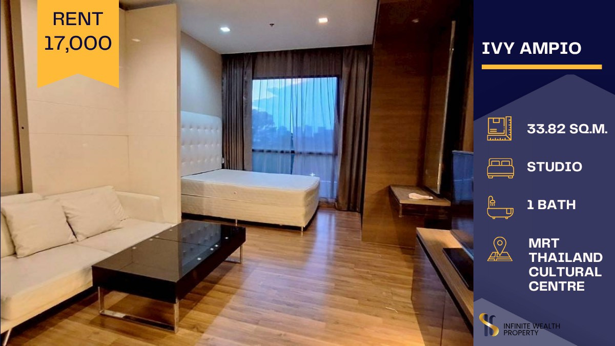 📍 ทำเล: Ratchada, Rama 9, MRT Thailand Cultural Centre 🏢 โครงการ: Ivy Ampio 📐 ขนาด: 33.82 ตร.ม. 🛏️ แบบห้อง: Studio 1 Bath 💰 ราคาเช่า: 17,000 บาท/เดือน 📌 สถานะ: Available ✅ จุดเด่นของห้อง: 🏙️ ห้องแต่งห