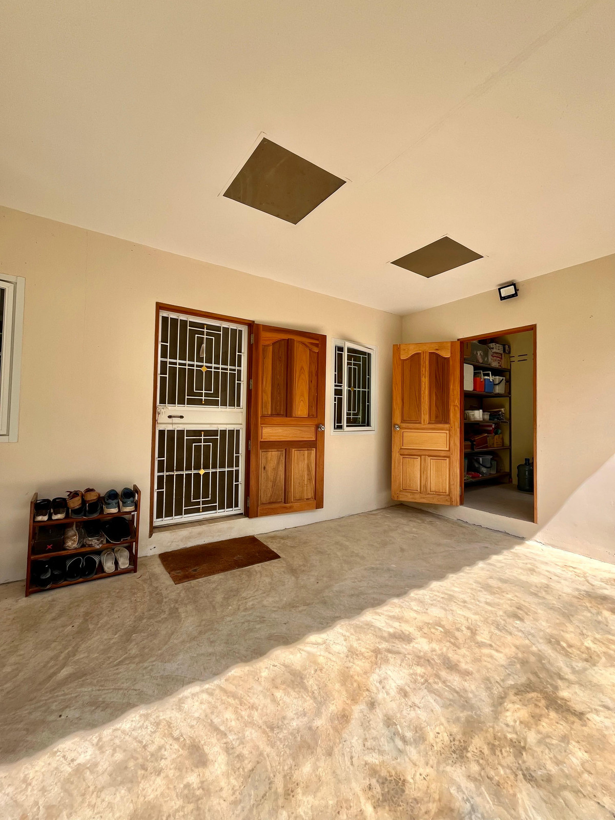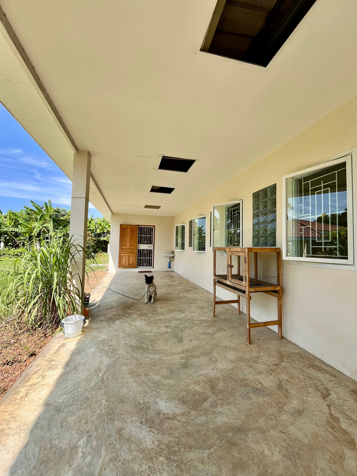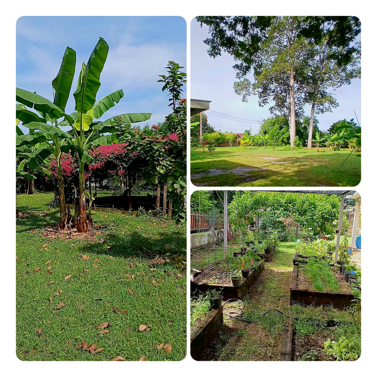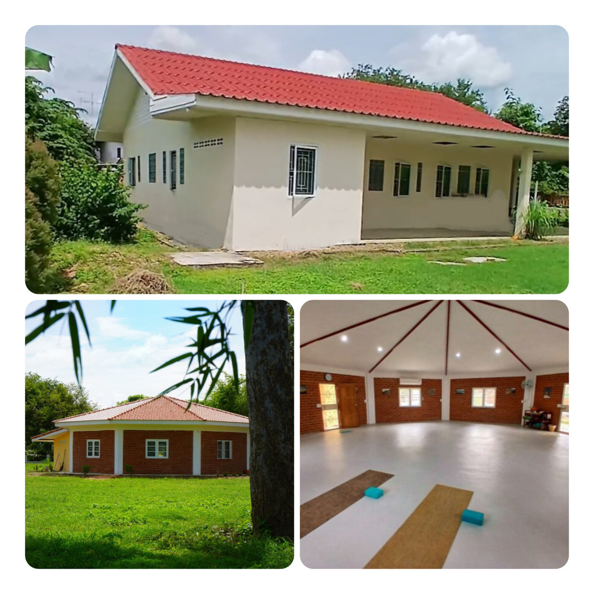 ที่ตั้ง : ต.หนองกบ อ.บ้านโป่ง จ.ราชบุรี เนื้อที่ : 2 ไร่ 56 ตรม. ประกอบด้วย : 1. * บ้านเดี่ยวหนึ่งชั้น, บ้านมือหนึ่ง, อายุสองปีครึ่ง * พื้นที่ใช้สอย 180 ตรม. รวมชานบ้าน * ห้องนอน 3, ห้องน้ำ 1, ส้วม 1, โถง 1, ครัว 1 * โรงจอดรถ 2 คัน 2. * ห้องโถงอเนกประสงค์ทรงแปดเหลี่ยม ขนาด 95 ตรม. กำแพงอิฐประสาน พร้อมห้องน้ำ ห้องส้วม และอ่างล้างหน้า 2 หลุม เหมาะสำหรับจัดกิจกรรม เช่น สอนโยคะ สัมนา ร้านกาแฟ ฯลฯ 3. ห้องเก็บของ ขนาด 18 ตรม. ใกล้ตัวบ้าน สะดวกในการเก็บอุปกรณ์ทำสวน รถตัดหญ้า หรือดัดแปลงตามความต้องการ 4. เล้าไก่ปิด ปัจจุบันเลี้ยงไก่ไข่อยู่ 13 ตัว รายละเอียดเพิ่มเติม : * ตั้งอยู่บนพื้นที่มีรั้วล้อมรอบ ต้นไม้ใหญ่น้อย พร้อมแปลงปลูกผักยกพื้นสูงอิฐประสาน 10 แปลงใกล้ตัวบ้าน * ใกล้ร้านสะดวกซื้อ 400 ม., สถานีรถไฟ 3 กม., ตัวเมืองบ้านโป่ง 7 กม. * มอบฟรี เครื่องปรับอากาศ 3 เครื่องและพัดลมติดผนัง 2 ตัวในศาลาอเนกประสงค์, ตู้เสื้อผ้าติดผนังในห้องนอนทั้ง 3 ห้อง * เจ้าของเป็นคนจ่ายค่าโอน