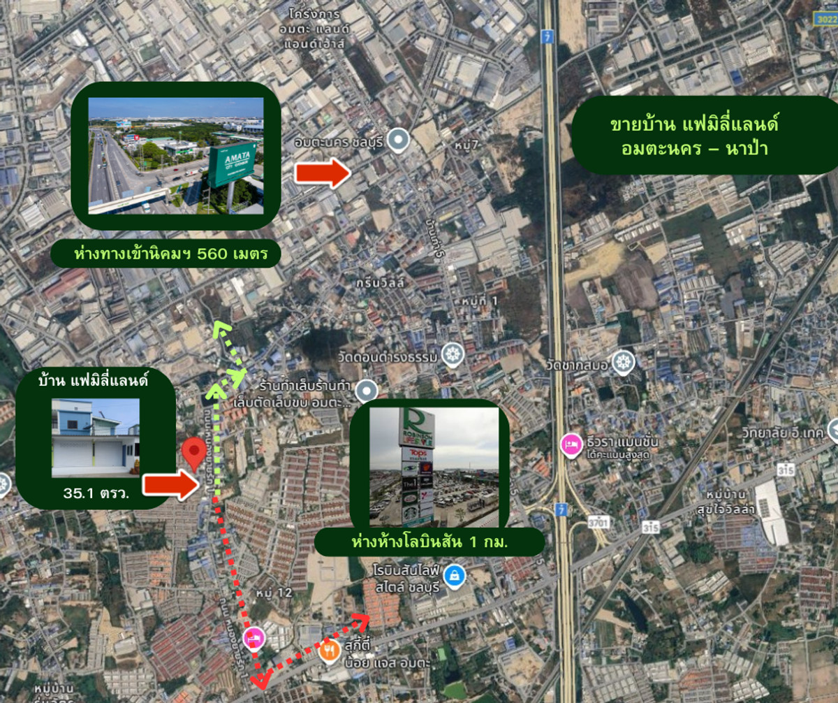 PZ1302 ขาย ทาวน์เฮ้าส์ 2 ชั้น หมู่บ้าน แฟมิลี่แลนด์ อมตะนคร – นาป่า หลังมุม เนื้อที่ 35.1 ตรว ห่างจากนิคมอุตสาหกรรม อมตะนคร ชลบุรี เพียง 560 เมตร บนถนนหนองยายรัก 1 ตำบลนาป่า อำเภอเมืองชลบุรี จ.ชลบุรี ราคา 3,900,000 บาท **รายละเอียด** -ขายบ้าน แฟมิลี่แลนด์ อมตะนคร – นาป่า -ทาวน์เฮ้าส์ 2 ชั้น -เนื้อที่ 351. ตรว. -พื้นที่ใช้สอย 280 ตรม. -ห้องนอน 6 ห้องนอน -4 ห้องน้ำ -แอร์ 5 ตัว -เคาน์เตอร์ครัว -ห้องโถง 2 ห้อง -ต่อเติมเต็มพื้นที่ **จุดเด่น** -บ้านเหมาะกับการค้าขาย และเปิดร้านค้า ร้านอาหาร และร้านทำผล เพราะทำเลดี อยู่ด้านหน้าหมู่บ้าน (หลังแรก) ใกล้นิคมอุตสาหกรรม -เดินทางเข้าออกสะดวก สามารถเชื่อมต่อถนนเส้นหลักและถนนบายพาสได้หลายเส้นทาง -ห่างจากนิคมอุตสาหกรรม อมตะนคร ชลบุรี 560 เมตร -ใกล้นิคมอมตะนคร เฟส 1–6 -ห่างจากถนนหมายเลข 7 มอเตอร์เวย์สายกรุงเทพฯ-บ้านฉาง เพียง 300 เมตร -ห่างจากถนนหมายเลข 361 ถนนบายพาสเลี่ยงเมืองชลบุรี เพียง 350 เมตร **สถานที่ใกล้เคียง -ใกล้นิคมอุตสาหกรรมอมตะนครชลบุรี เพียง 560 ม. -ใกล้โรบินสันไลฟ์สไตล์ชลบุรี -ใกล้บิ๊กซีมาร์เก็ต นาป่า 1 กม. และโฮมโปร -ใกล้ตลาดรัตนากรอมตะ 820 ม. -รร.อนุบาลอาเซียนวิเทศศาสตร์ 1.3 กม. -ห่างจากวัดอู่ตเะเพา 1.8 กม. **สนใจสอบถามรายละเอียดเพิ่มเติม : โทร : คลิกเพื่อดูเบอร์โทรติดต่อ , คลิกเพื่อดูเบอร์โทรติดต่อ (เจี๊ยบ) ** รับซื้อ ฝาก ขาย เช่า ที่ดิน บ้าน คอนโด อสังหาริมทรัพย์ ทุกชนิด (มือ 1 และมือ 2) "ฟรี" ค่าใช้จ่ายจนกว่าจะขายได้ พร้อมทั้งทำเรื่องยื่นกู้สินเชื่อ จนถึงโอนกรรมสิทธิ์ โดยทีมนักขายมืออาชีพ : Pazar Estate Co.,Ltd https://www.pazar-estate.com Tel : คลิกเพื่อดูเบอร์โทรติดต่อ .