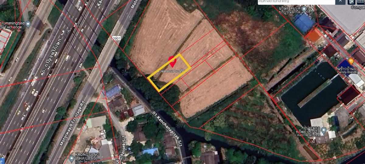 ขาย ที่ดินเปล่า ซอย01กาญจนาภิเษก 5/1 ติดถนนเลียบกาญจนาภิเษก ช่วงถนนจตุโชติ เชื่อมกกับถนนพระยาสุเรนทร์ เนื้อที่: 190 ตารางวา หน้ากว้าง 42x18 ม. ติดคลองบึงพระยาสุเรนทร์ ปัจจุบันทำนา ทางเข้าสามารถเข้าทาง