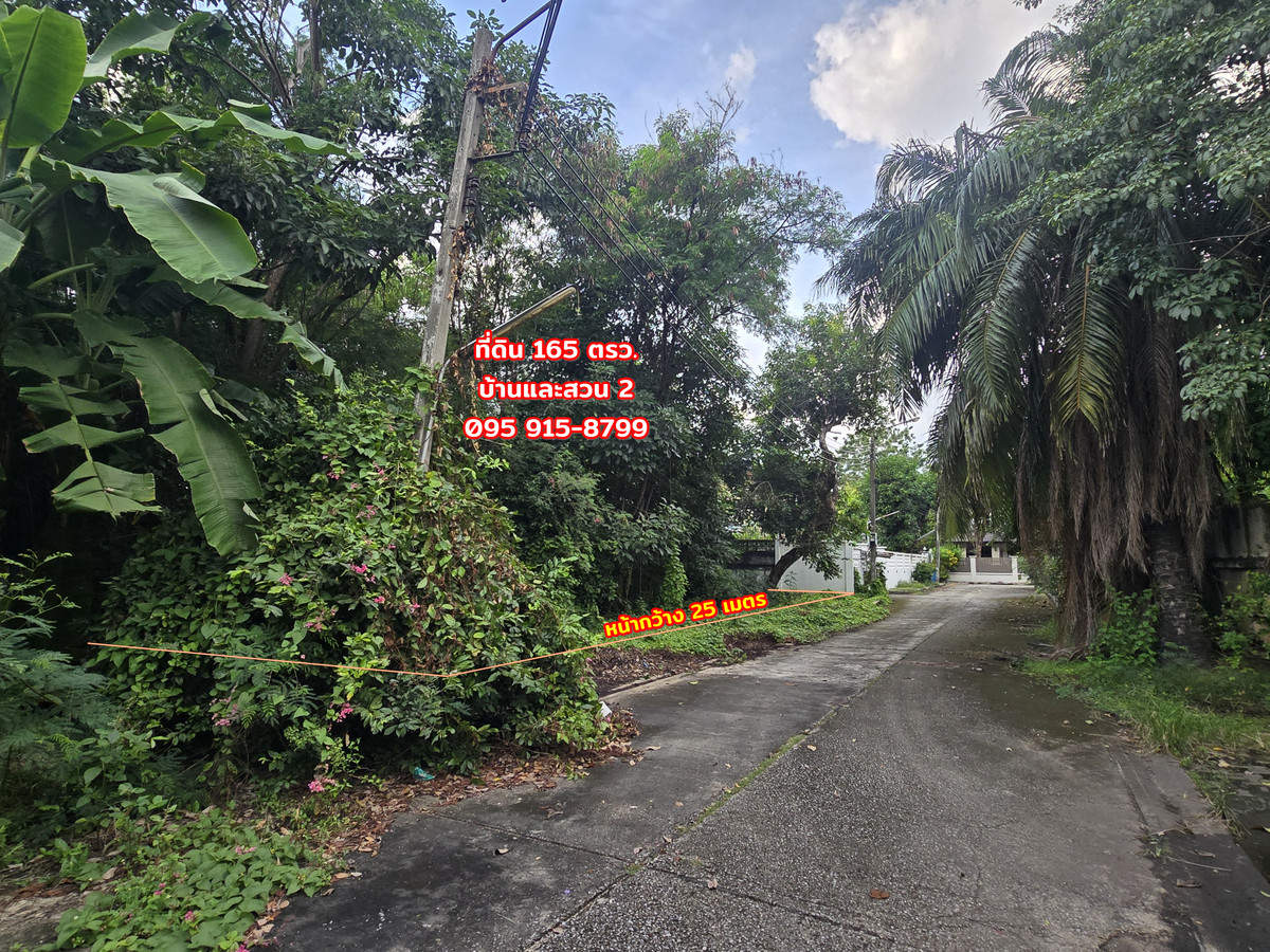 ​ที่ดินเปล่าอยู่ใน หมู่บ้าน บ้านและสวน 2 ทำเลดีมาก ​ขนาด: 165 ตารางวา (กว้าง 25 ม. x ลึก 28ม.) ​ลักษณะ: หน้าติดถนนคอนกรีต บรรยากาศดี เงียบสงบ ส่วนตัว มีกำแพงคอนกรีต 3 ด้าน ​ ทำเลทอง เชื่อมต่อสะดวก: ​ถ