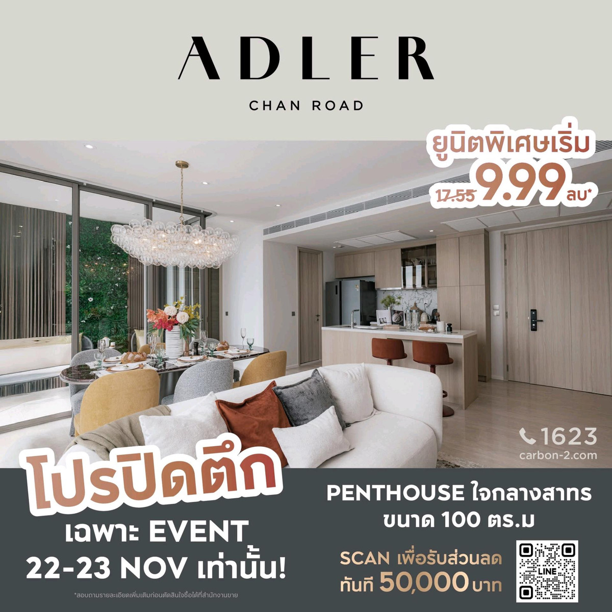 ADLER Chan Road โปรปิดตึก ราคาพิเศษ 9.99 ลบ.* Penthouses 103.36 ตร.ม 2 Bedroom