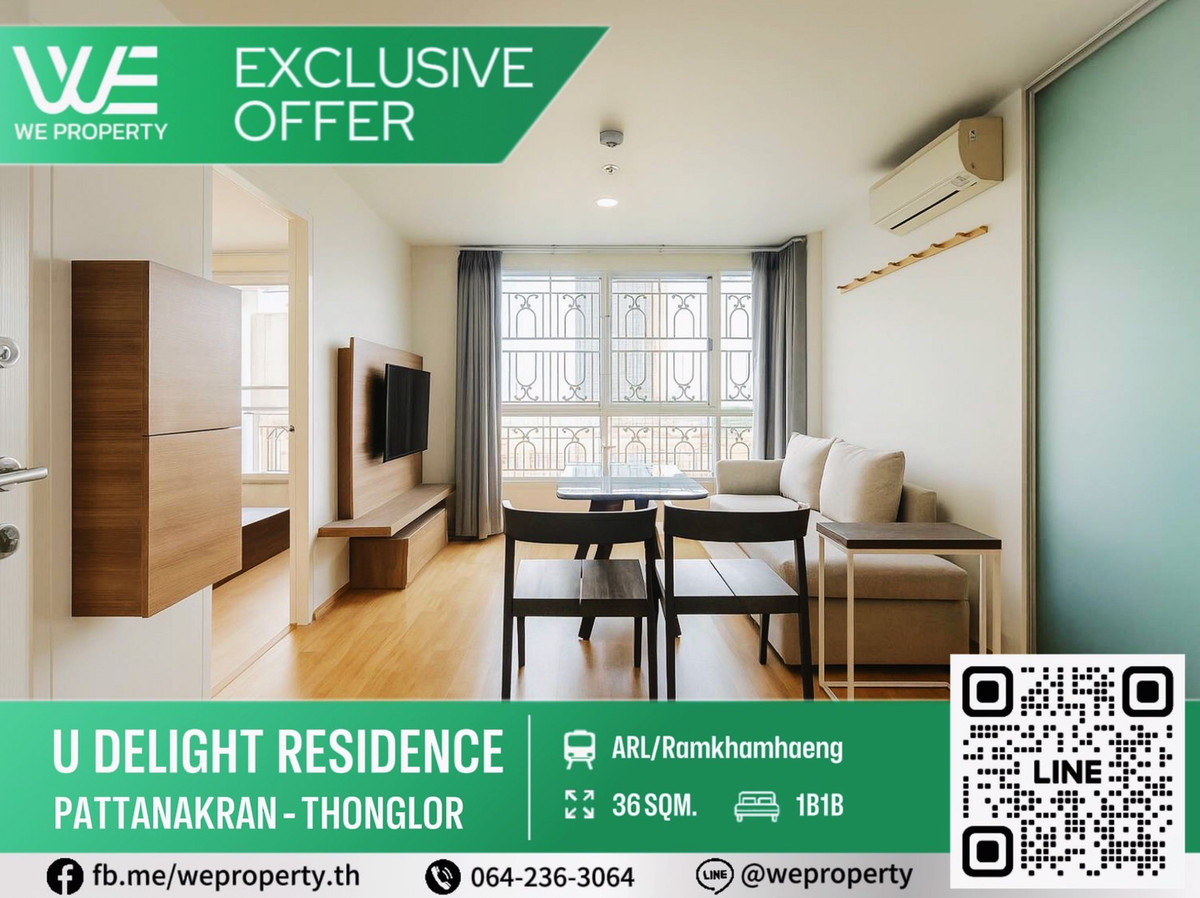 รหัสทรัพย์ (C15-Y41) U Delight Residence พัฒนาการ - ทองหล่อ 1 ห้องนอน 1 ห้องน้ำ ขนาด 36 ตร.ม. ชั้น 6 ห้องสวย เฟอร์นิเจอร์ครบ+เครื่องใช้ไฟฟ้า ขนาดห้องราคาดีที่สุดในโครงการ!!✨✨ ขายเพียง 2,200,000 บ. เท่านั้น!! ✅มีห้องให้เลือกหลากหลาย ✅รักษาผลประโยชน์ให้ลูกค้า ✅ดูแลยื่นสินเชื่อ กู้ผ่าน 100% ✅ดูแลจบครบทุกขั้นตอน ✅รีโนเวทตกแต่ง สนใจติดต่อ Mobile : คลิกเพื่อดูเบอร์โทรติดต่อ Link Line : https://lin.ee/SivxKmF ID Line : @weproperty02 📍กลุ่มสำหรับนักลงทุนซื้อคอนโดปล่อยเช่า Yield สูง https://line.me/ti/g2/Z6wVg0AO6_ve6FGBdQ7nuf_QvyXJ-yUKVUciHQ?utm_source=invitation&utm_medium=link_copy&utm_campaign=default