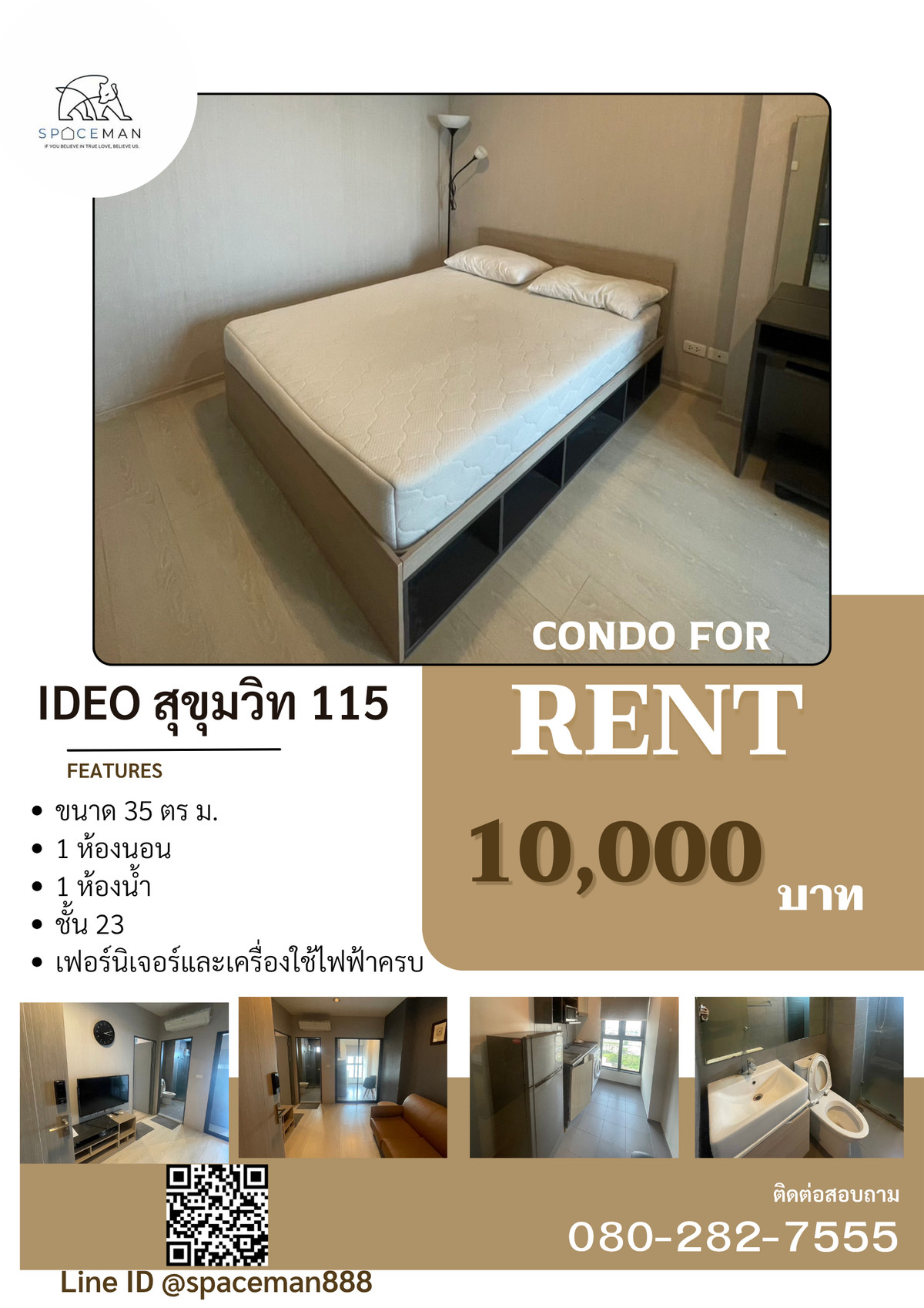 📣🎀 เช่าคอนโด Ideo สุขุมวิท 115 🚄 ติดBTS ปู่เจ้า ✅ ราคา 10,000 บาท / เดือน 👉 พื้นที่ 35 ตรม. 👉 ชั้น 23 👍 เฟอร์นิเจอร์และเครื่องใช้ไฟฟ้าครบ ⭐️ ระยะสัญญา 1 ปี. *** ดูแลตลอดอายุสัญญาเช่าค่ะ *** ⭐️ แรกเข้าชำระ ล่วงหน้า 1 เดือน + ประกัน 2 เดือน 😊 ยินดีรับ co-agent ♥️ สนใจติดต่อ คุณมีน (Agent) ☎️ Tel. คลิกเพื่อดูเบอร์โทรติดต่อ Line Official : @spaceman888 WeChat ID : spaceman8889 #คอนโดไอดีโอ115 #ideo115 #คอนโดติดbtsปู่เจ้า